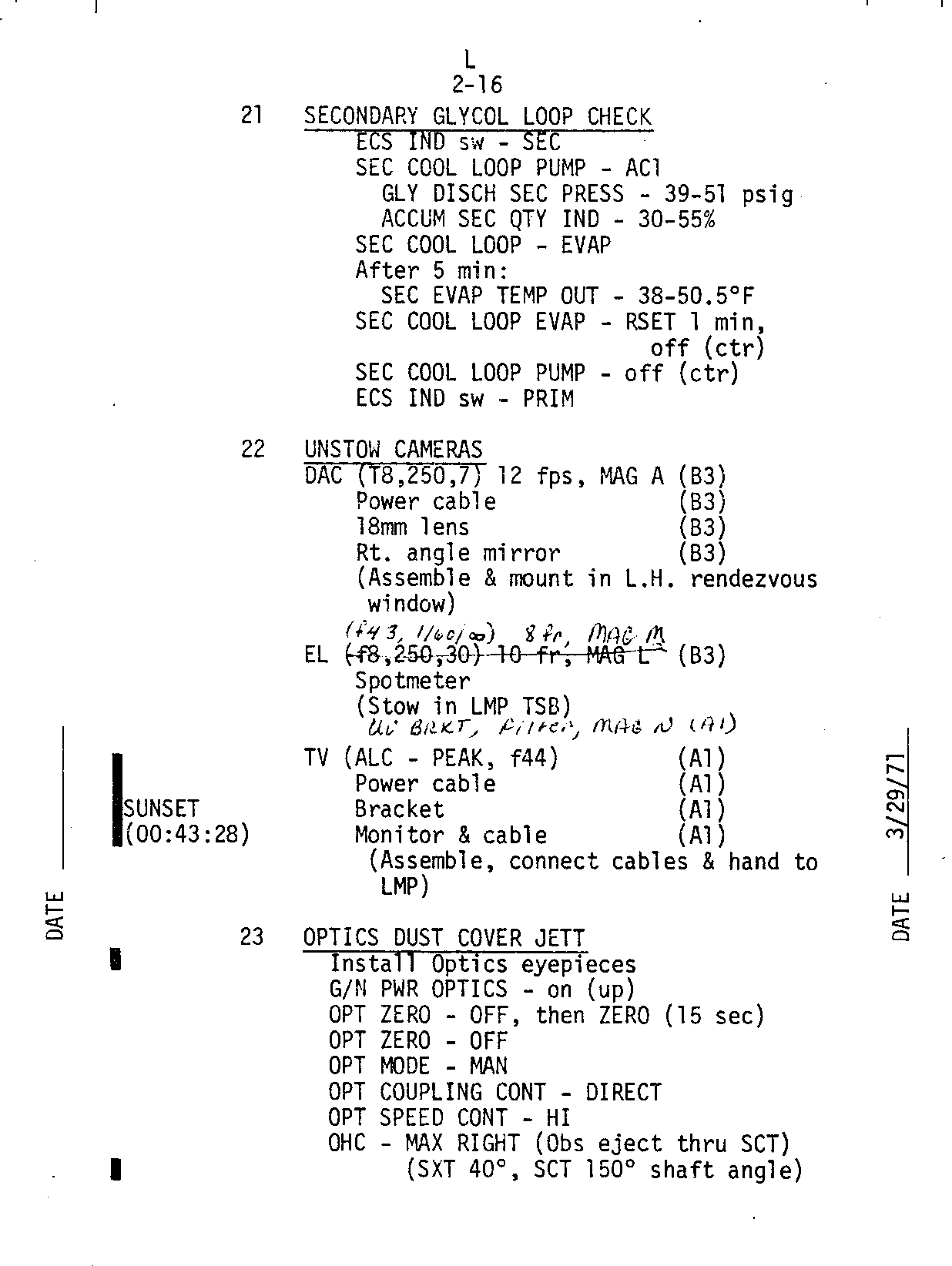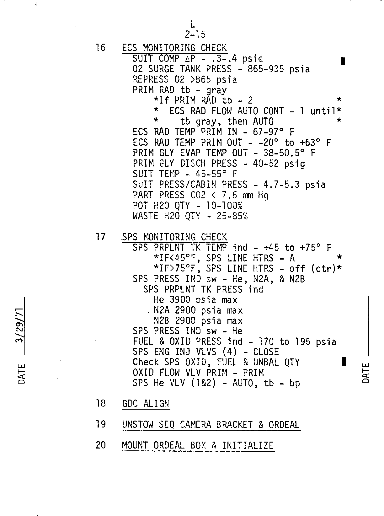 - 2-15 ECS, SPS, GDC align, ORDEAL