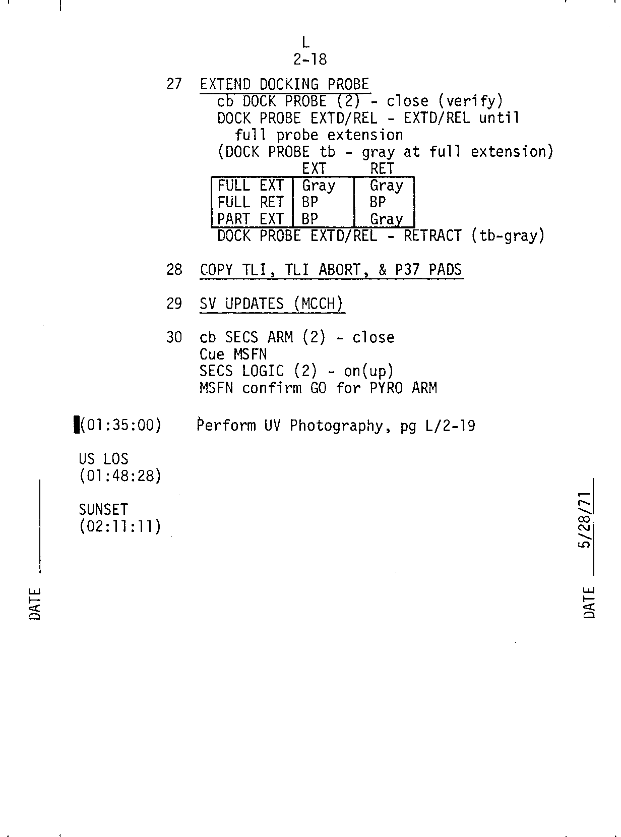- 2-18 Extend docking probe