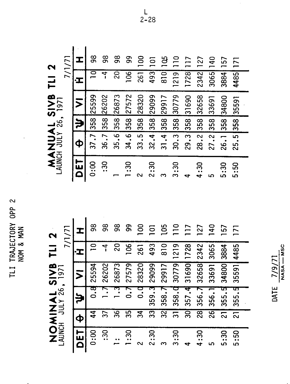 - 2-28 TLI trajectory, 2nd opportunity, nominal & manual