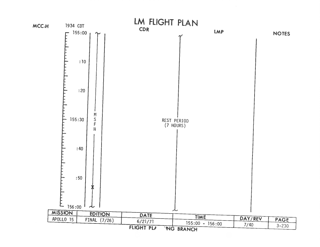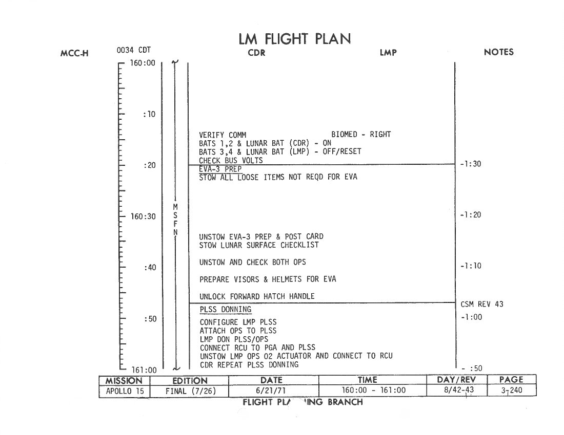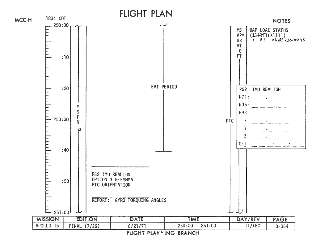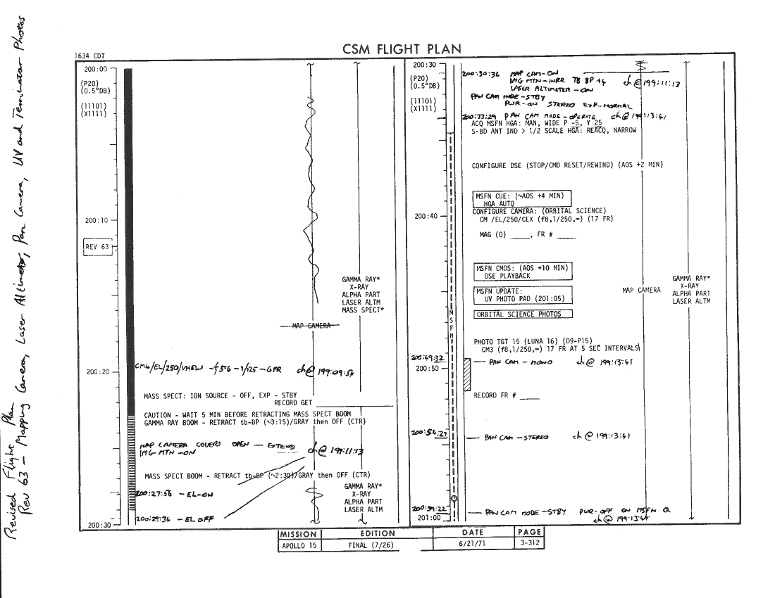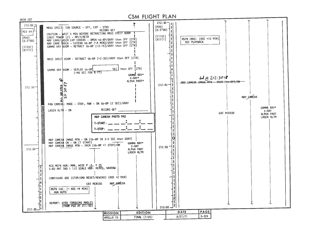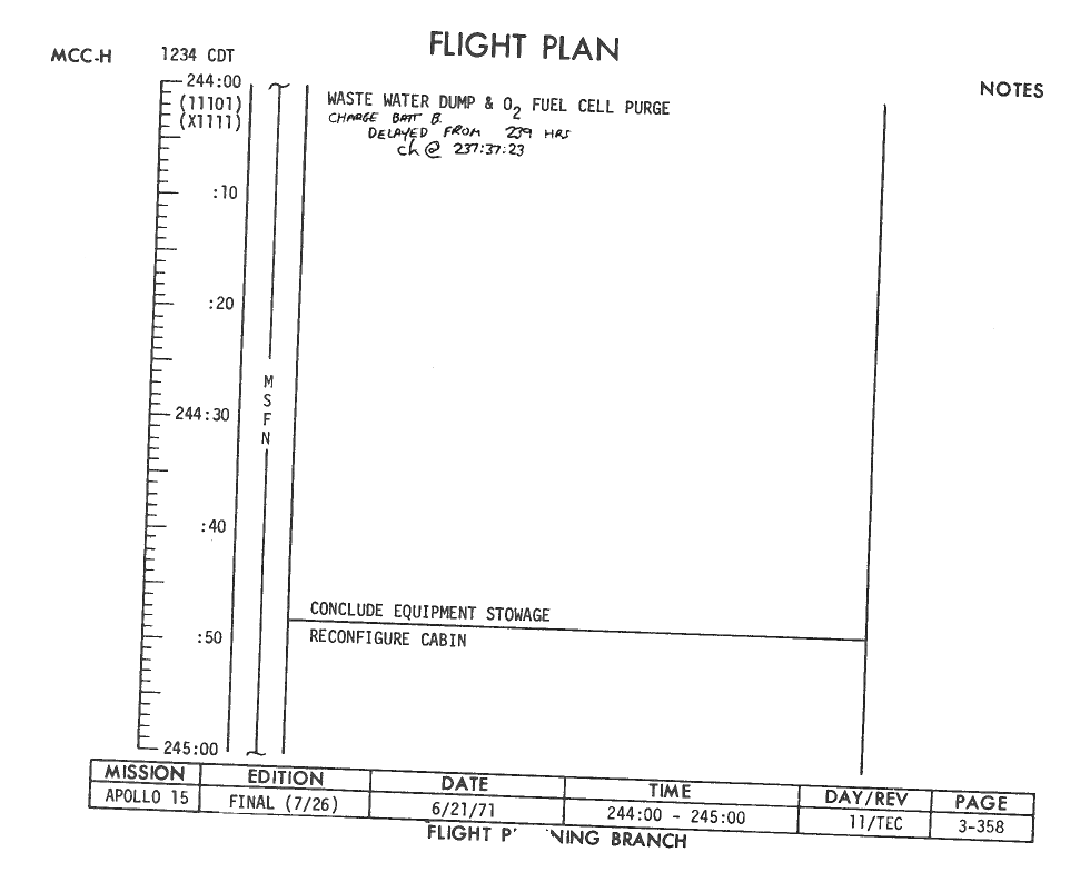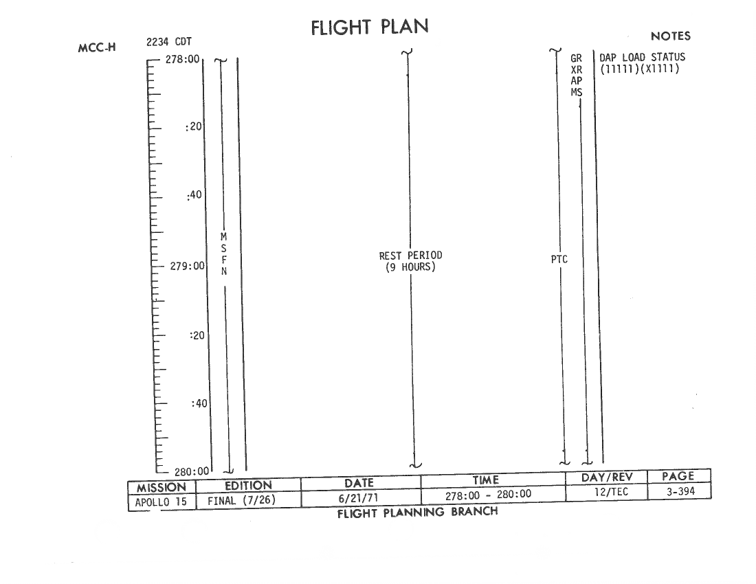 All hand-written additions in this copy of the Flight Plan were made by David Woods during the compilation of this Journal and largely represent the updates read to the crew during the flight.