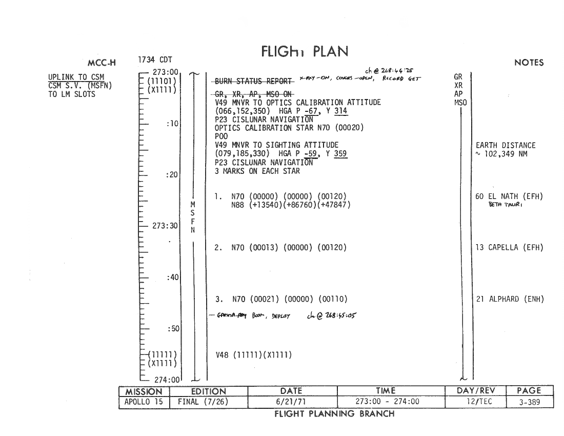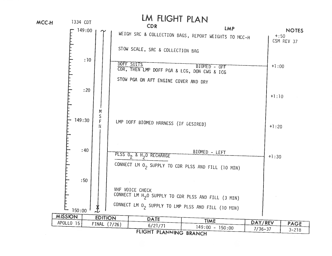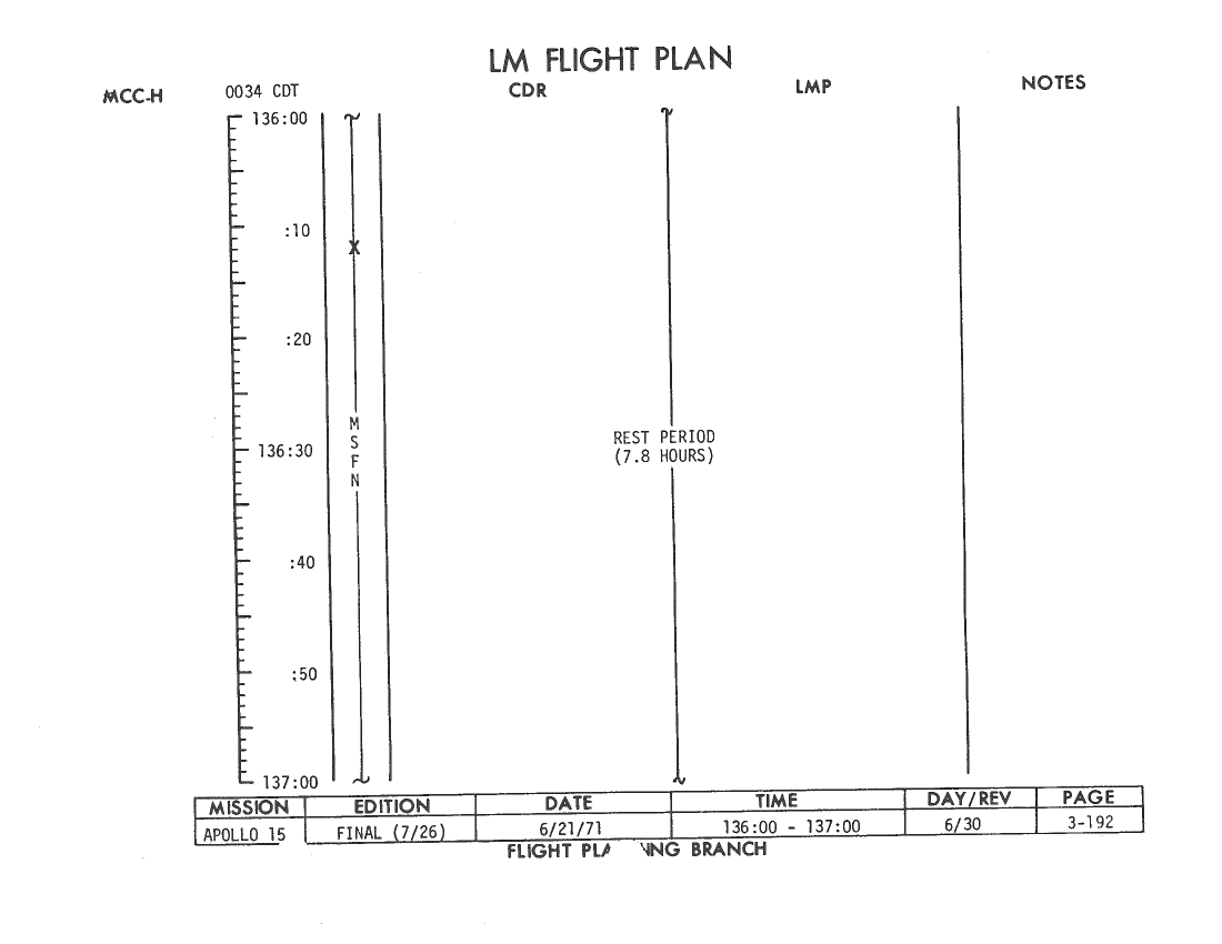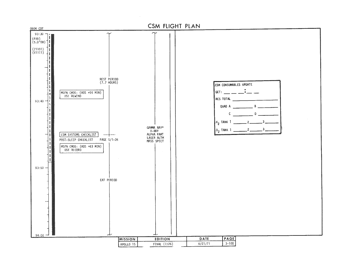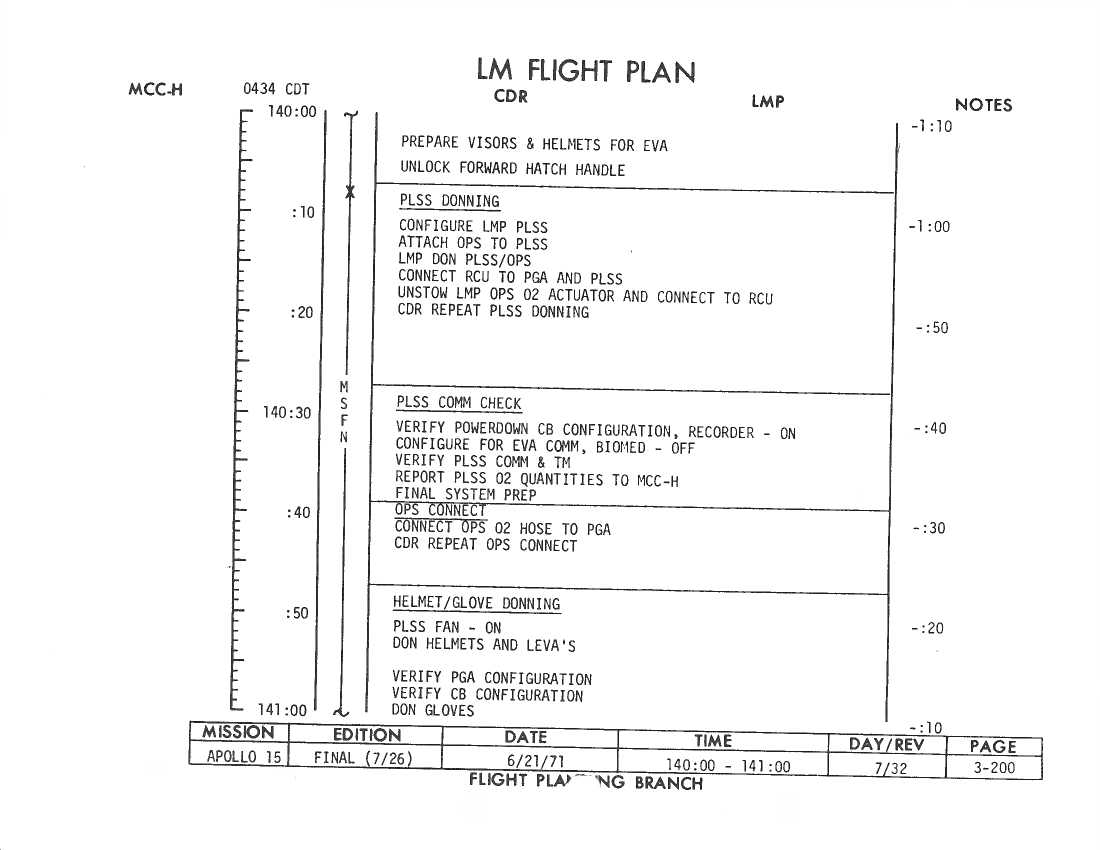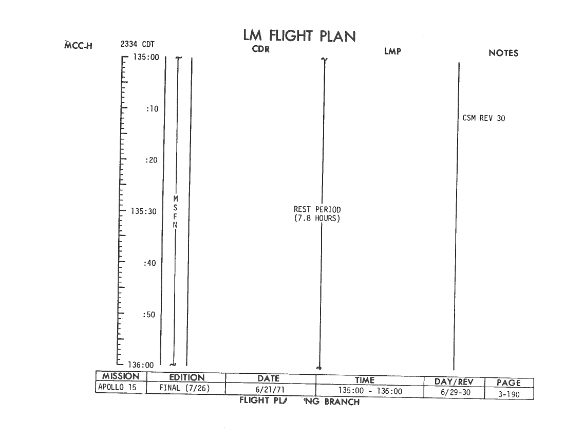 All hand-written additions in this copy of the Flight Plan were made by David Woods during the compilation of this Journal and largely represent the updates read to the crew during the flight.