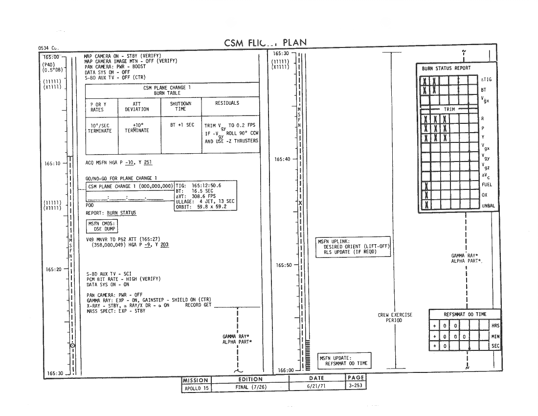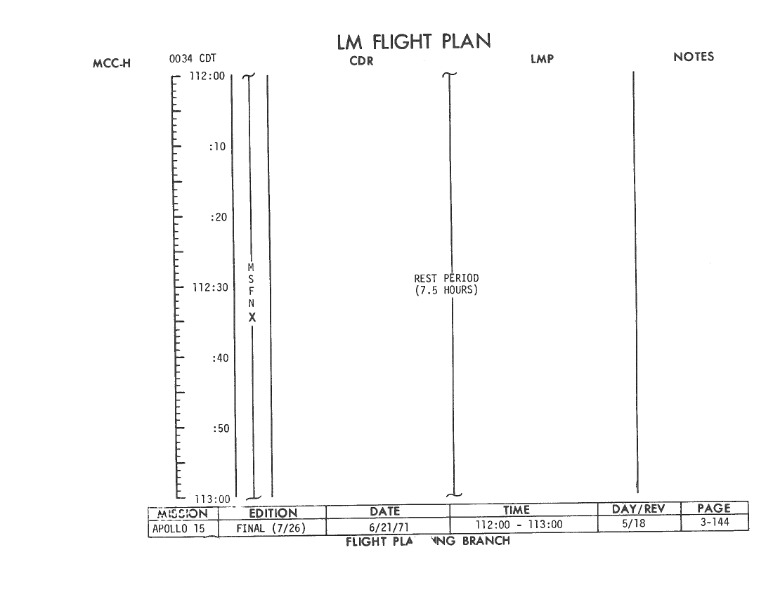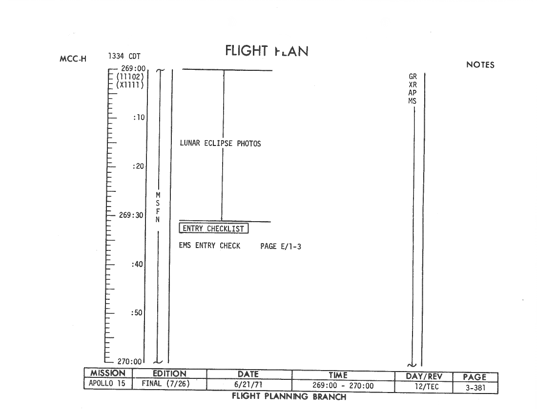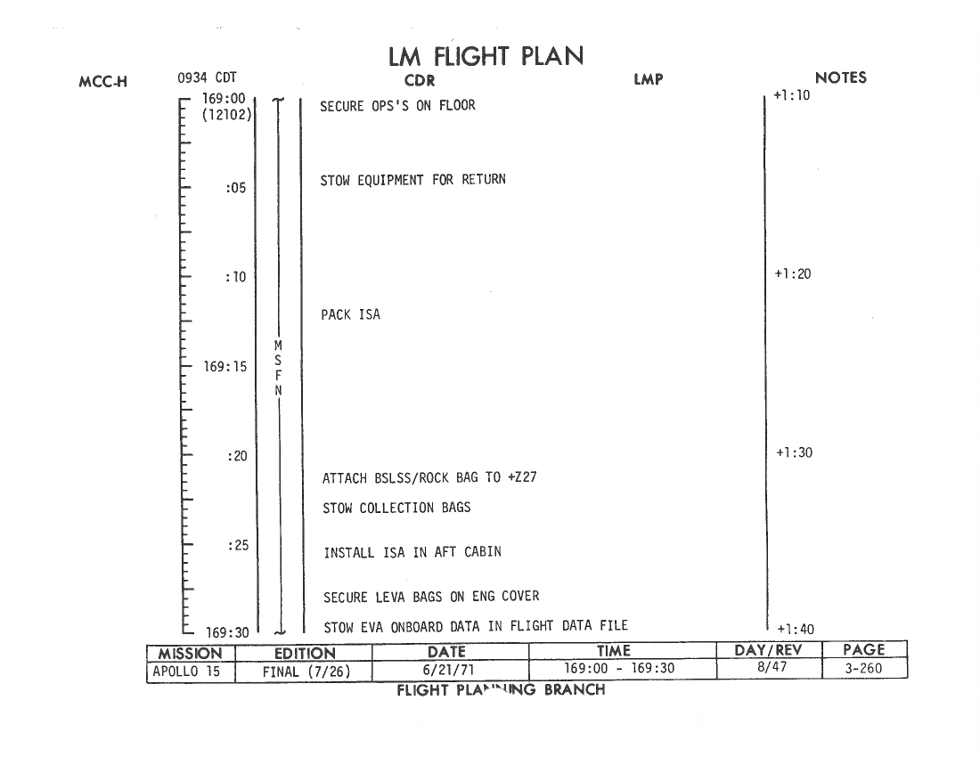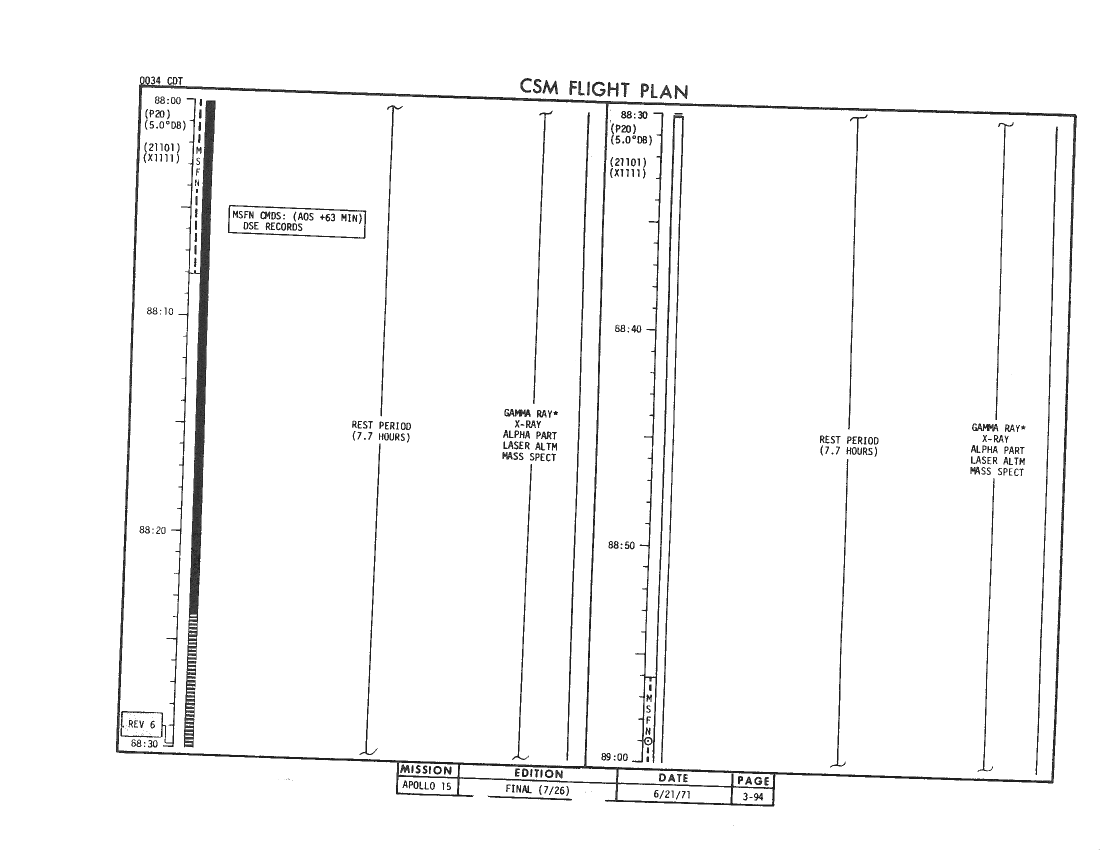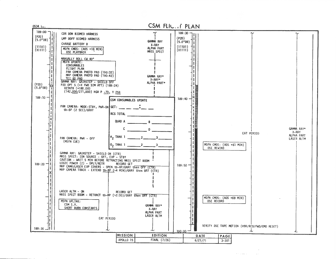 All hand-written additions in this copy of the Flight Plan were made by David Woods during the compilation of this Journal and largely represent the updates read to the crew during the flight.