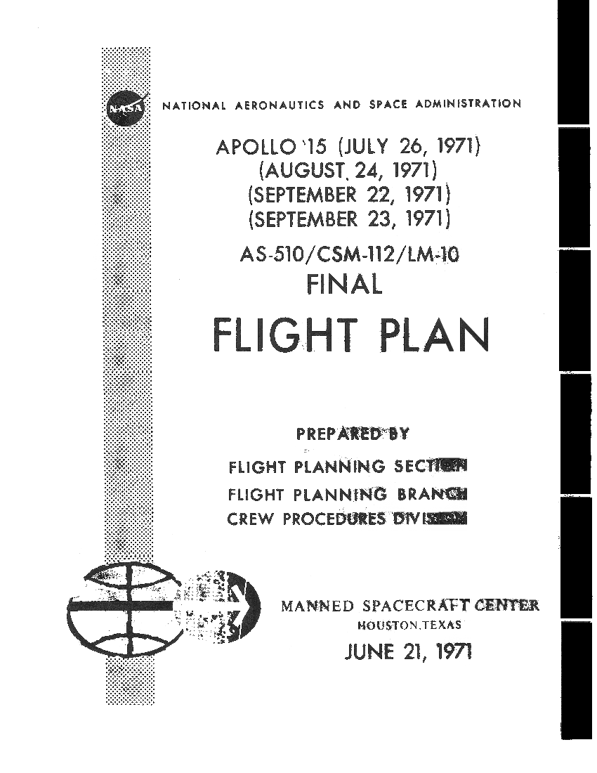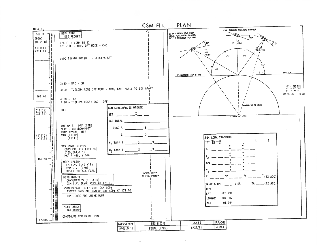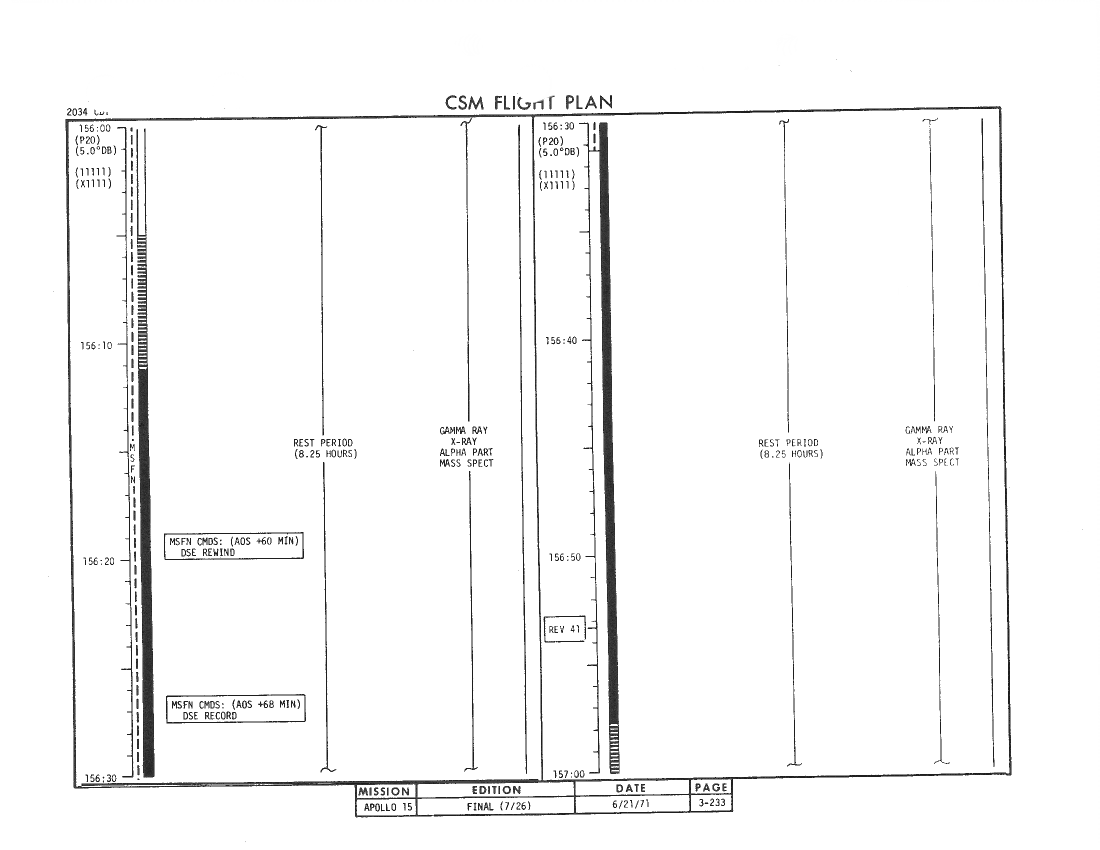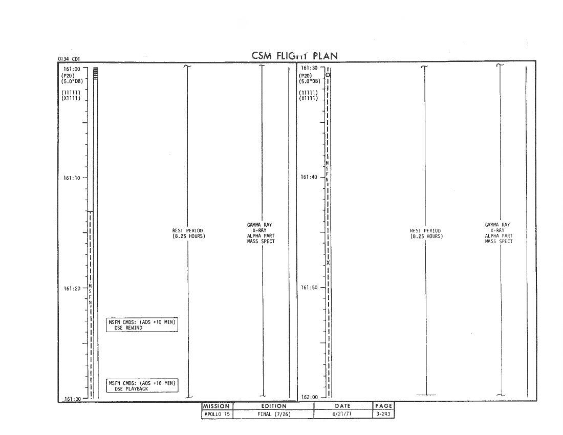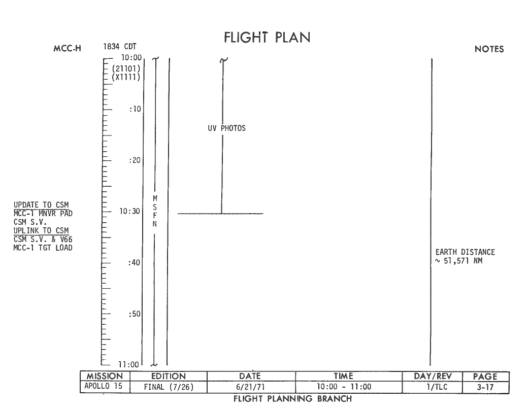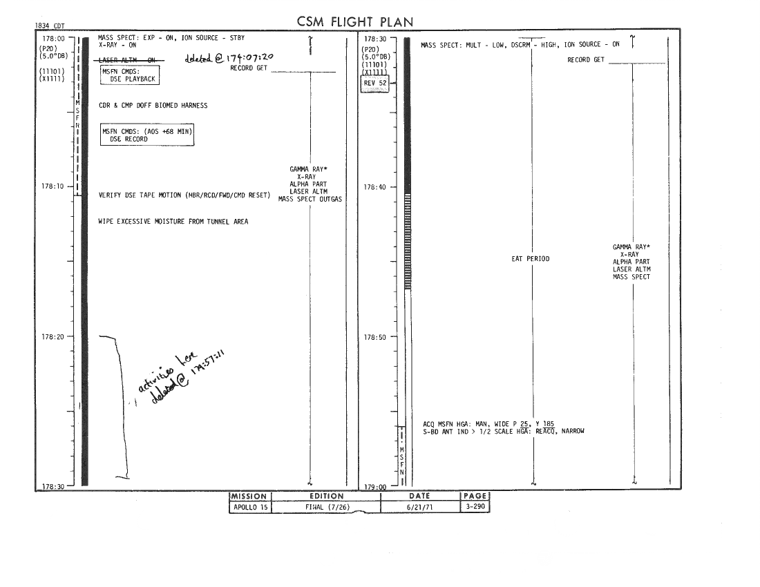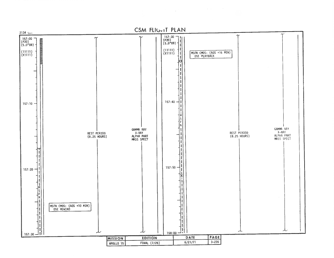 All hand-written additions in this copy of the Flight Plan were made by David Woods during the compilation of this Journal and largely represent the updates read to the crew during the flight.