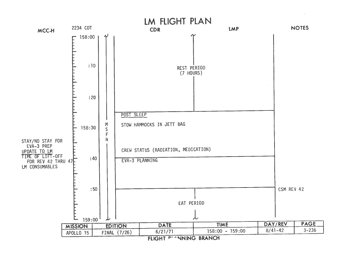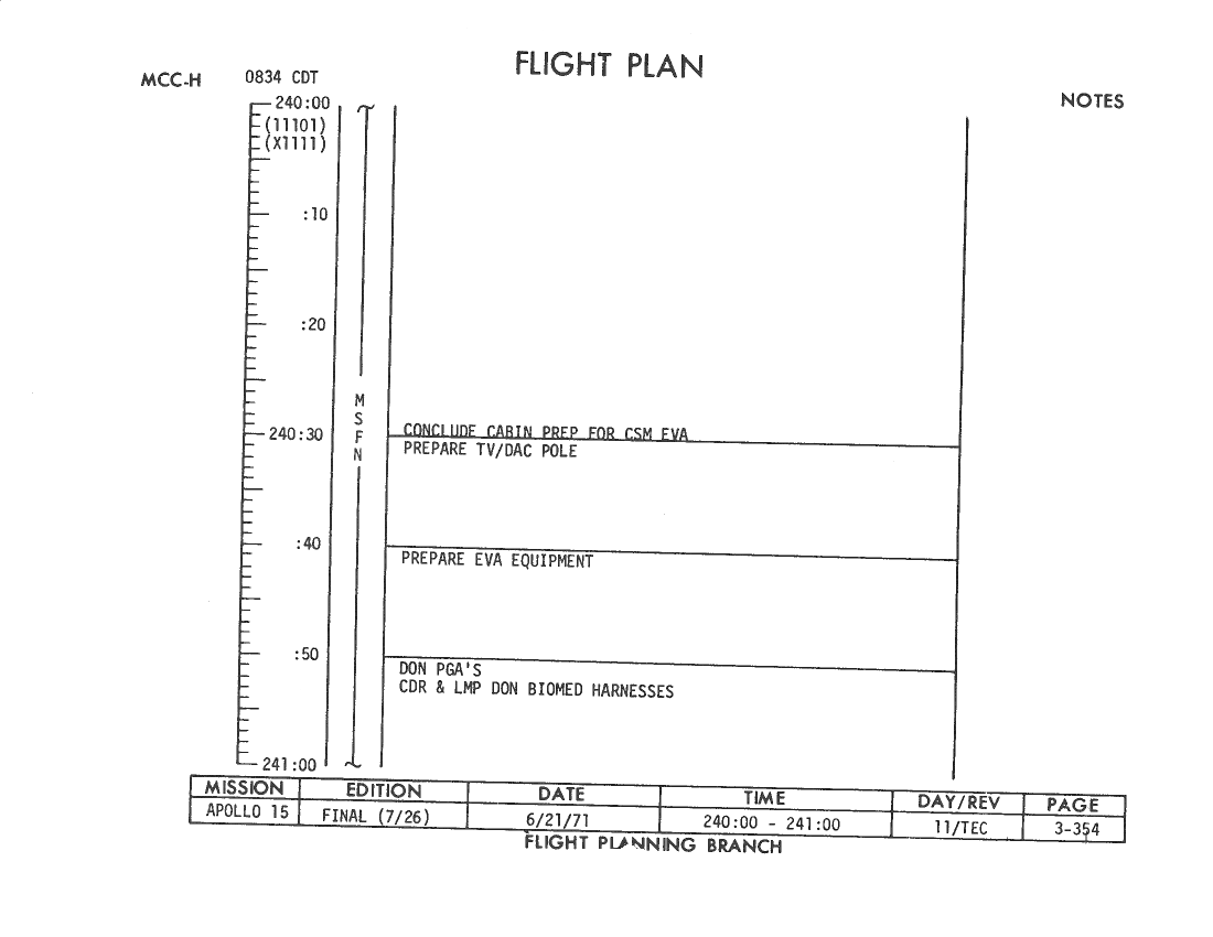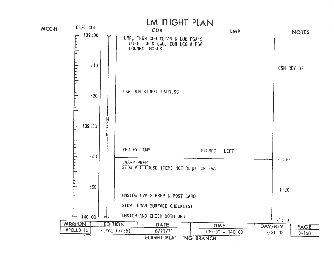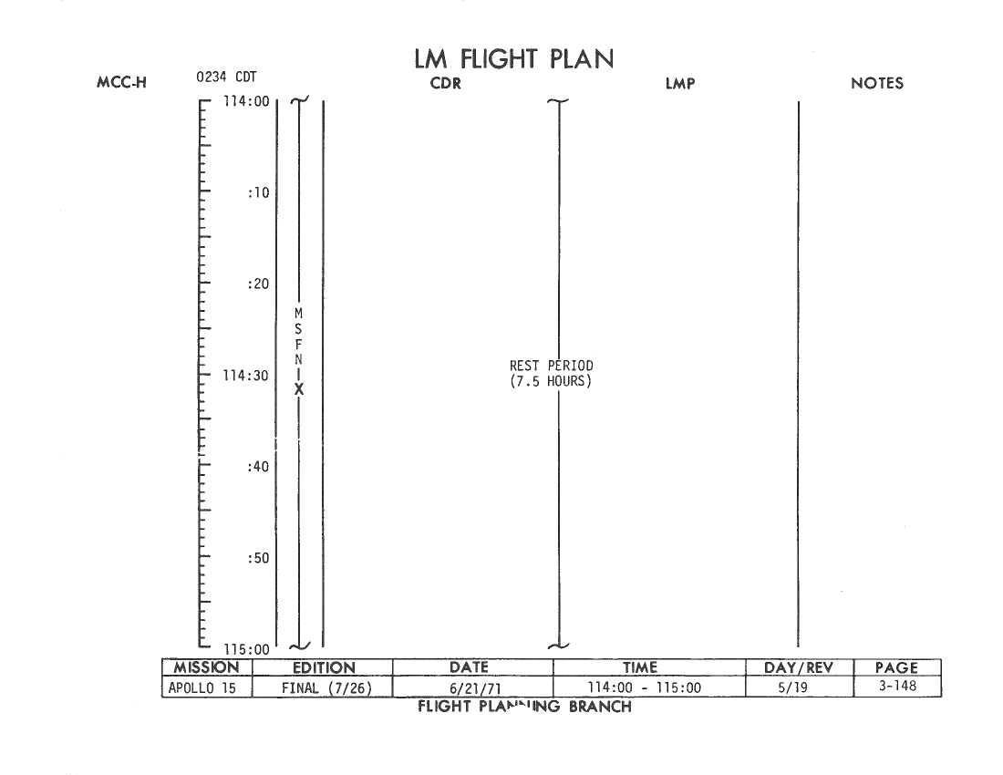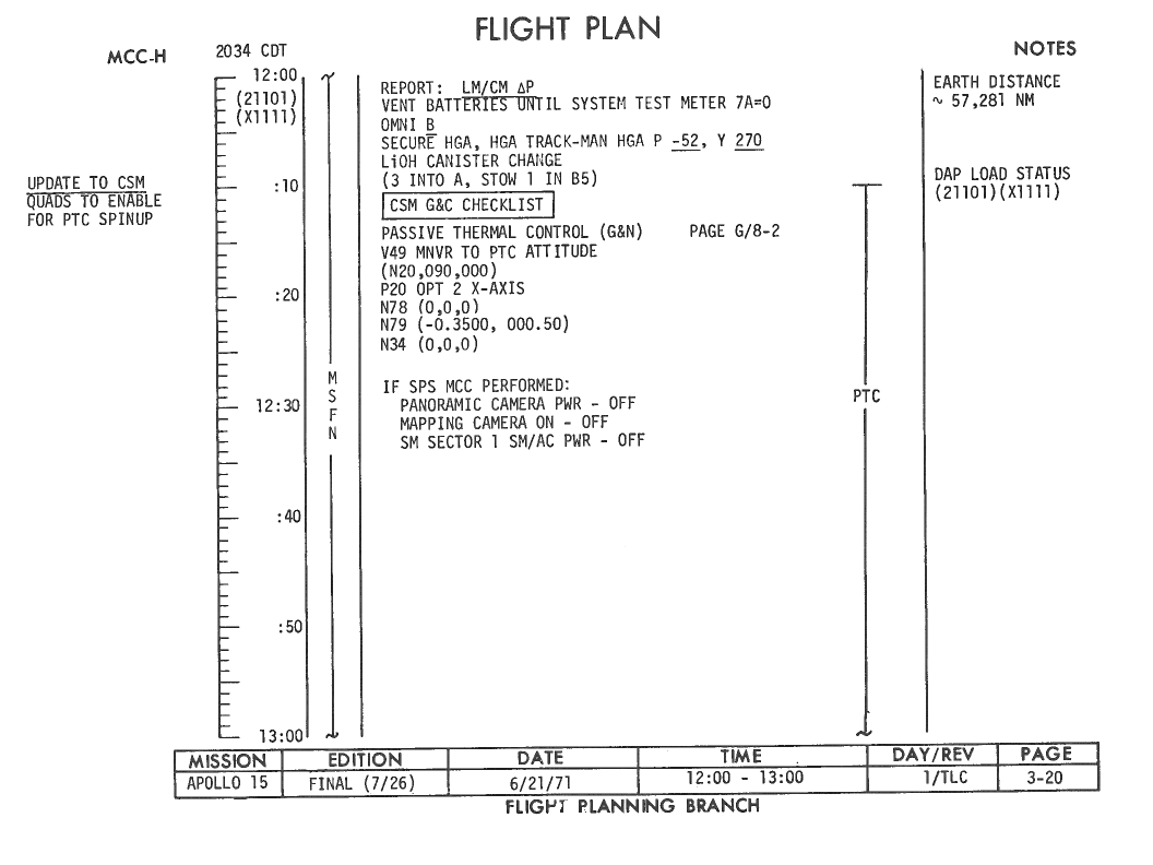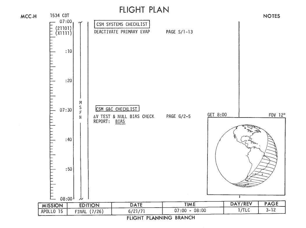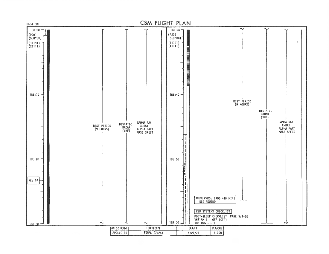 All hand-written additions in this copy of the Flight Plan were made by David Woods during the compilation of this Journal and largely represent the updates read to the crew during the flight.