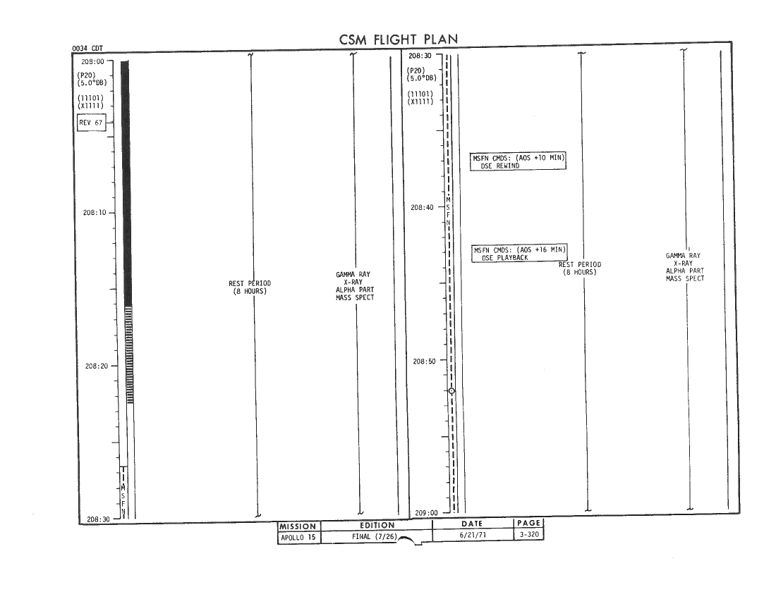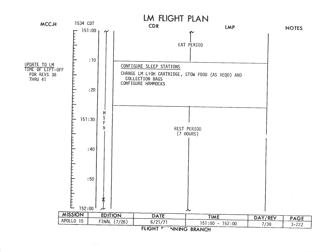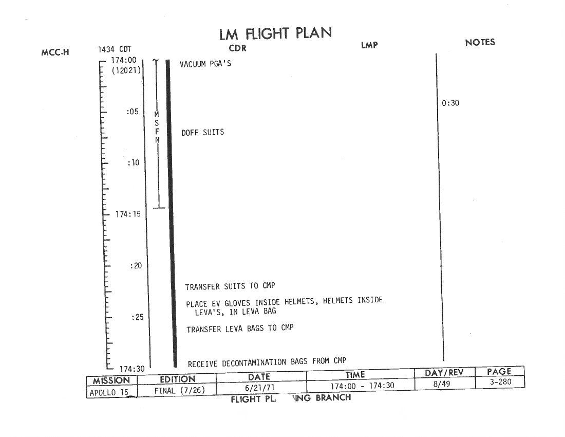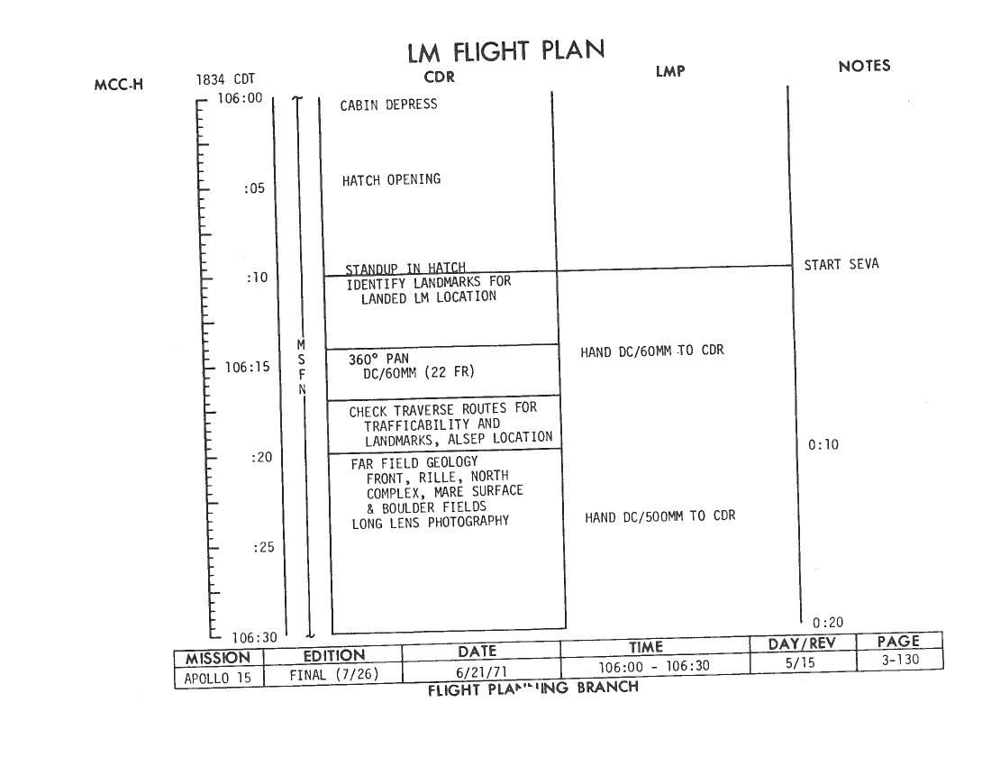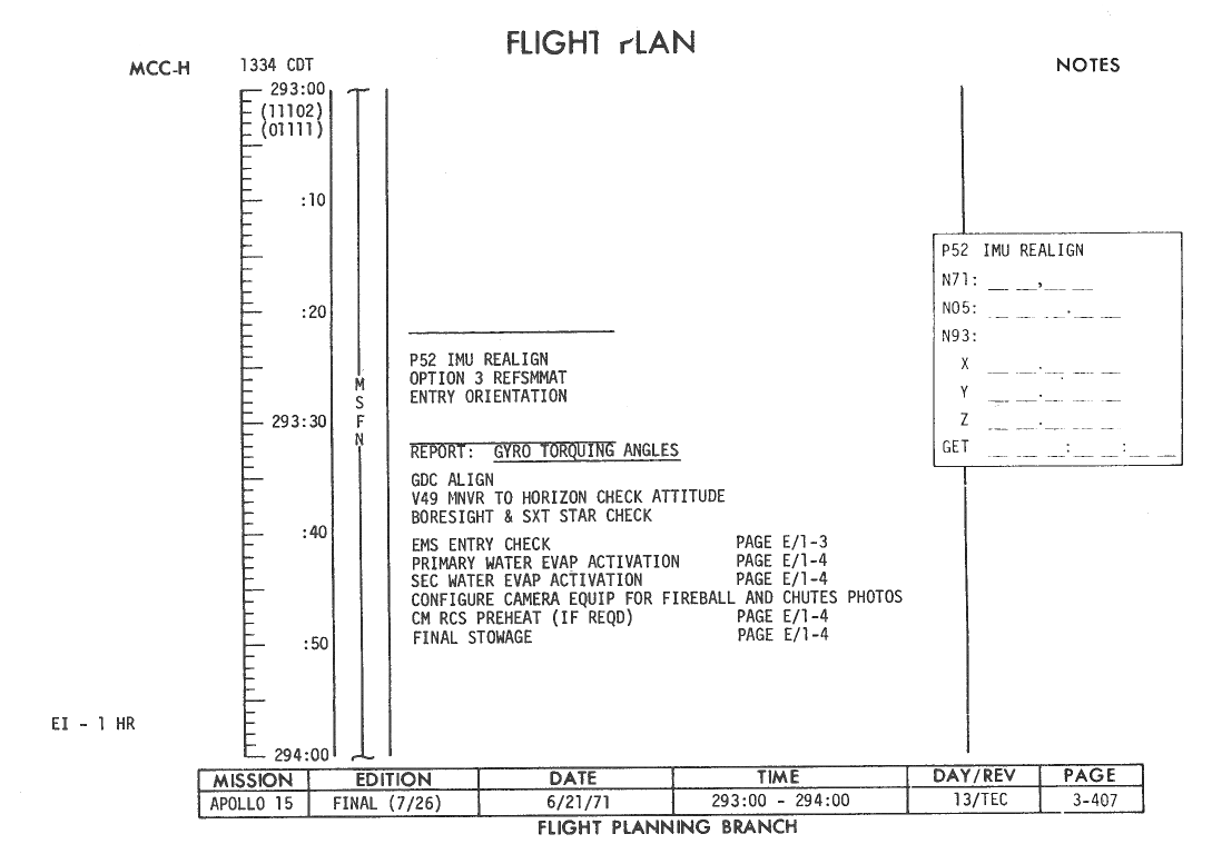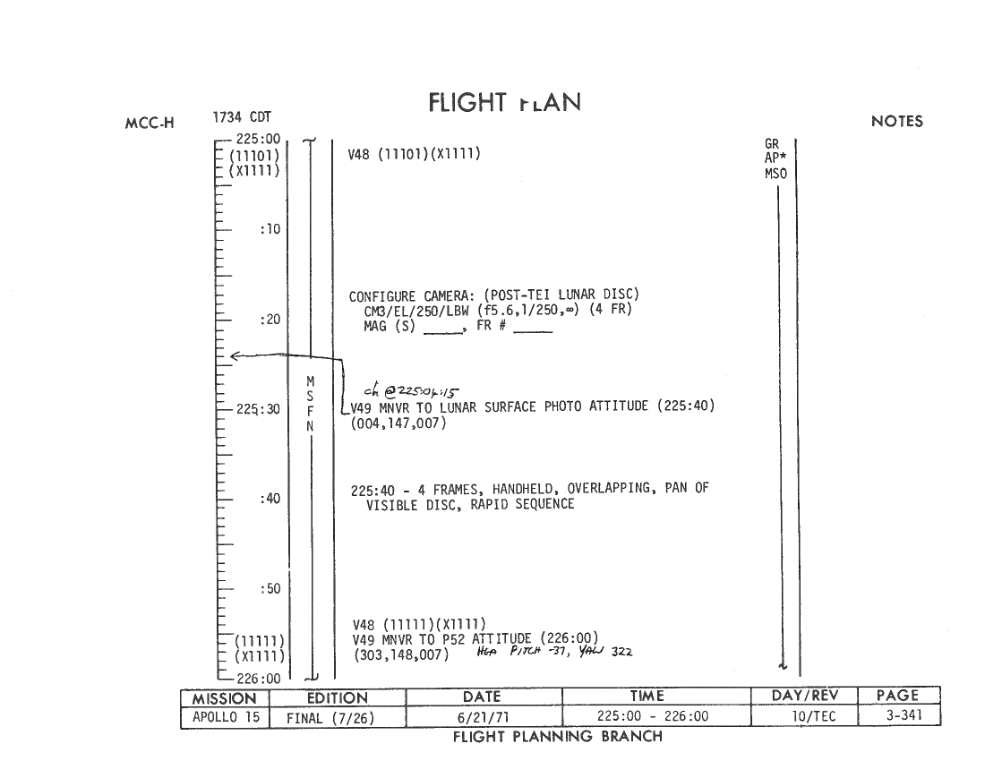 All hand-written additions in this copy of the Flight Plan were made by David Woods during the compilation of this Journal and largely represent the updates read to the crew during the flight.