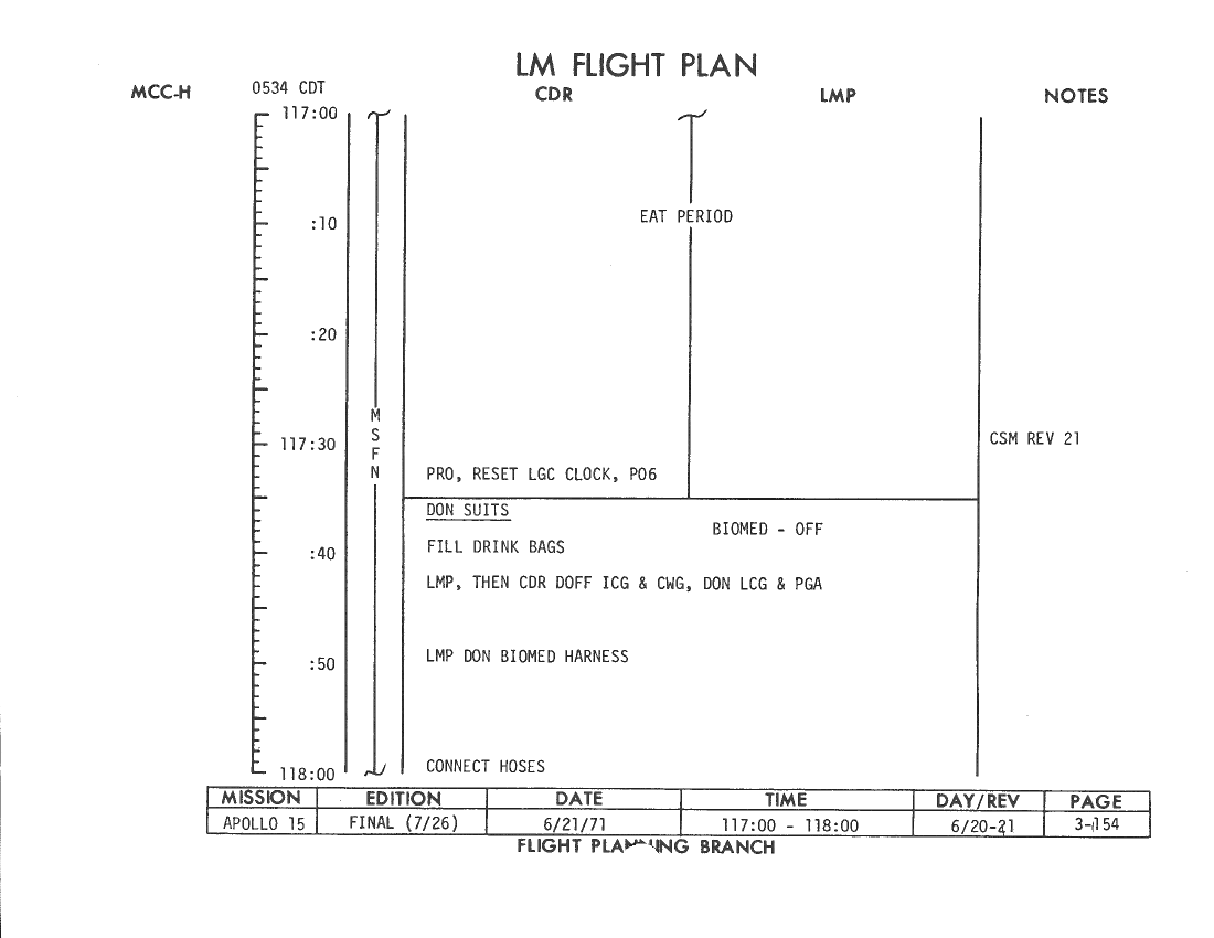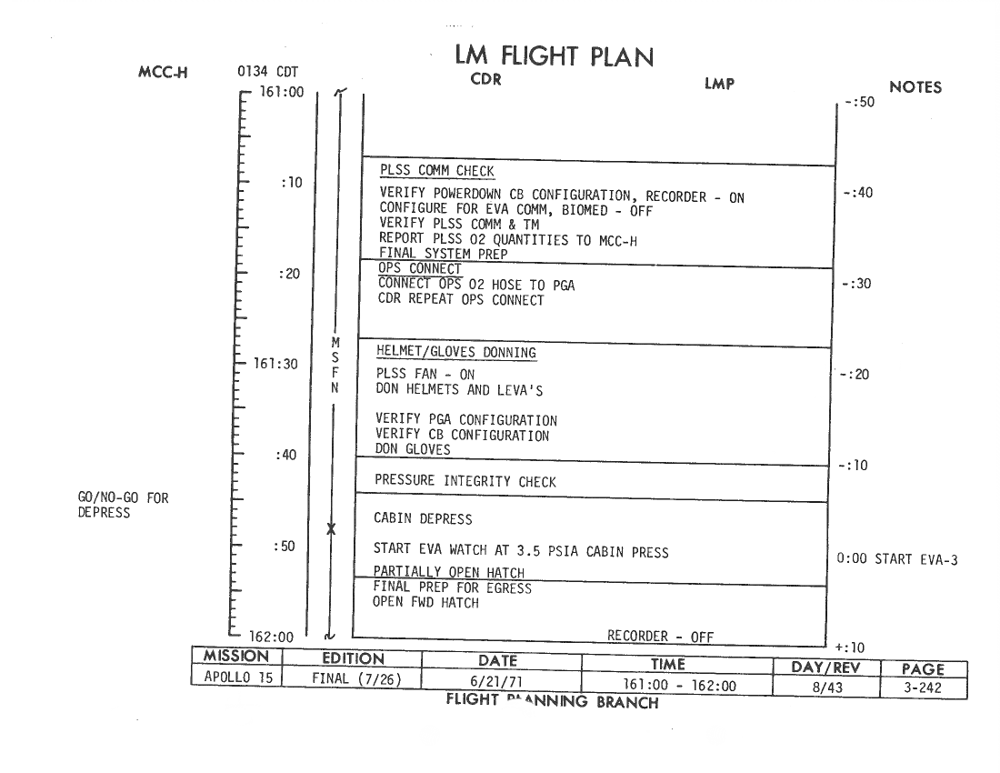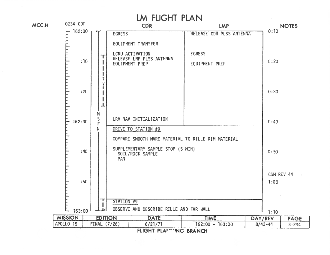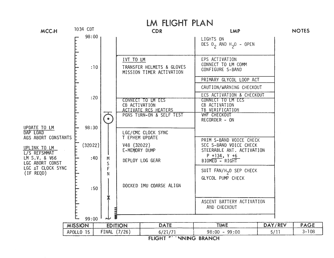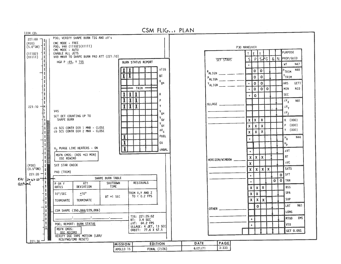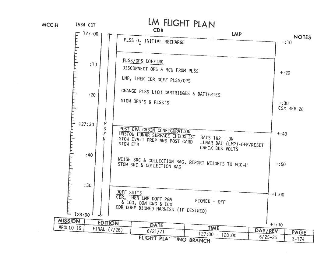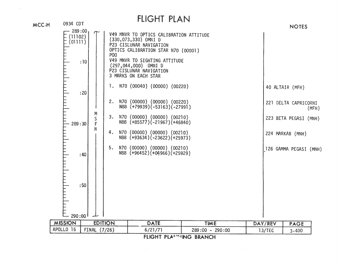 All hand-written additions in this copy of the Flight Plan were made by David Woods during the compilation of this Journal and largely represent the updates read to the crew during the flight.