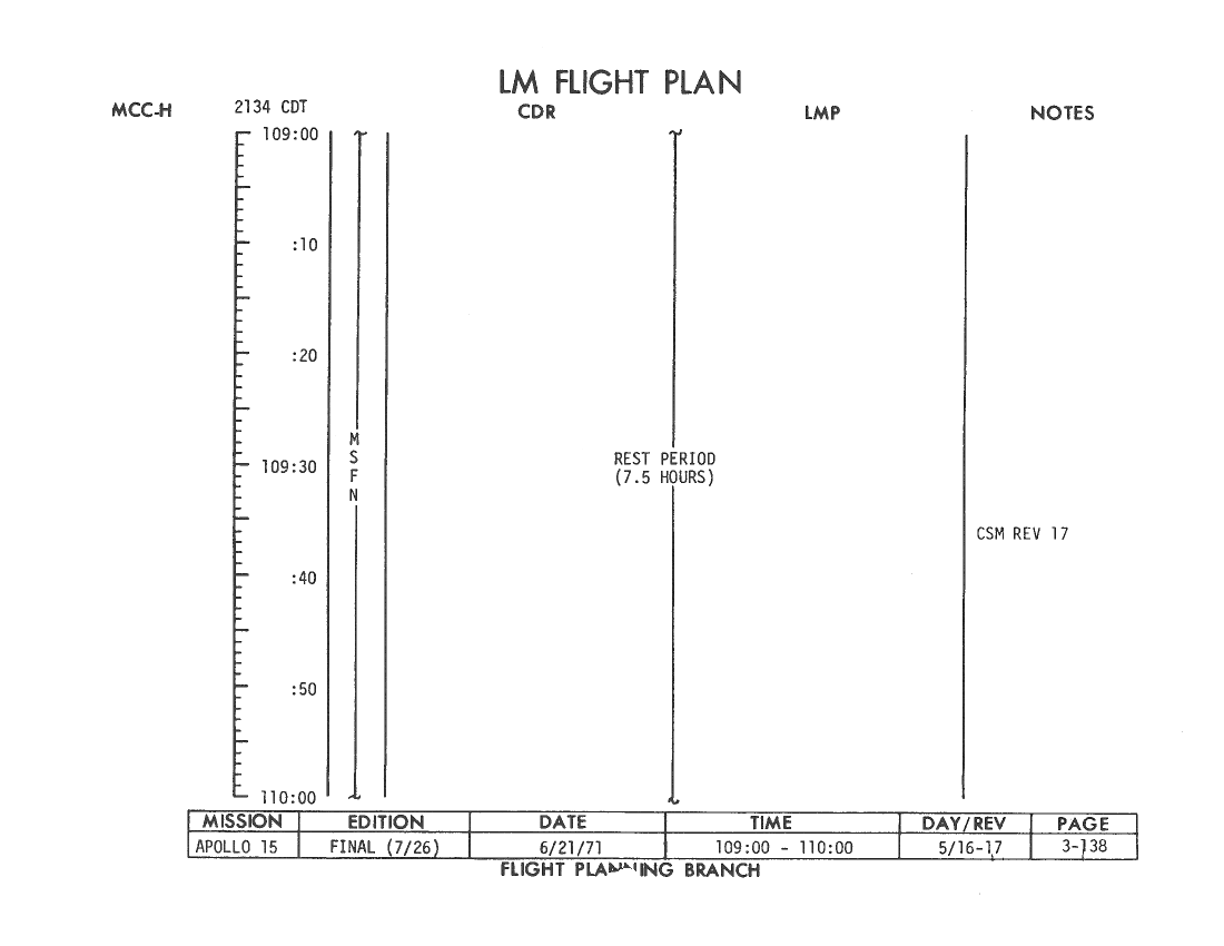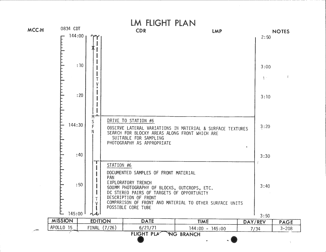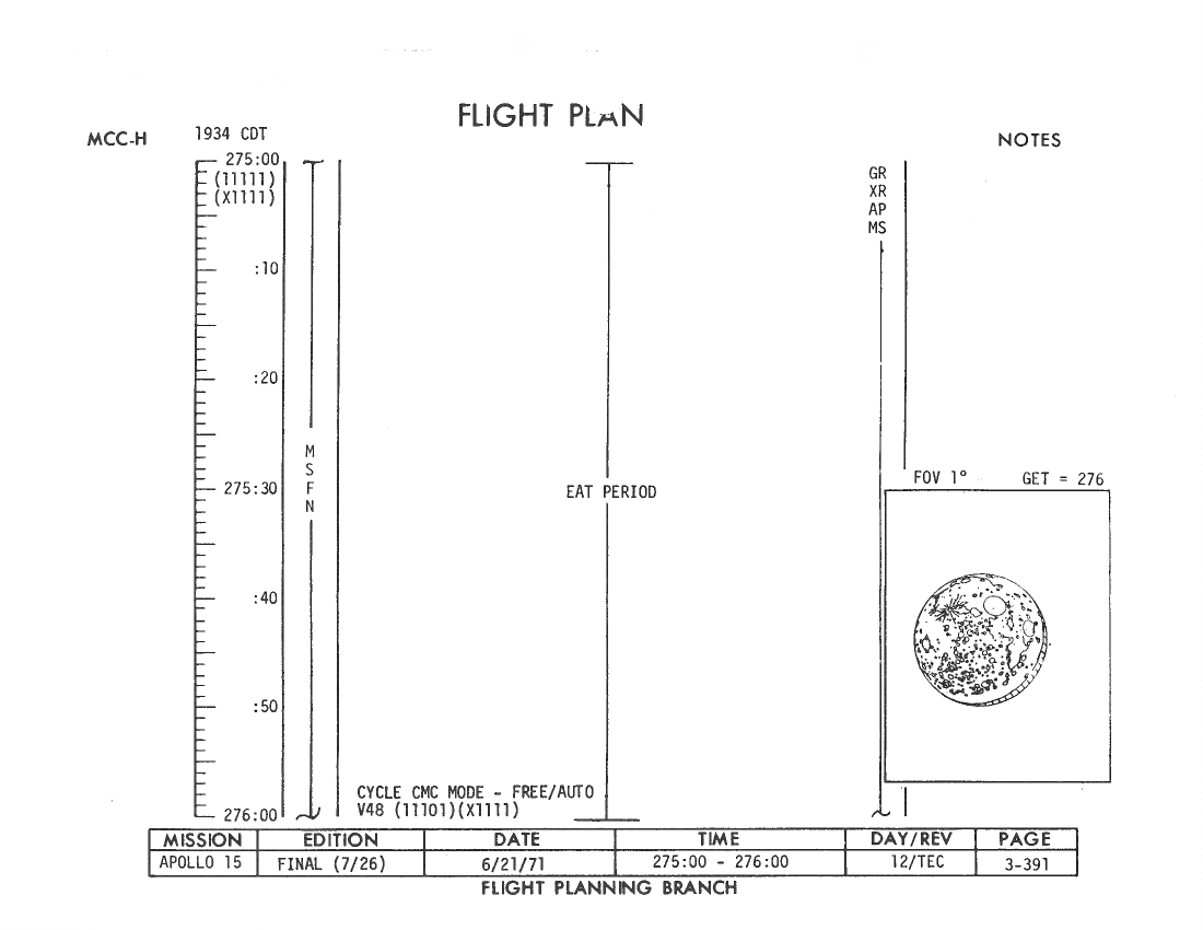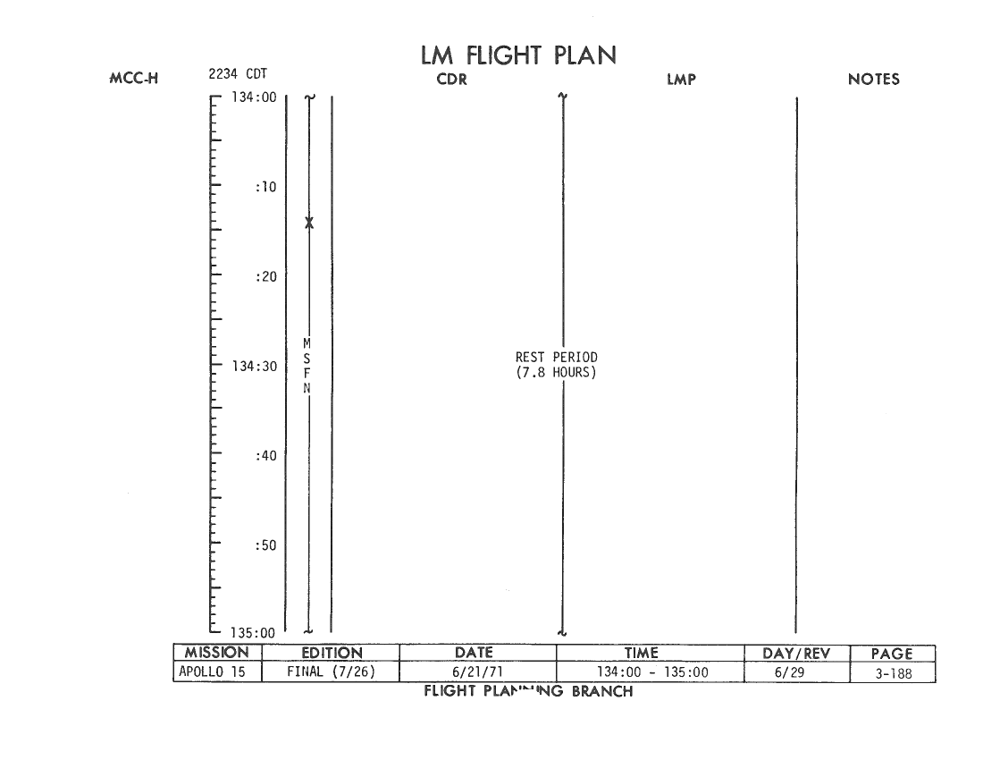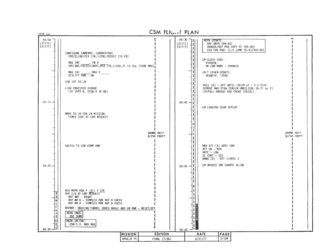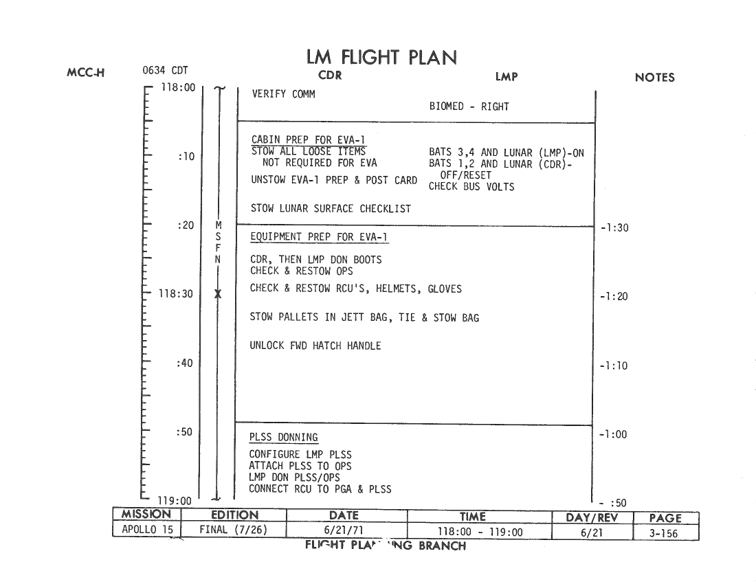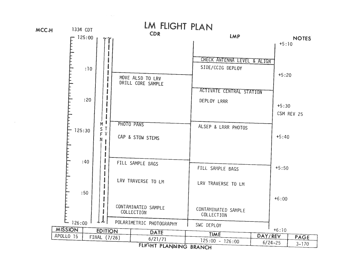 All hand-written additions in this copy of the Flight Plan were made by David Woods during the compilation of this Journal and largely represent the updates read to the crew during the flight.