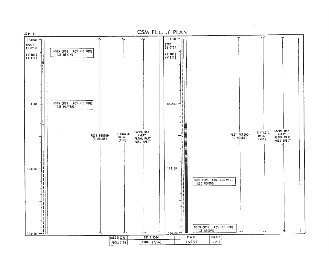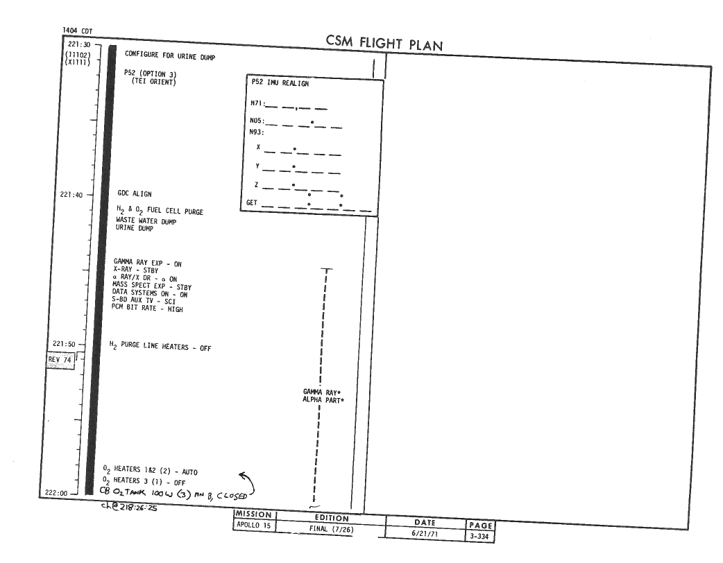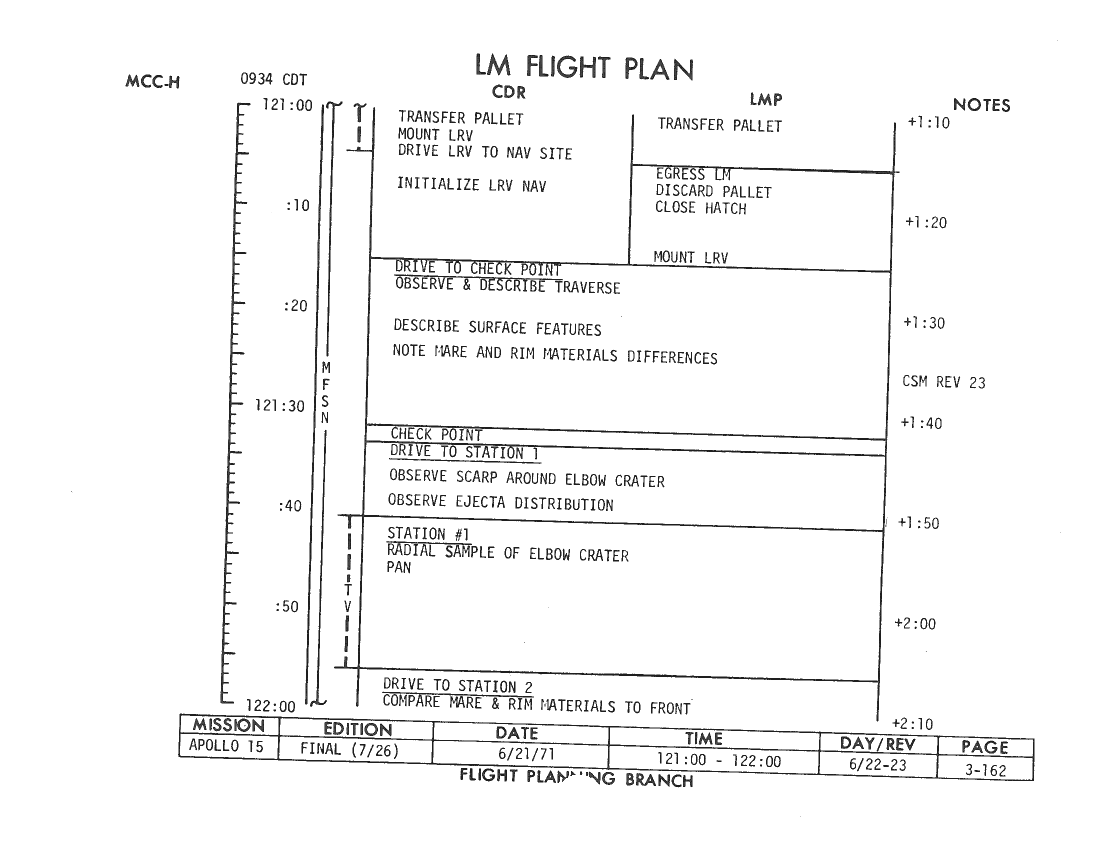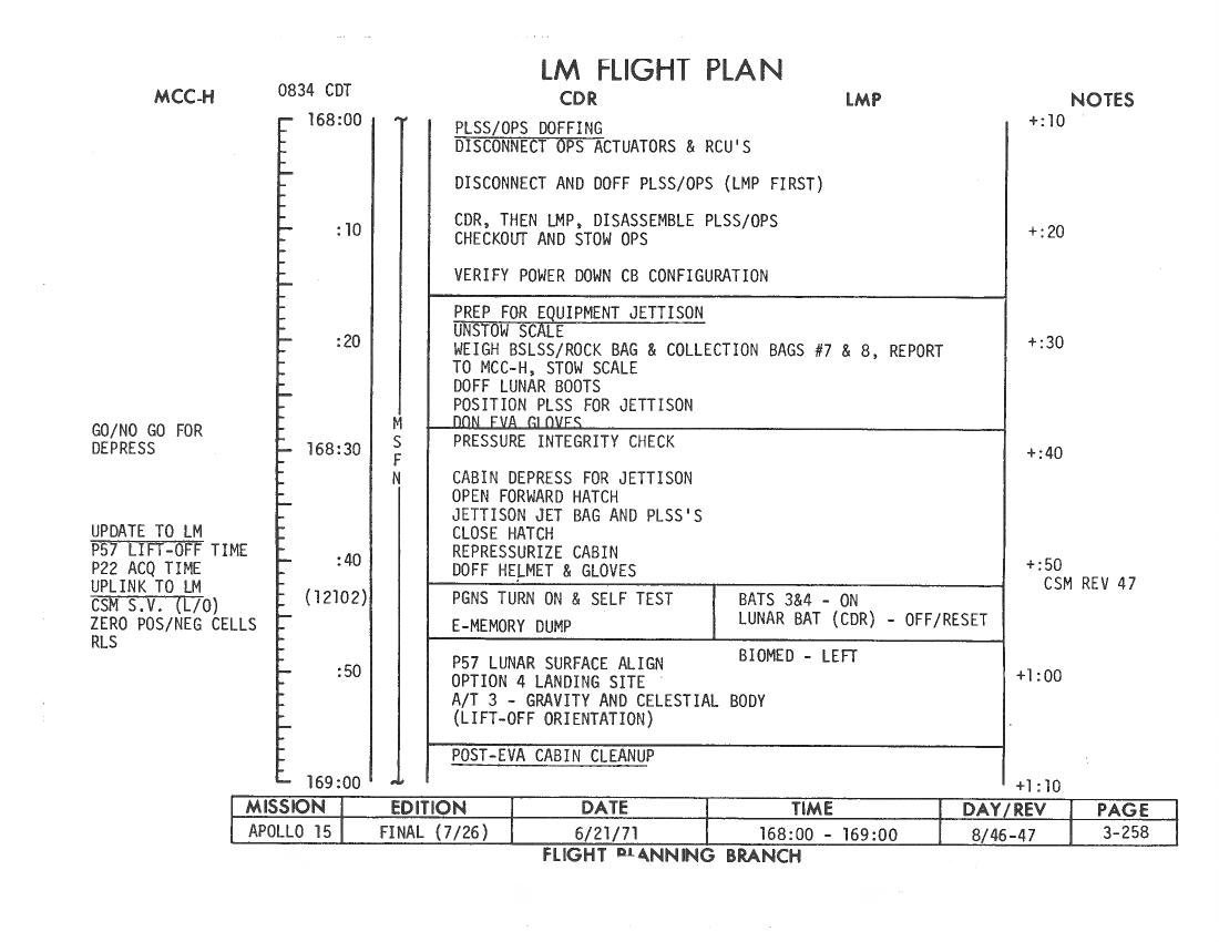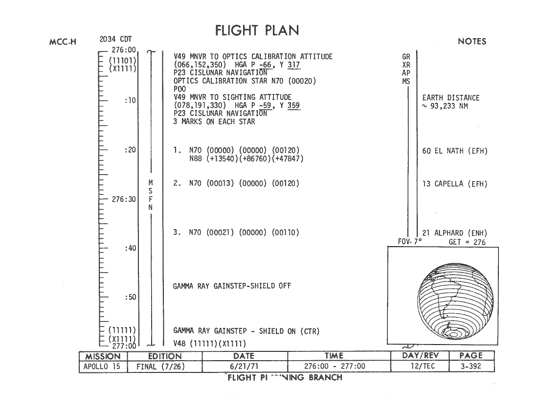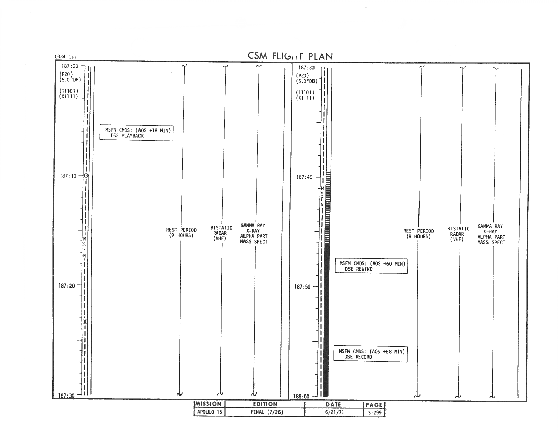 All hand-written additions in this copy of the Flight Plan were made by David Woods during the compilation of this Journal and largely represent the updates read to the crew during the flight.