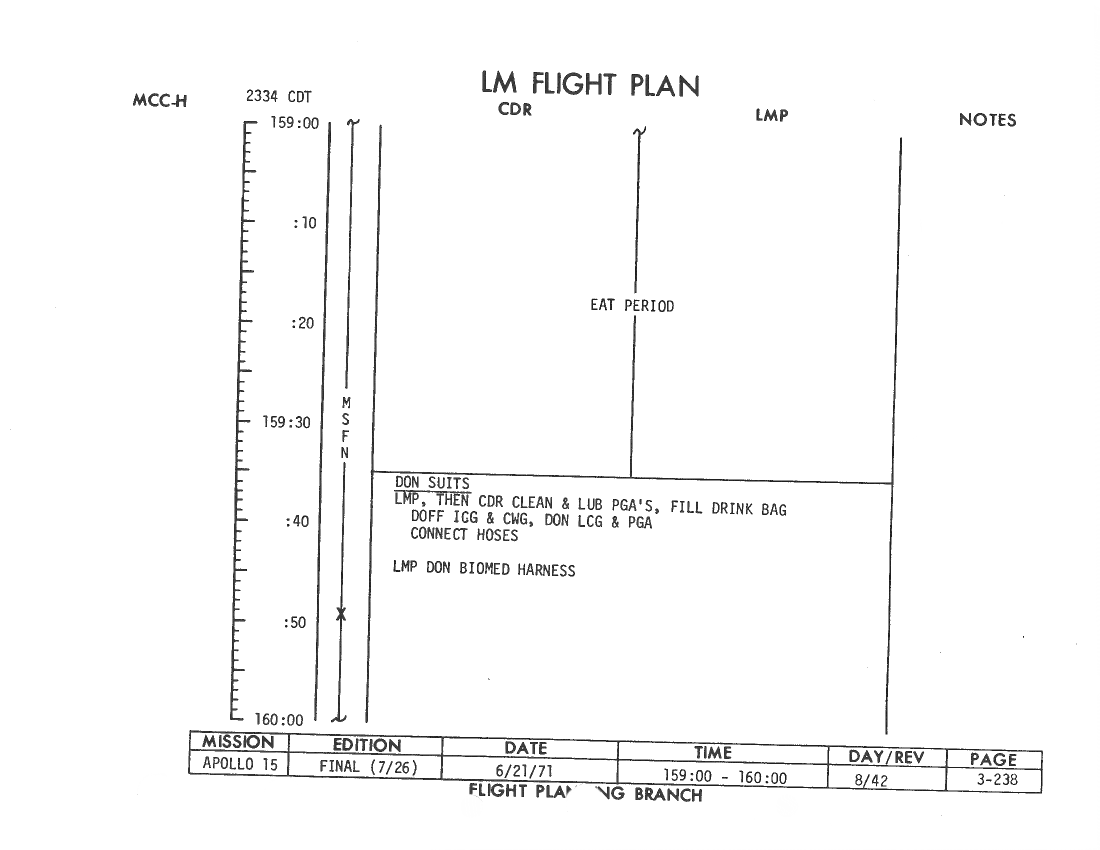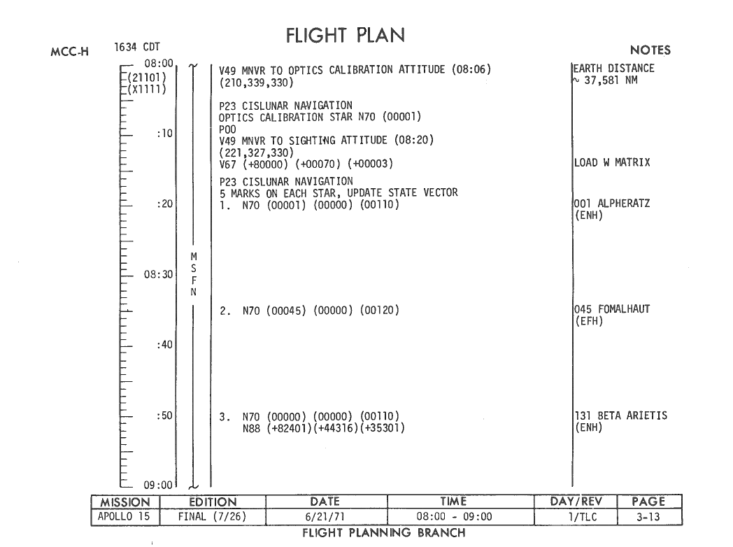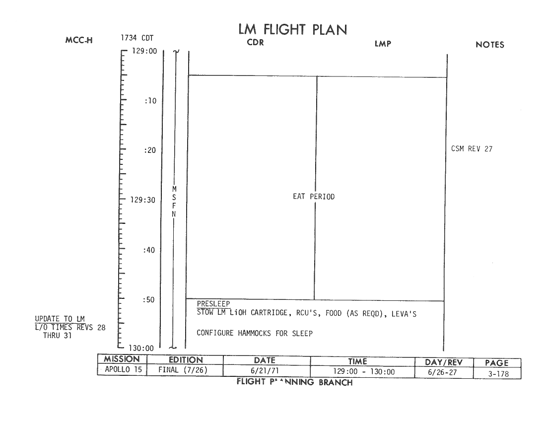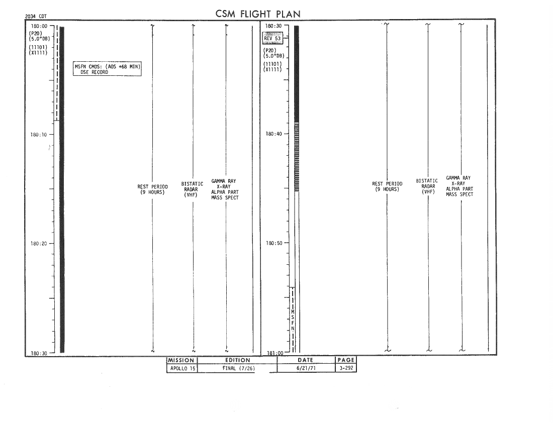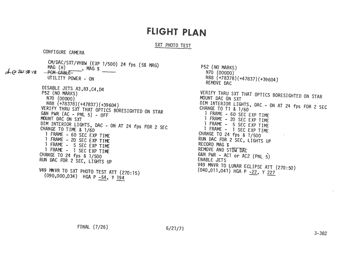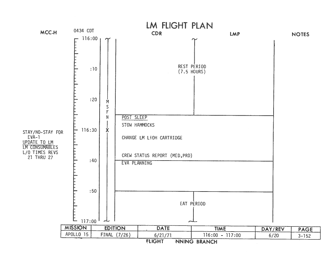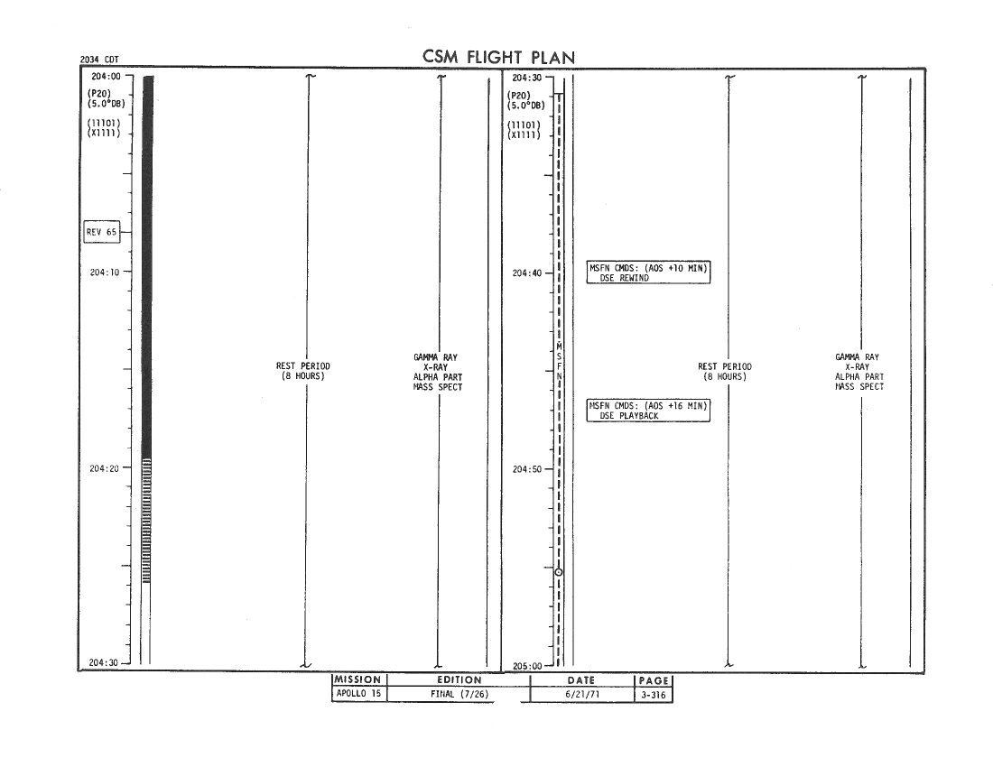 All hand-written additions in this copy of the Flight Plan were made by David Woods during the compilation of this Journal and largely represent the updates read to the crew during the flight.