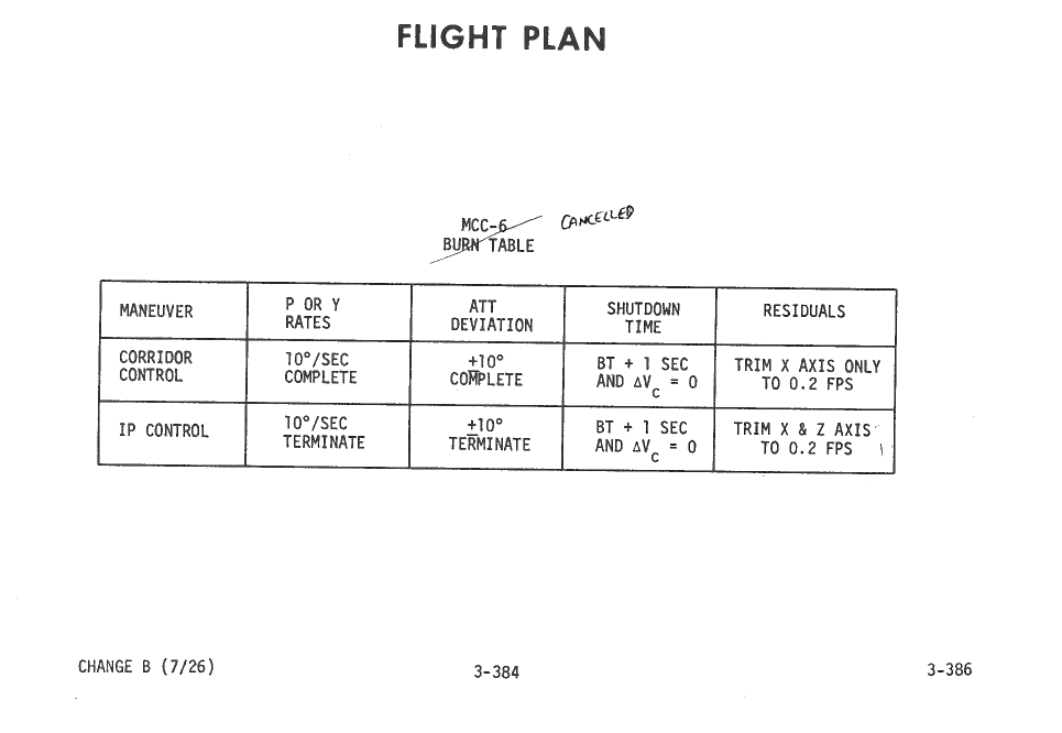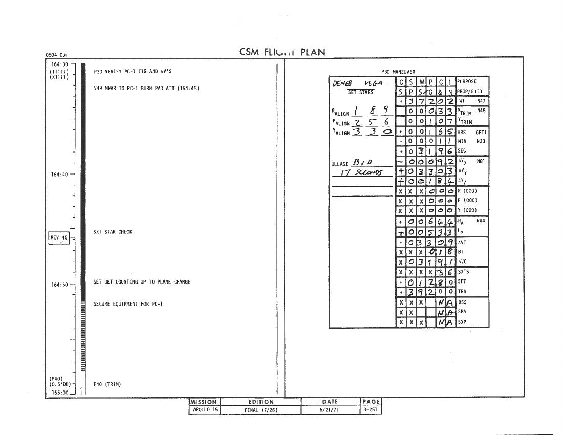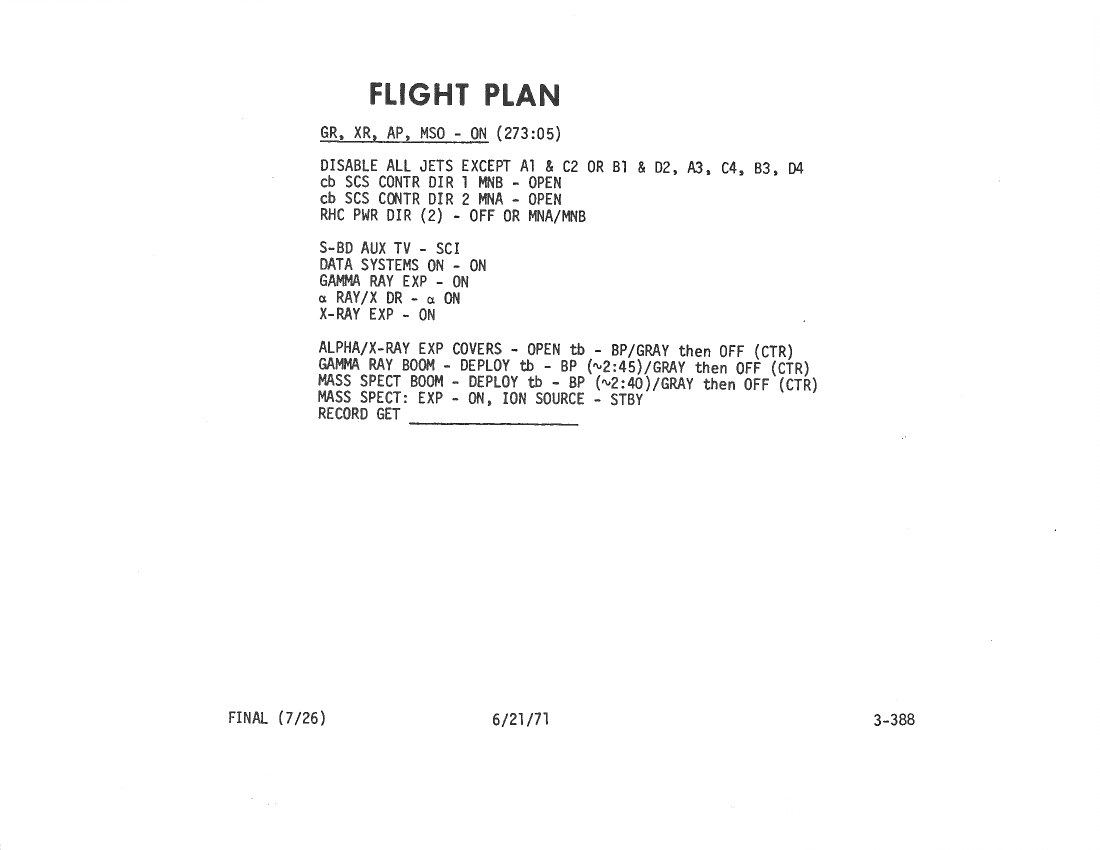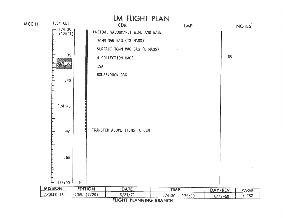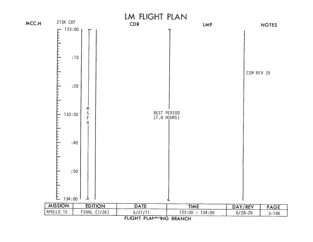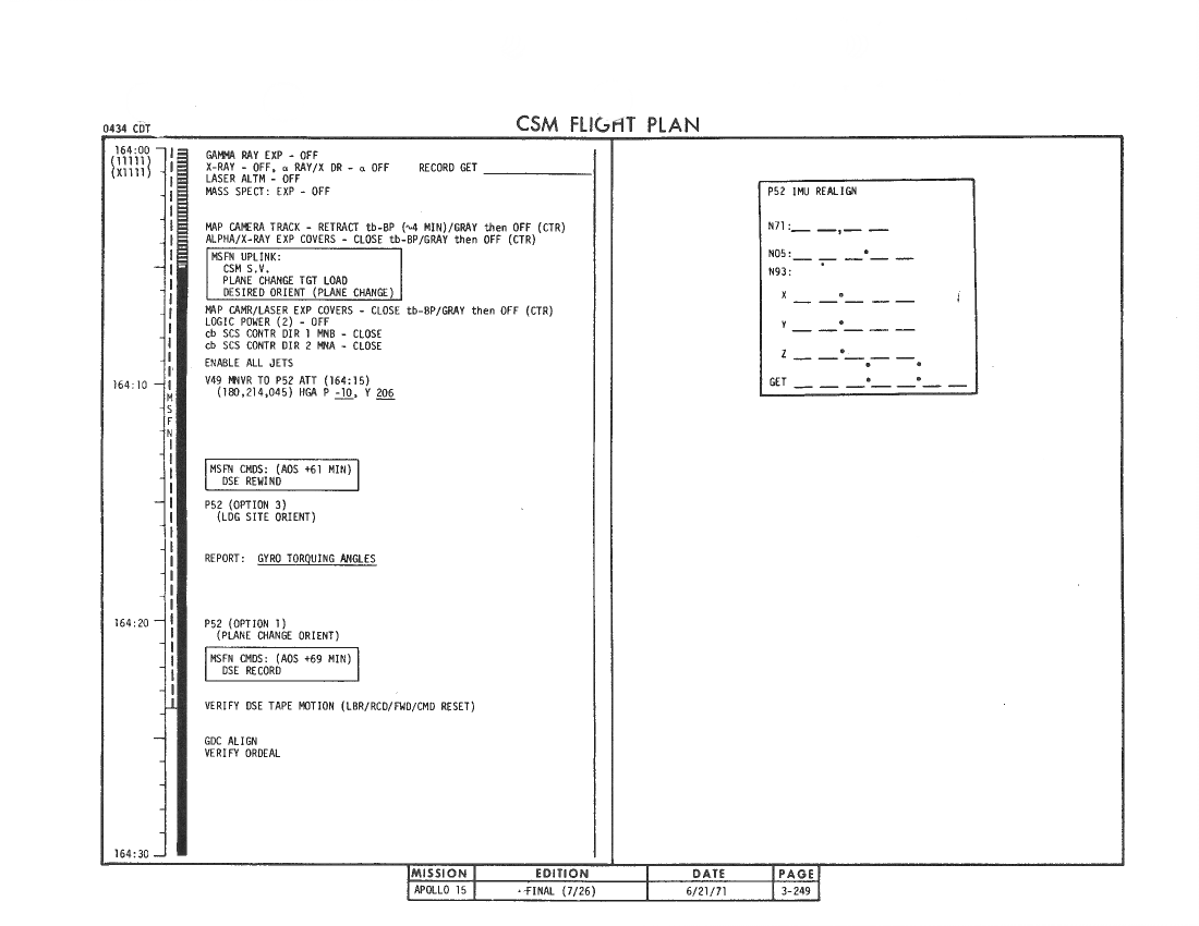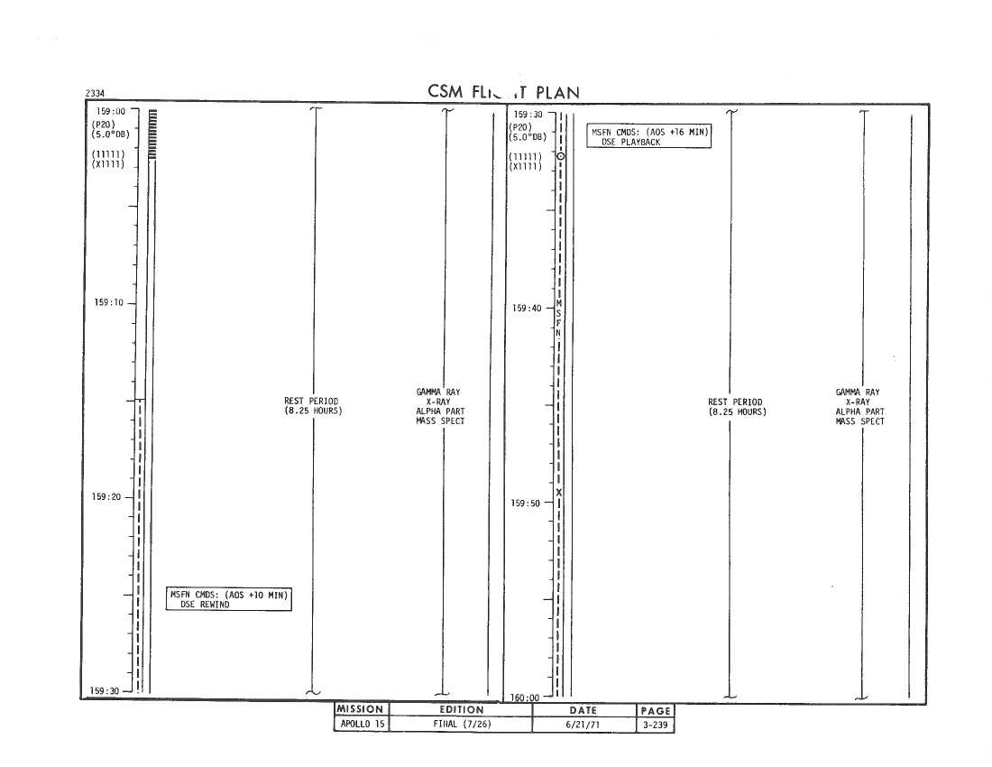 All hand-written additions in this copy of the Flight Plan were made by David Woods during the compilation of this Journal and largely represent the updates read to the crew during the flight.