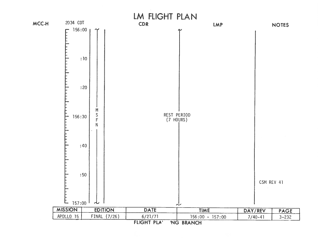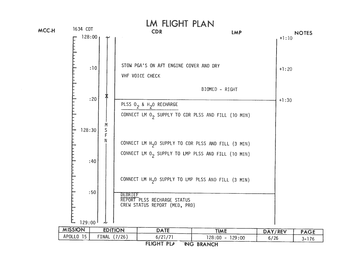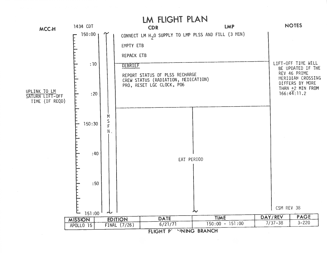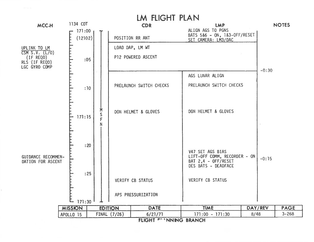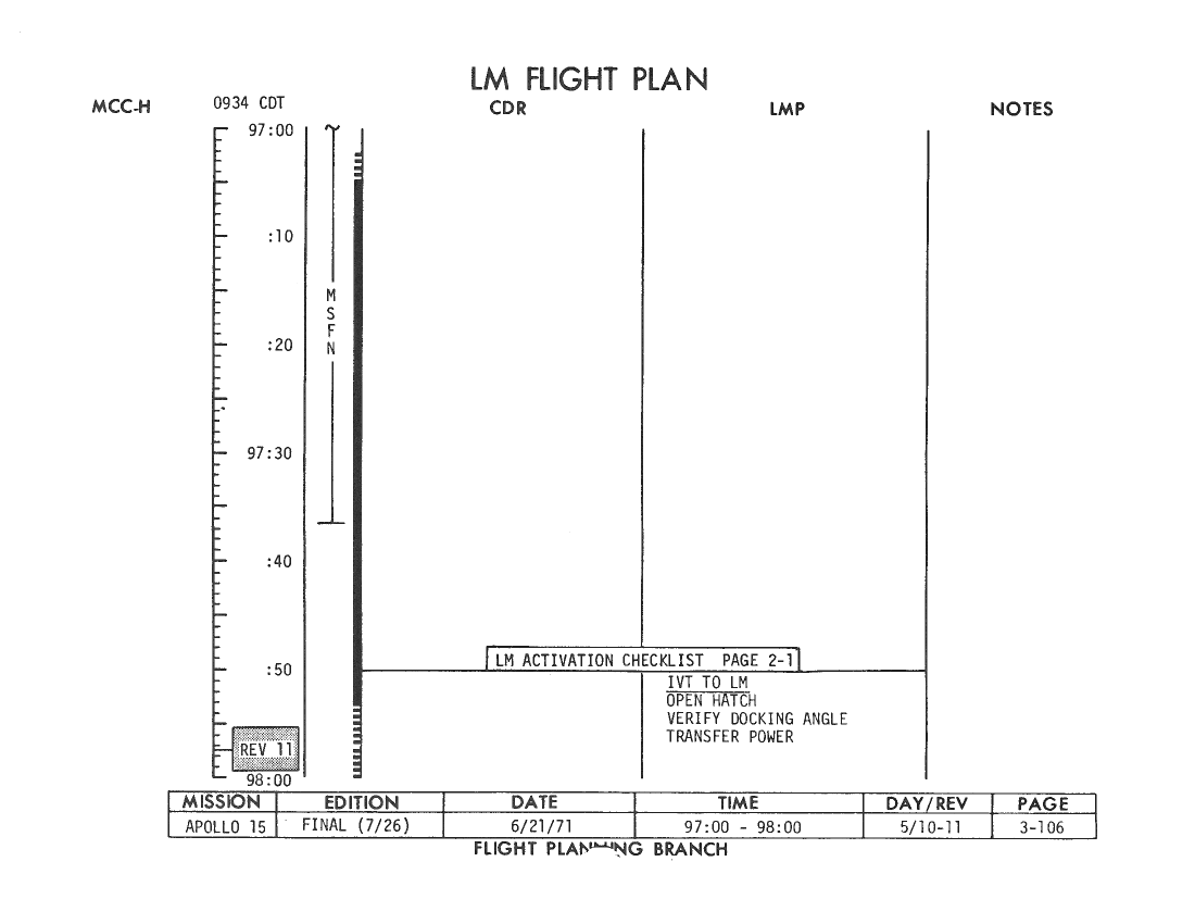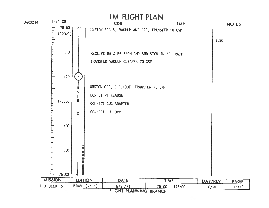 All hand-written additions in this copy of the Flight Plan were made by David Woods during the compilation of this Journal and largely represent the updates read to the crew during the flight.