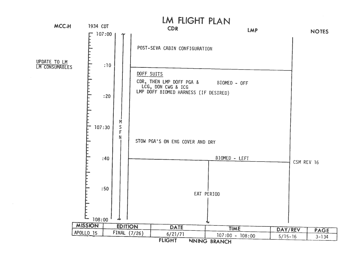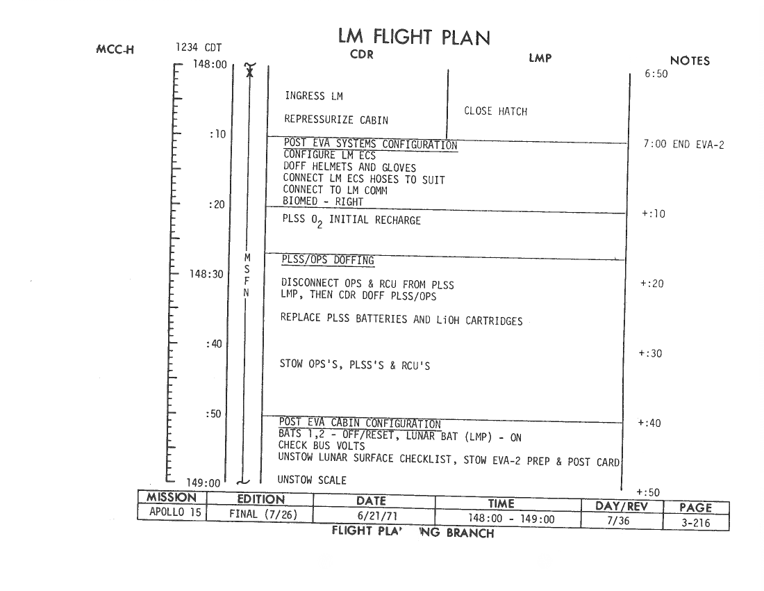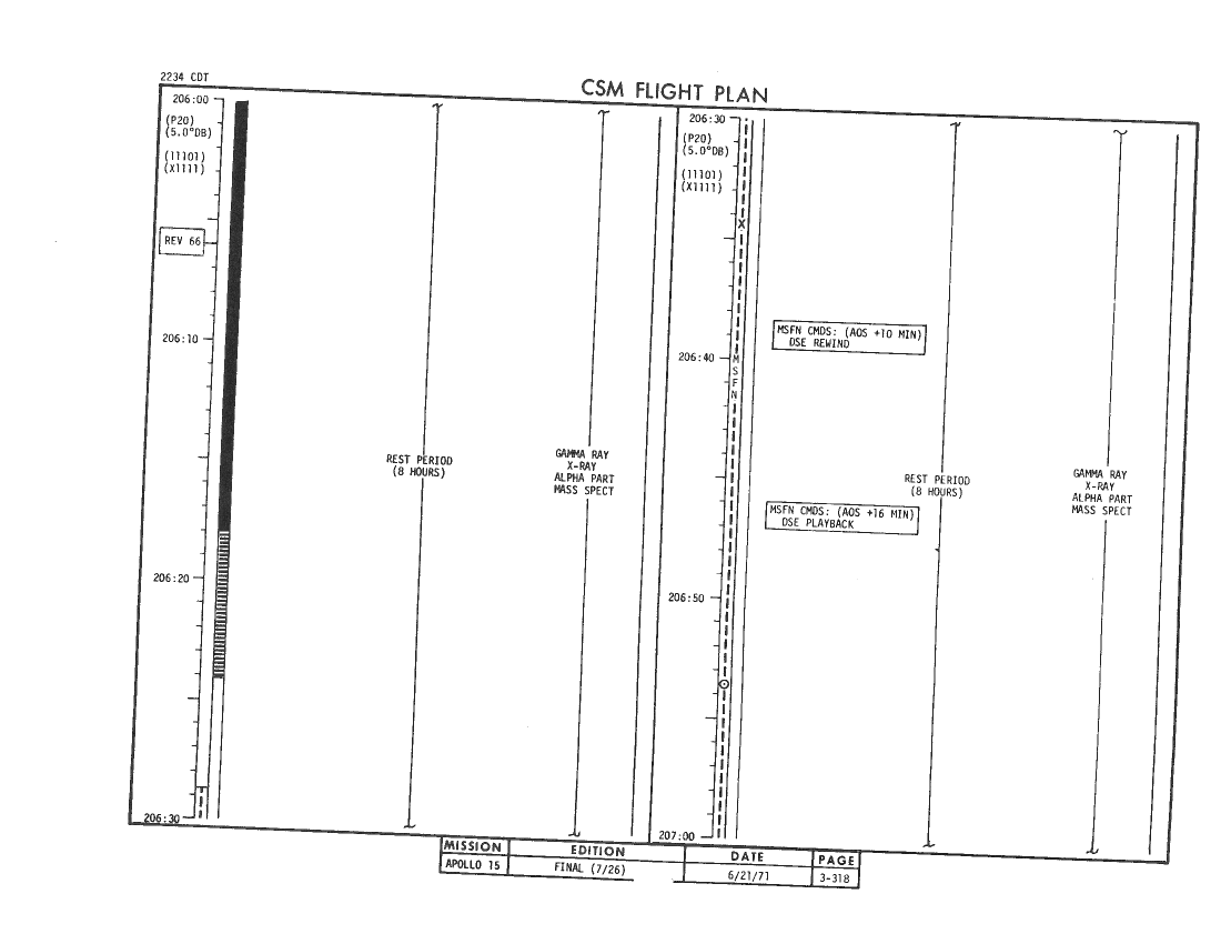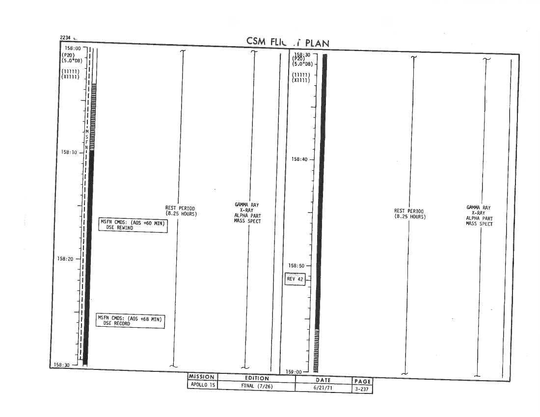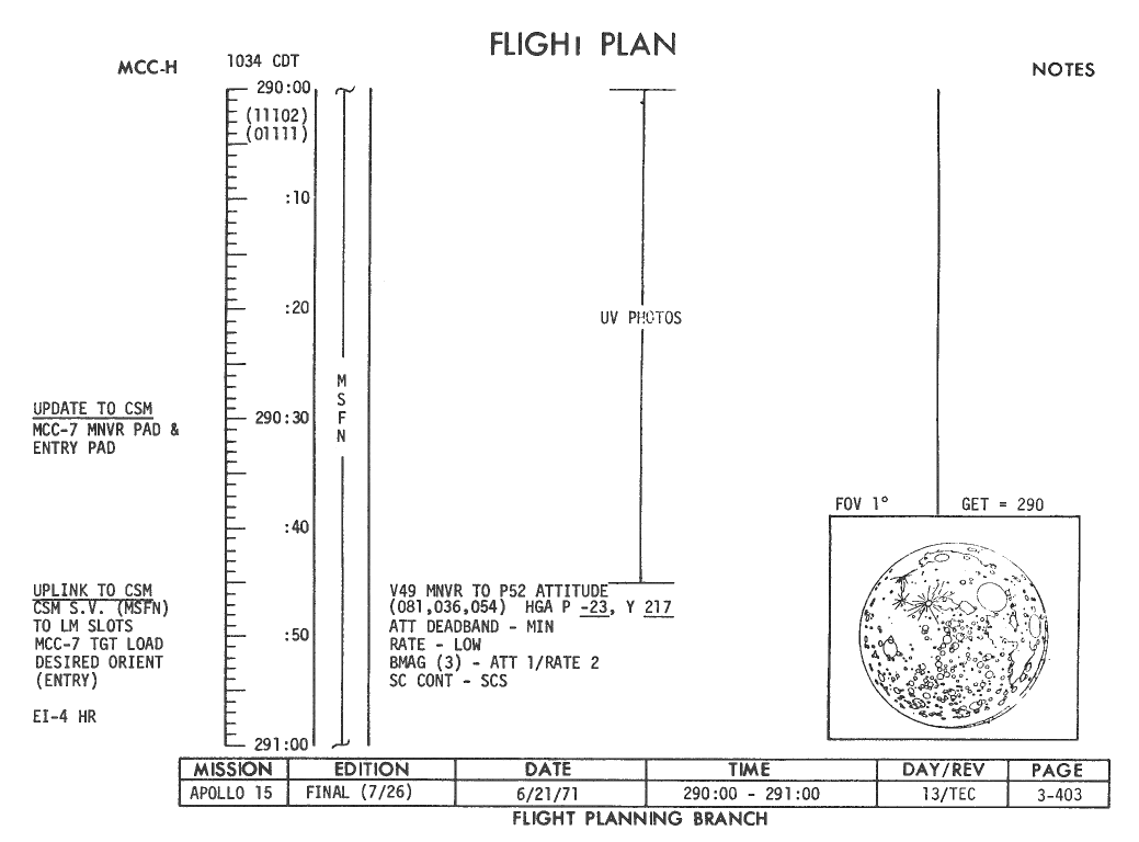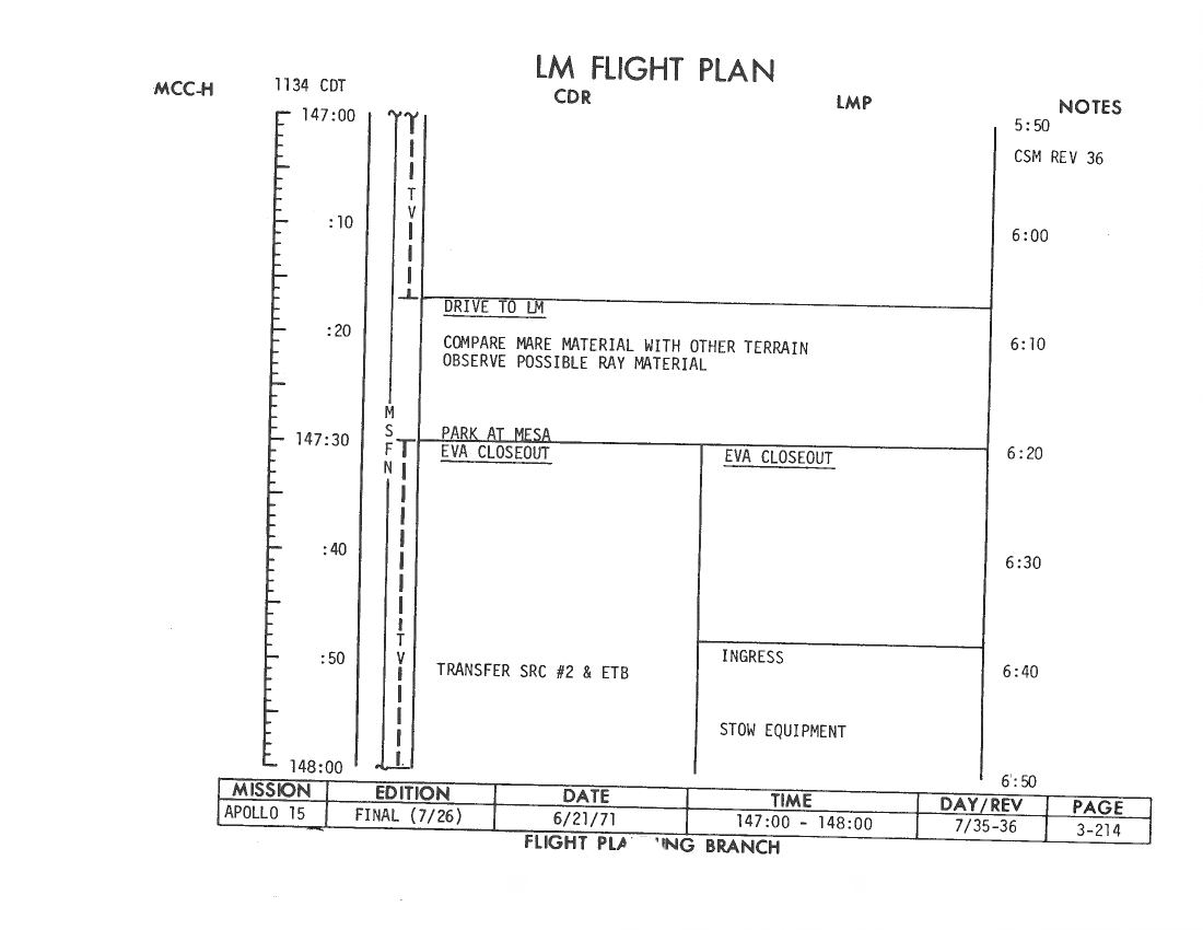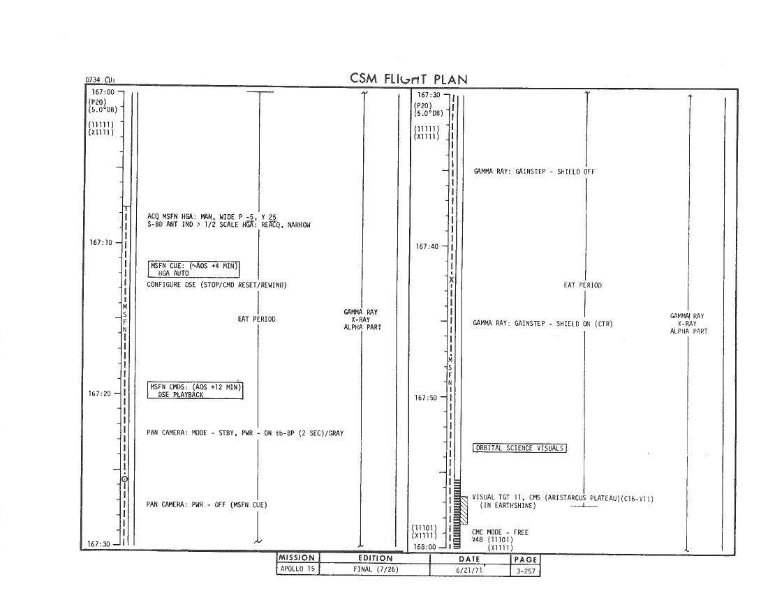 All hand-written additions in this copy of the Flight Plan were made by David Woods during the compilation of this Journal and largely represent the updates read to the crew during the flight.