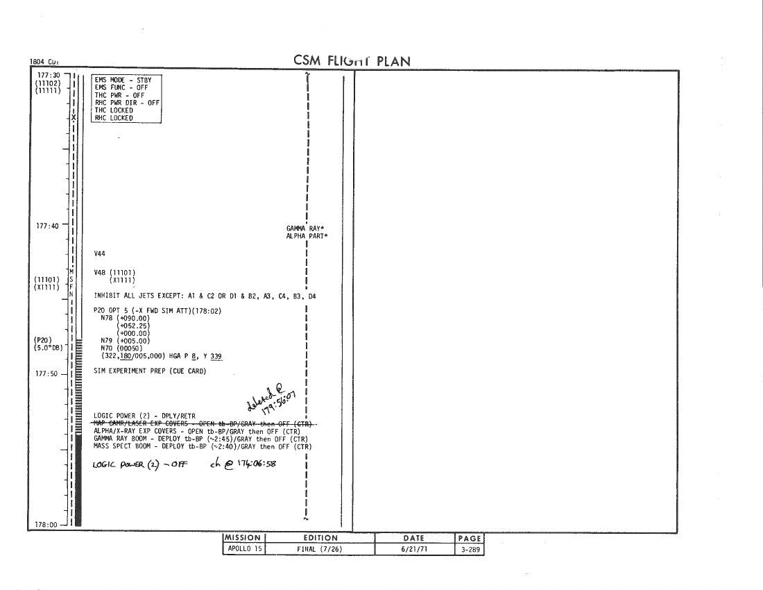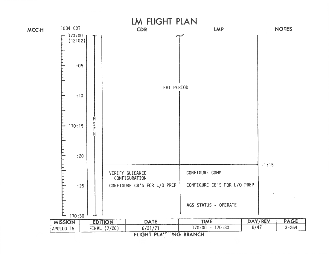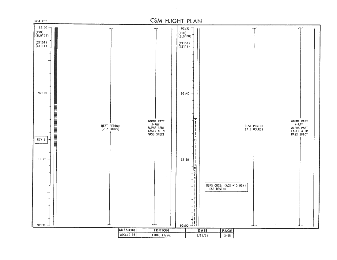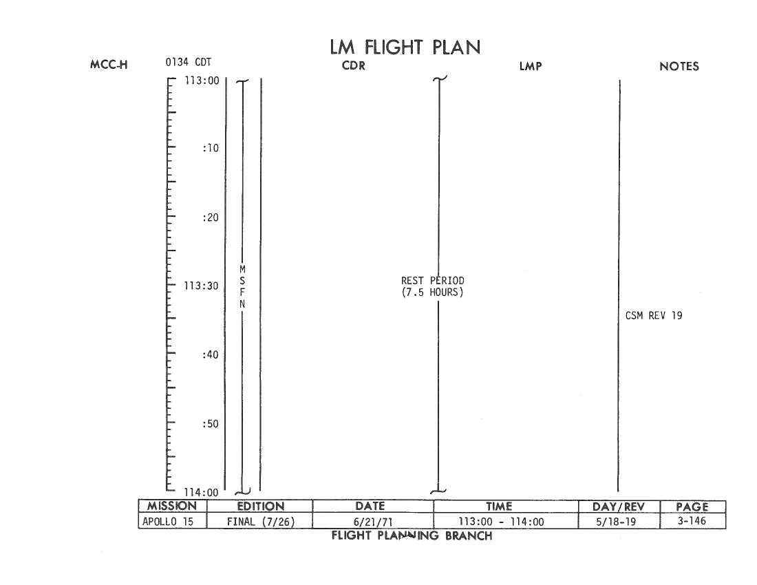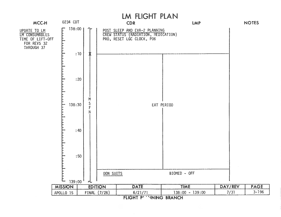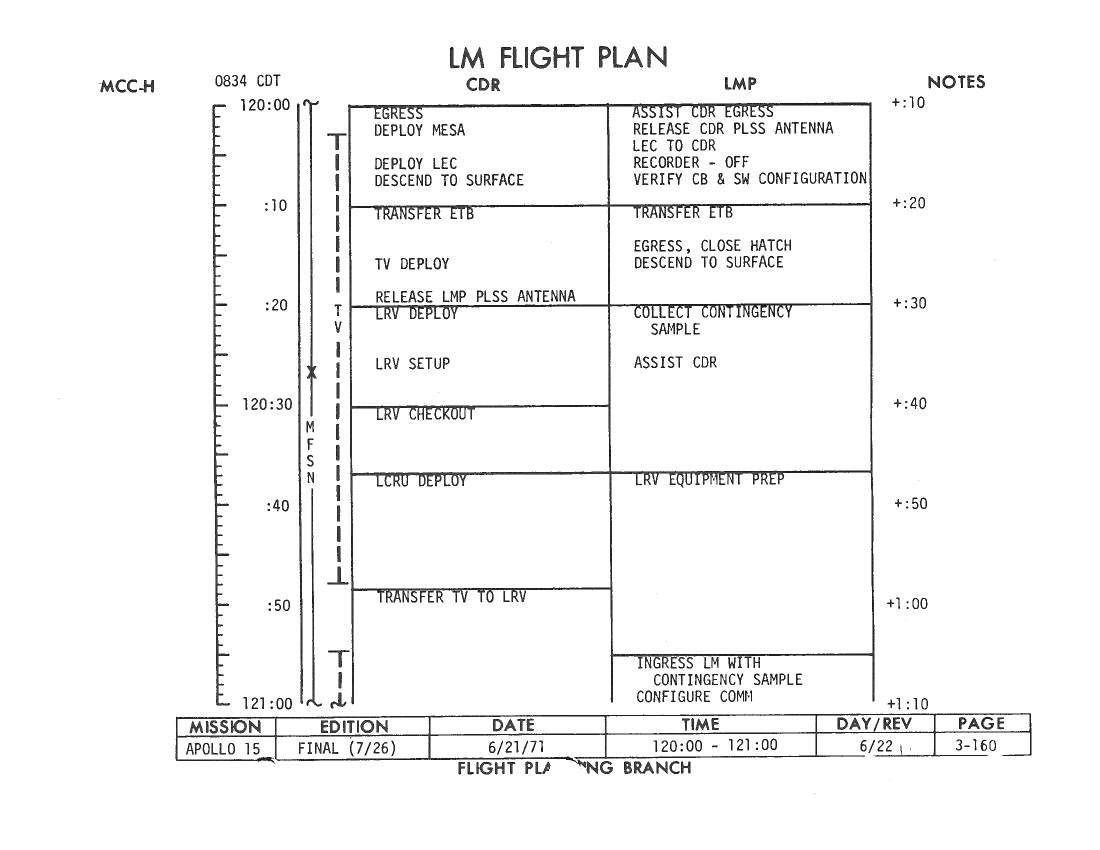 All hand-written additions in this copy of the Flight Plan were made by David Woods during the compilation of this Journal and largely represent the updates read to the crew during the flight.