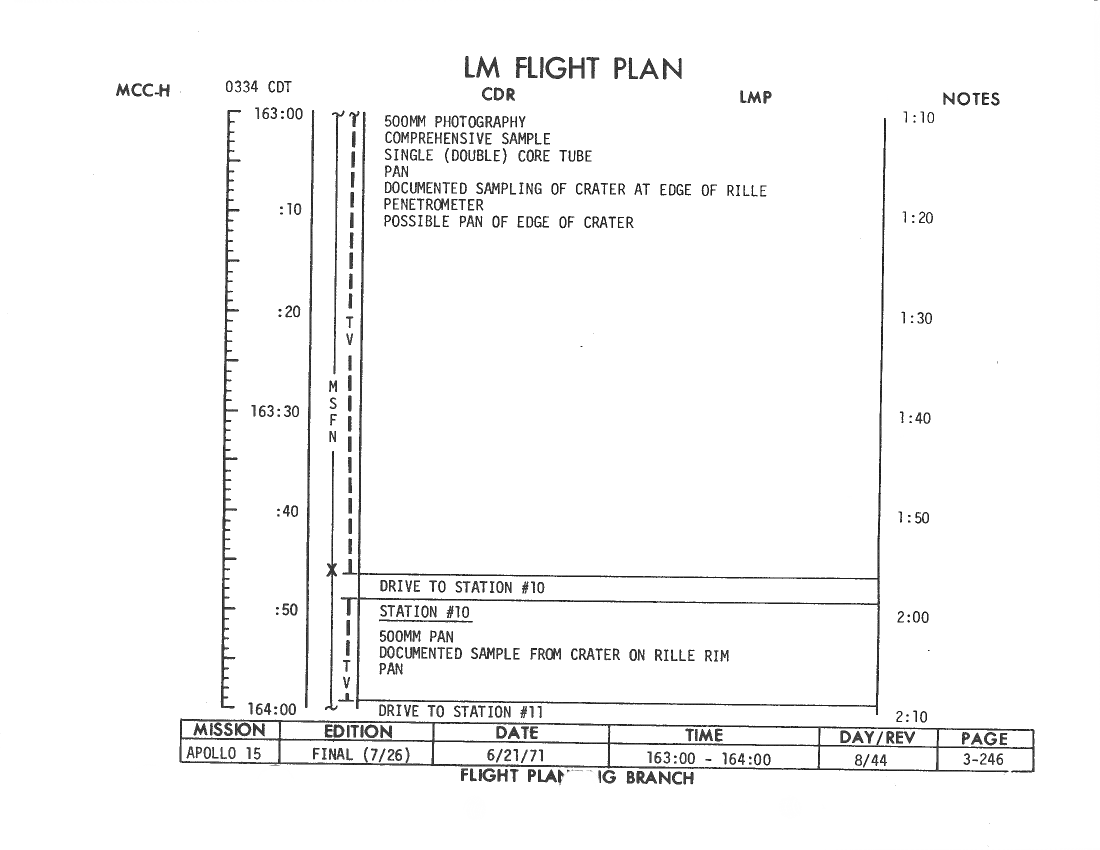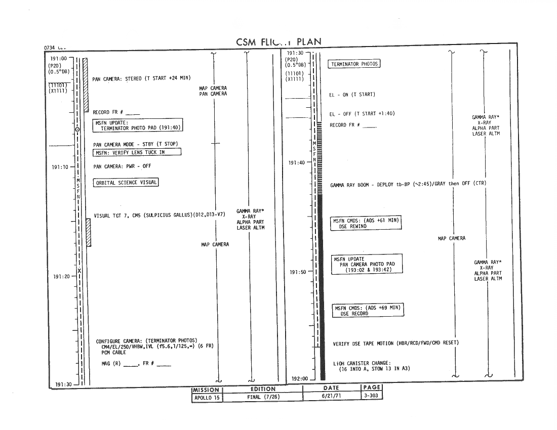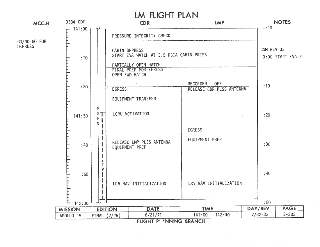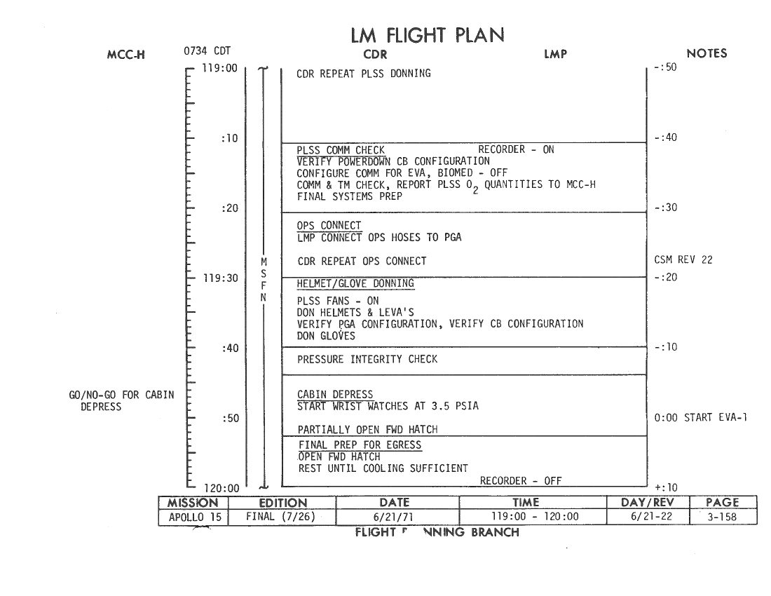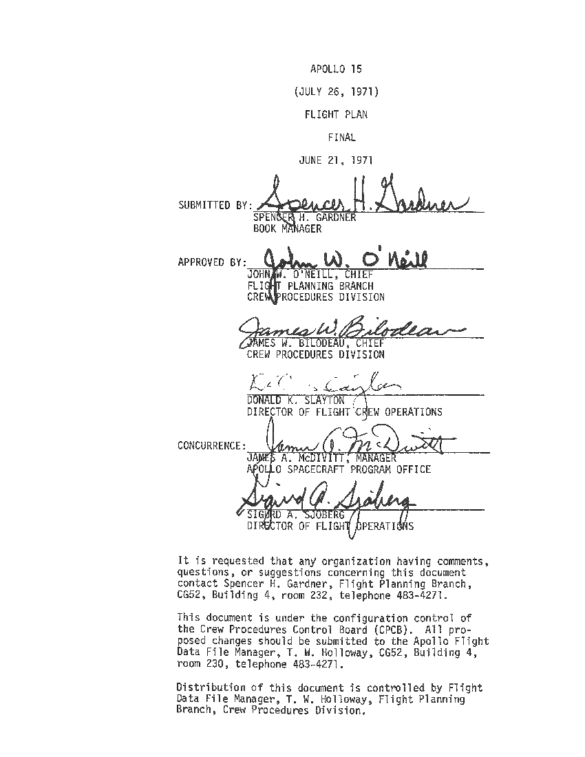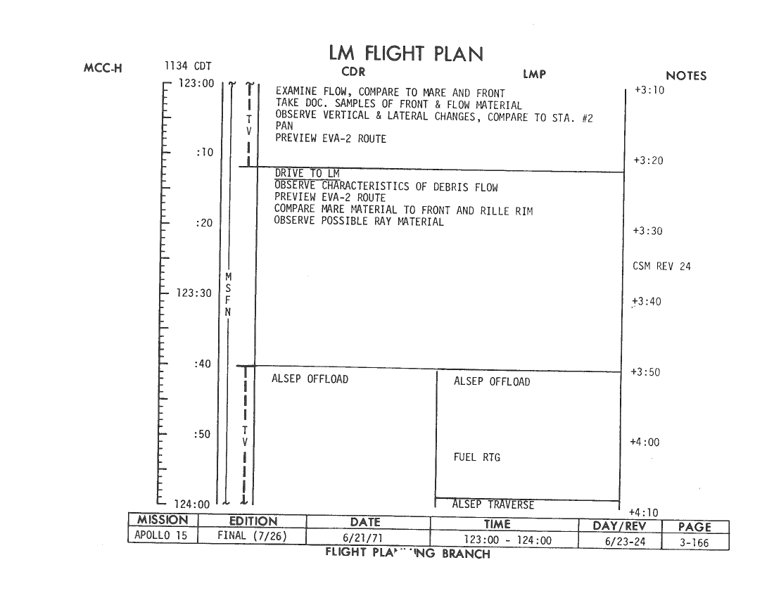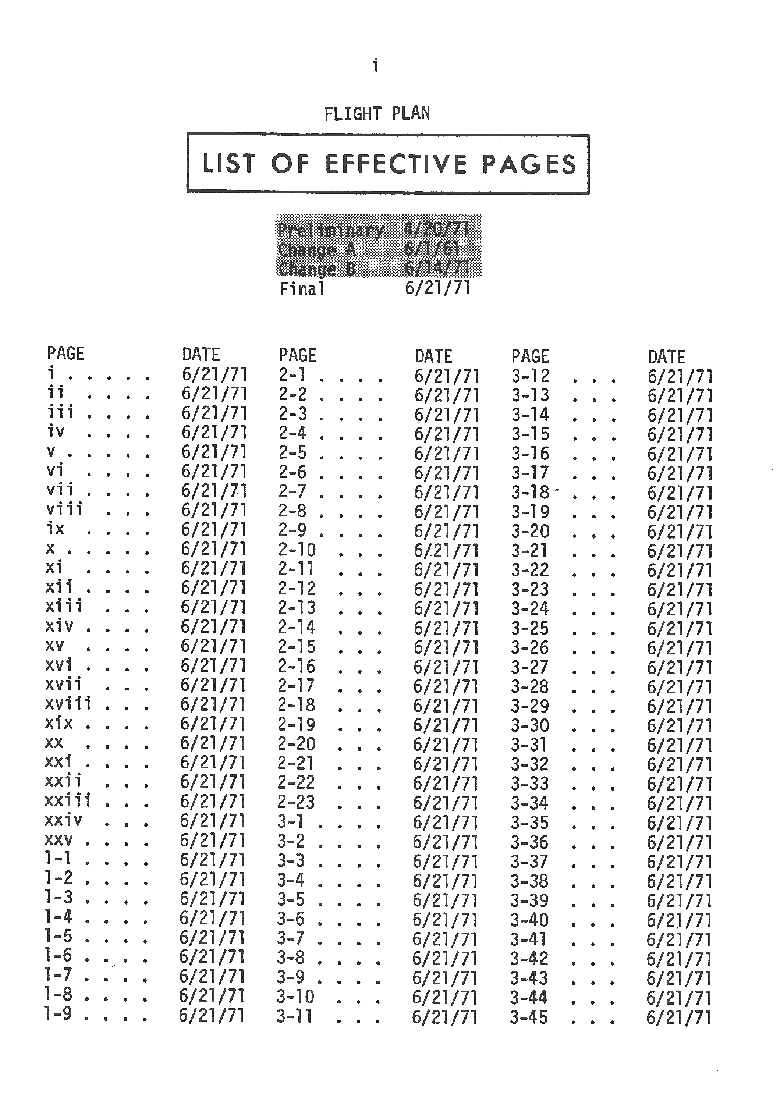 All hand-written additions in this copy of the Flight Plan were made by David Woods during the compilation of this Journal and largely represent the updates read to the crew during the flight.