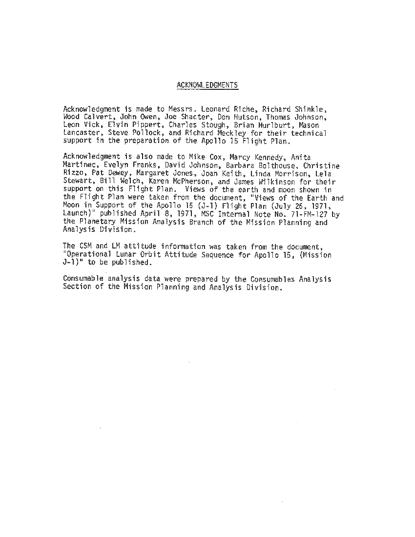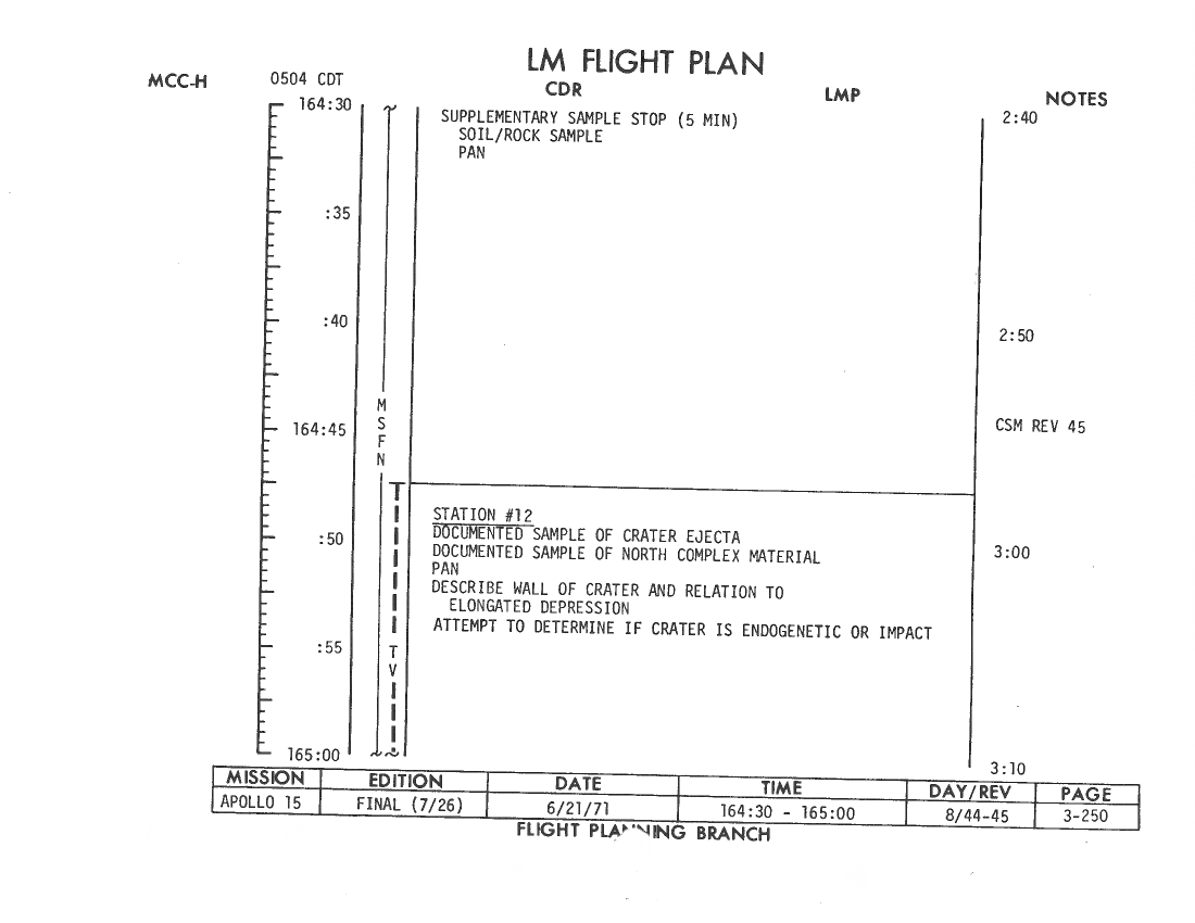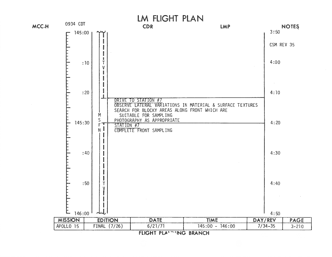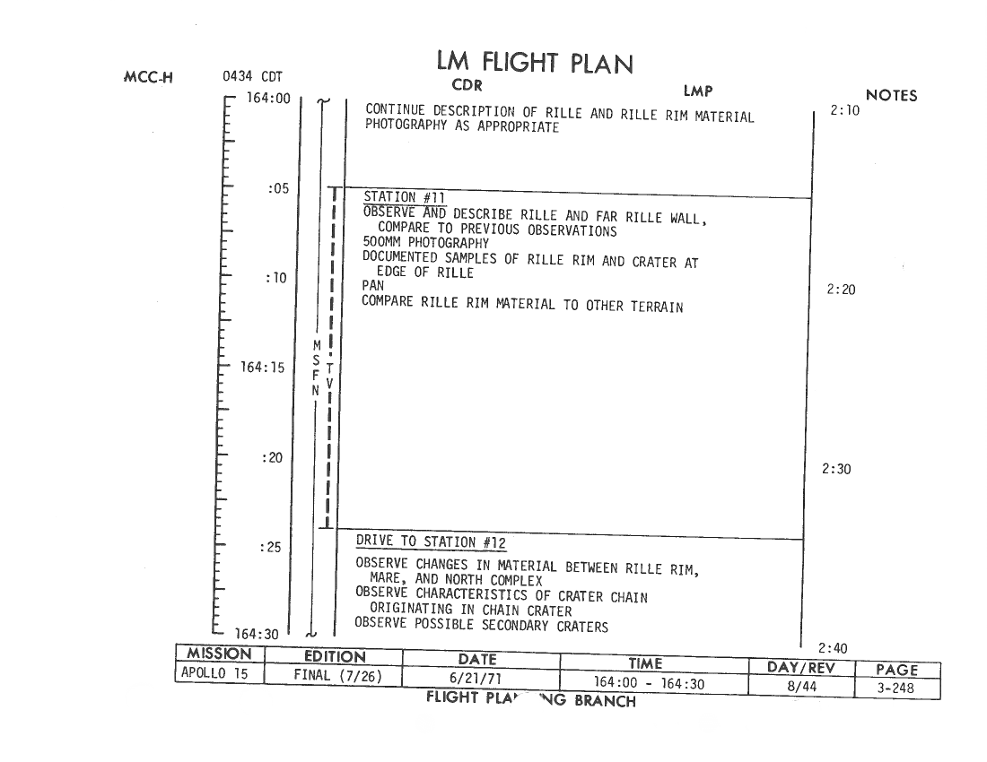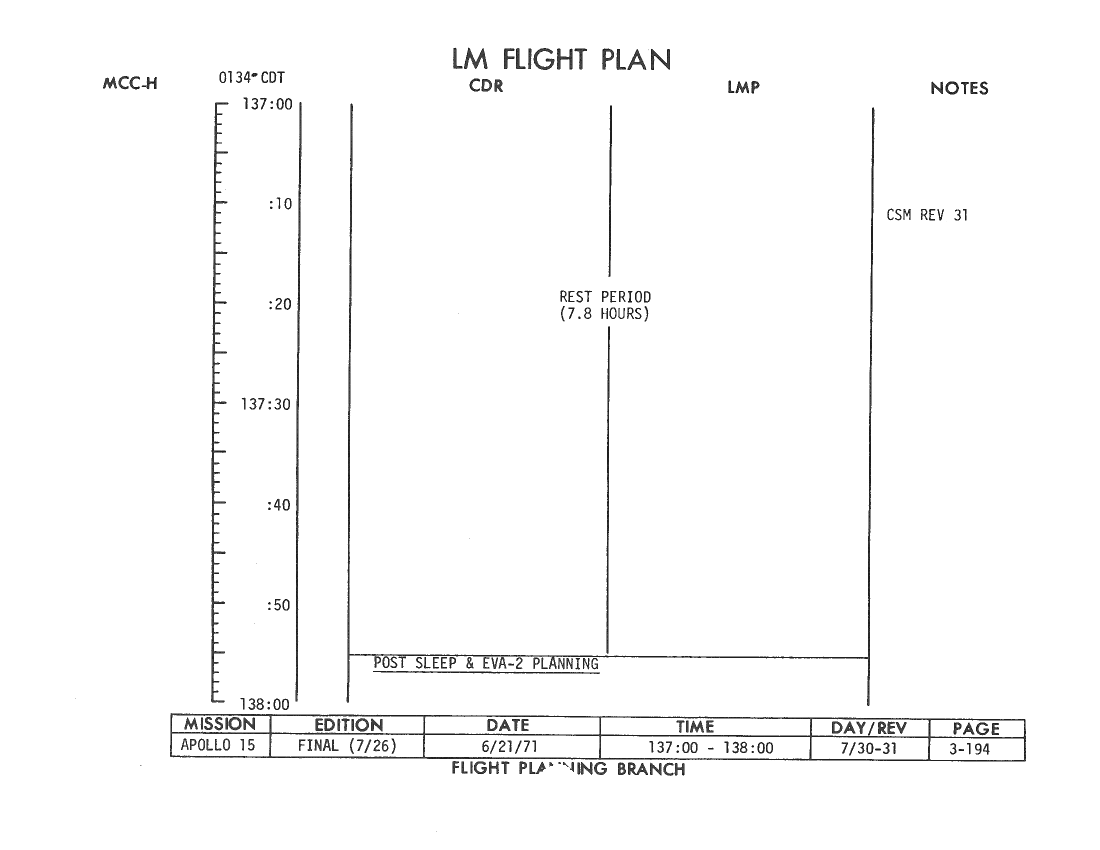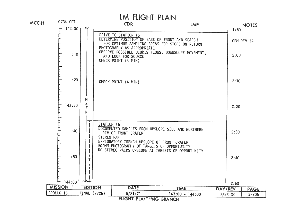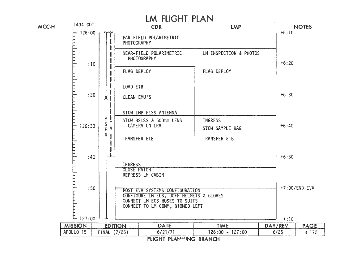All hand-written additions in this copy of the Flight Plan were made by David Woods during the compilation of this Journal and largely represent the updates read to the crew during the flight.