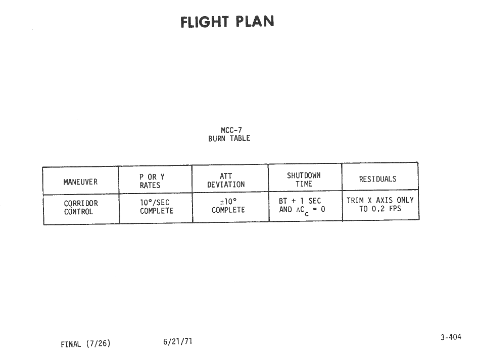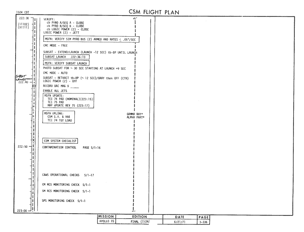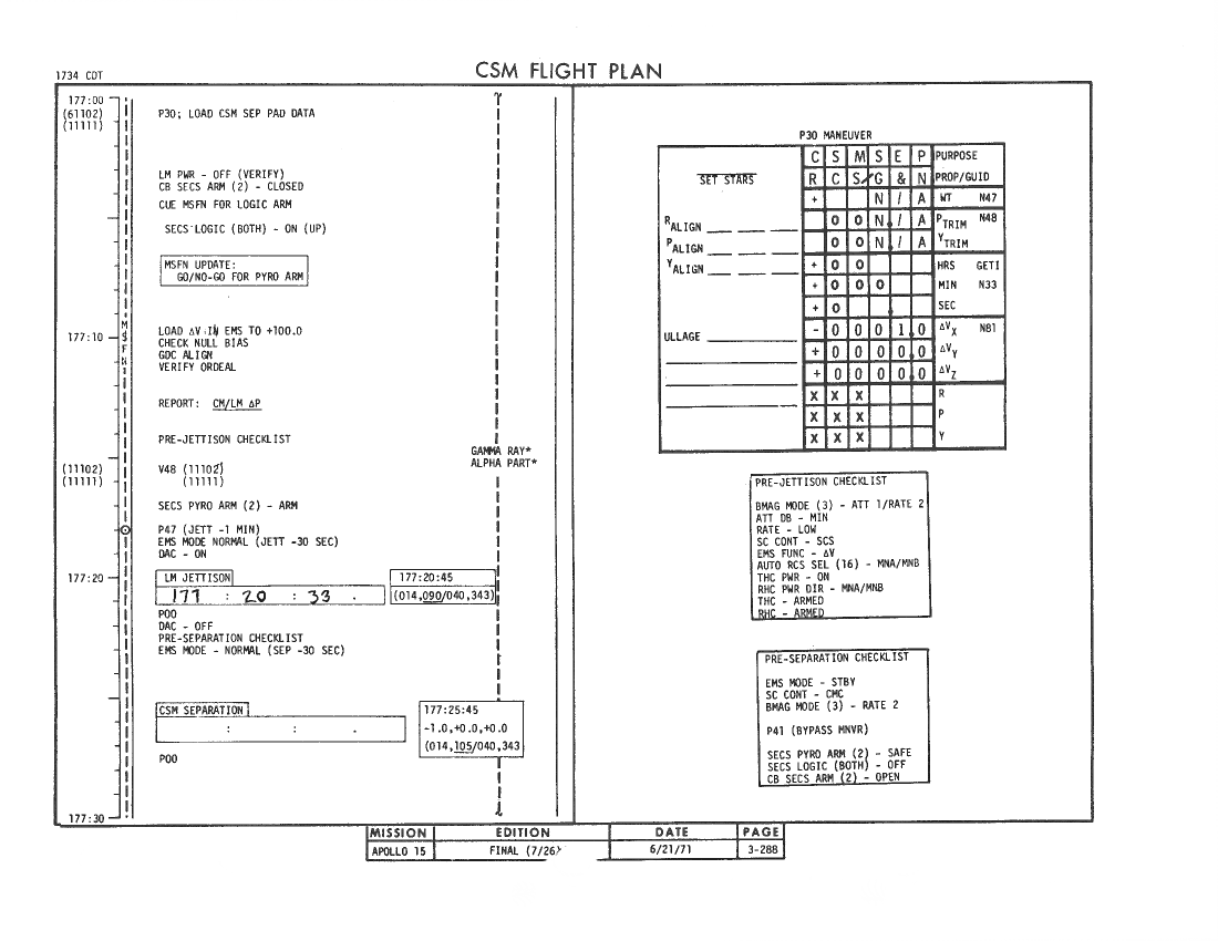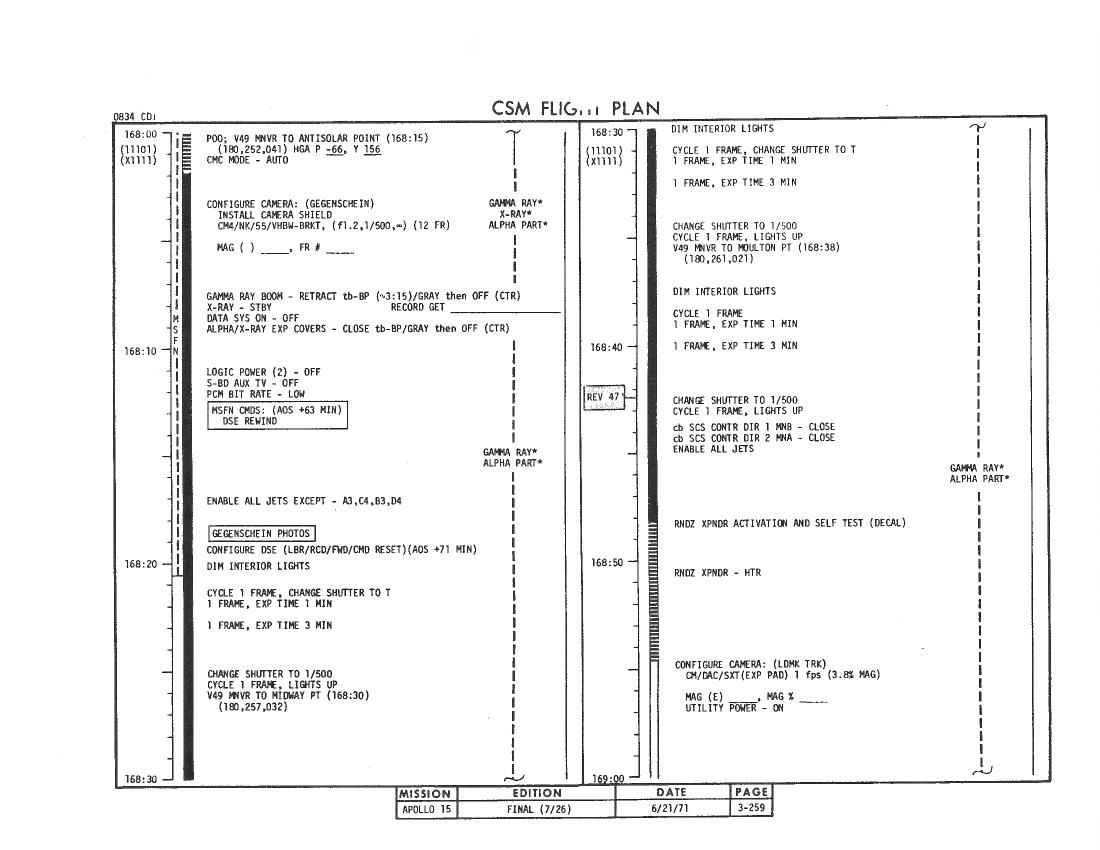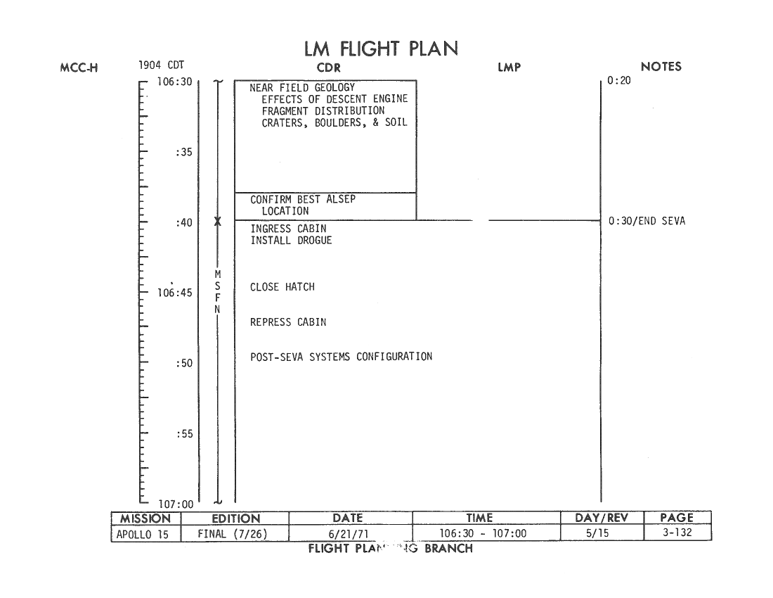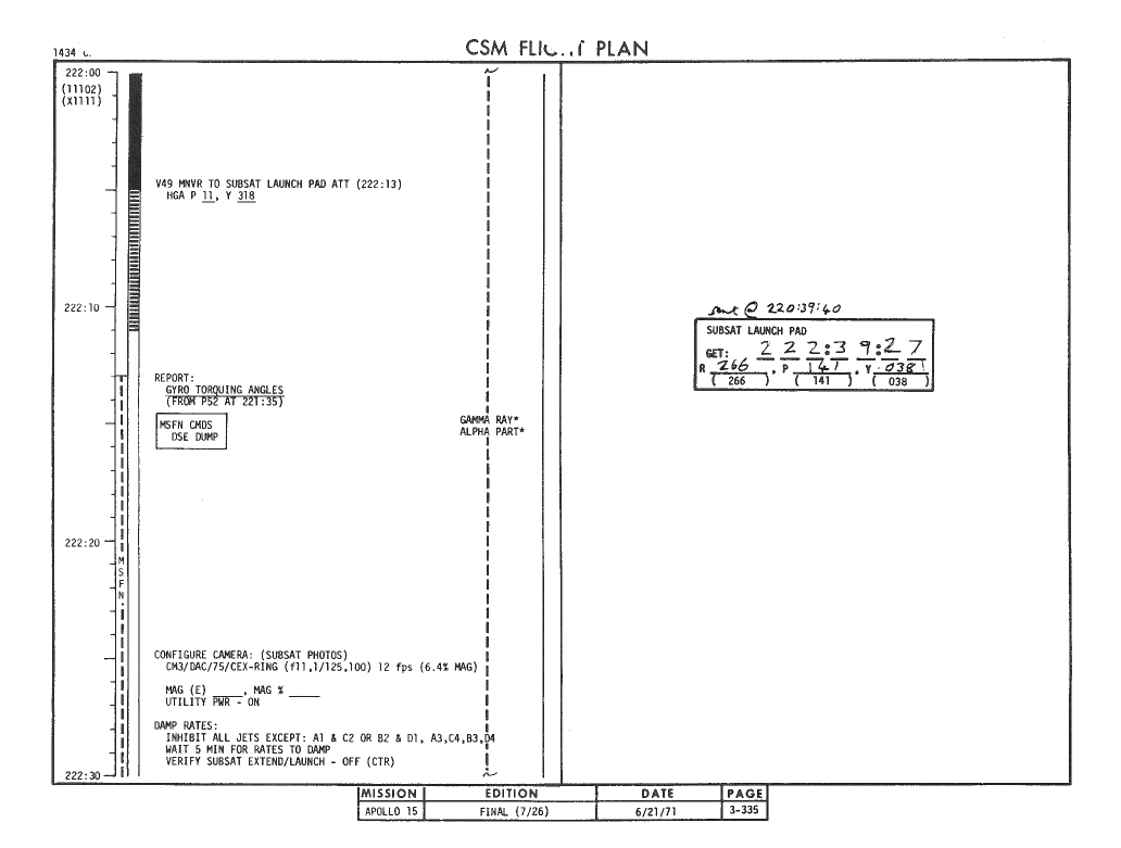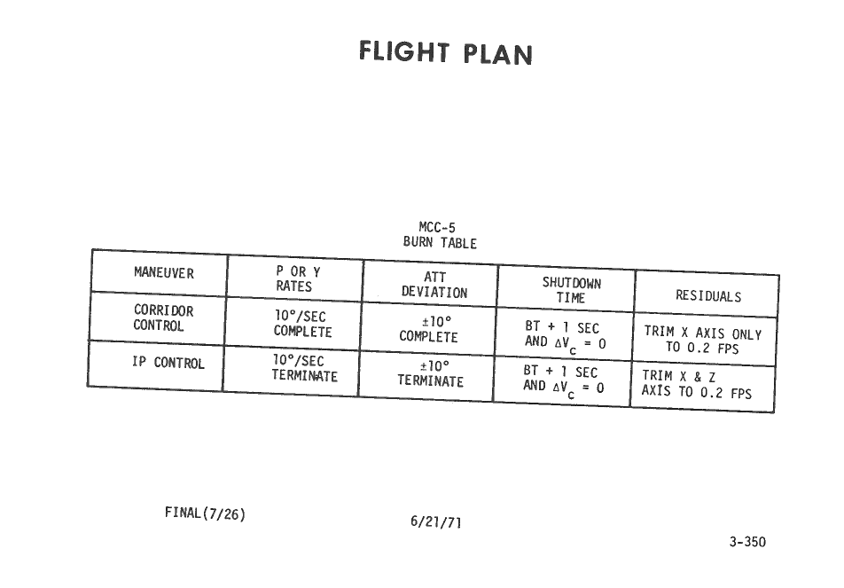 All hand-written additions in this copy of the Flight Plan were made by David Woods during the compilation of this Journal and largely represent the updates read to the crew during the flight.