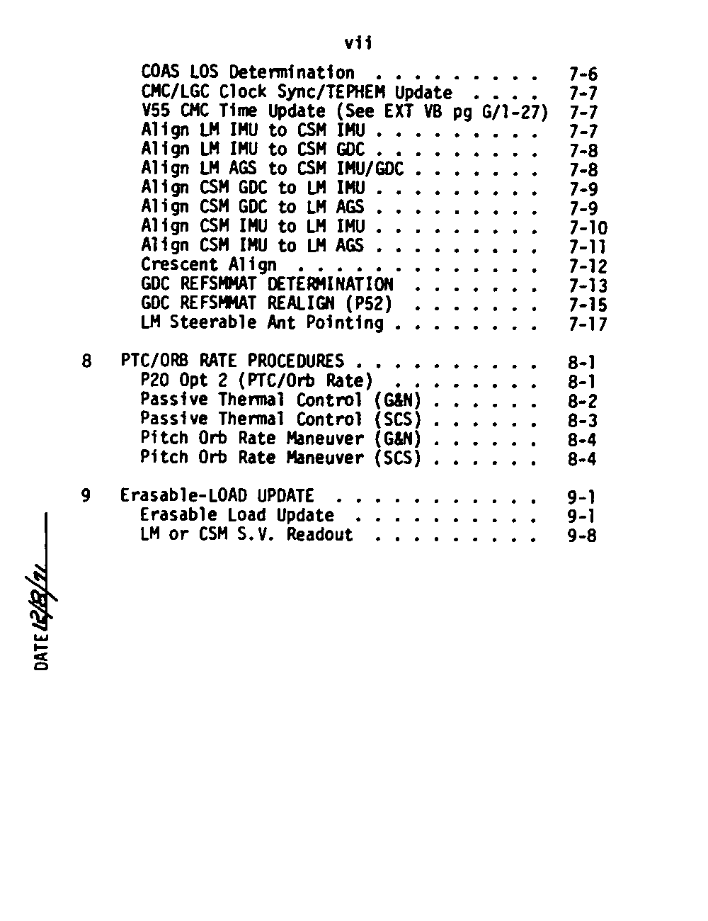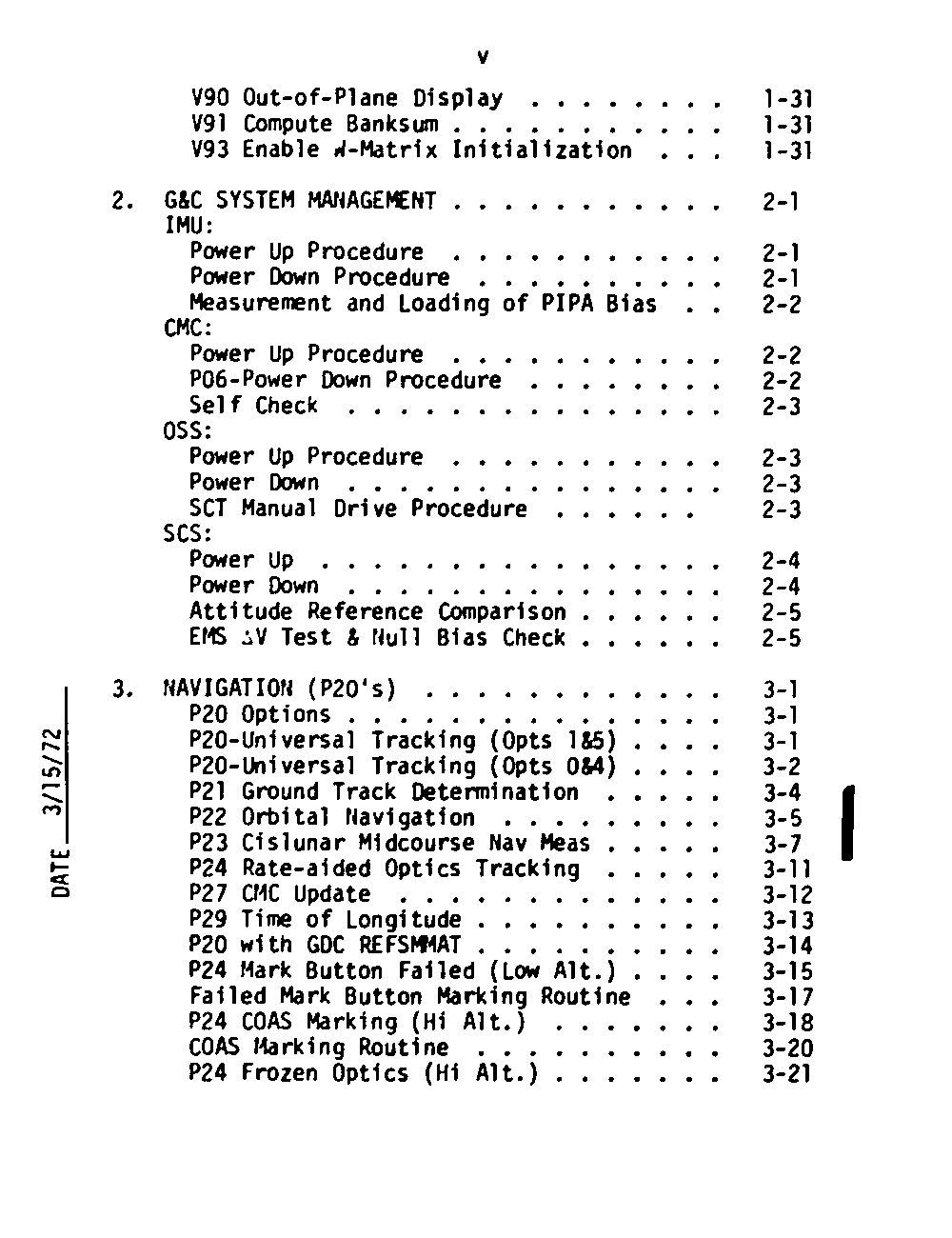 The Checklists are derived from Volume 2 of the Apollo Operations Handbook, which contains the detailed operating procedures for the various systems in the spacecraft, under both normal and emergency conditions. The Checklists are then developed through simulation, and from experience in previous missions. This section contains scans of the 220 pages of the G&C Checklist .