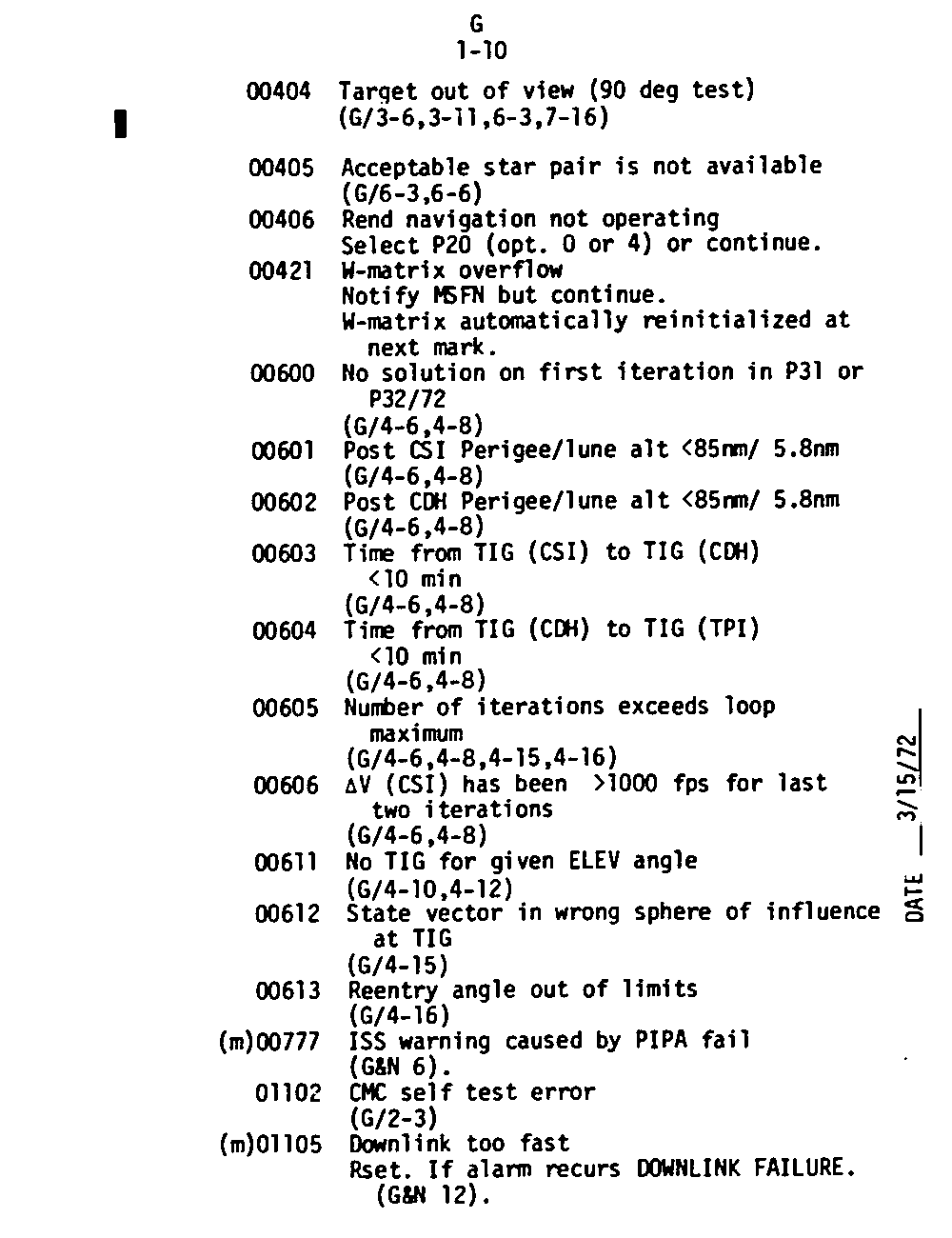 Page G1-10 V05 N09 Alarm Codes 00404 to