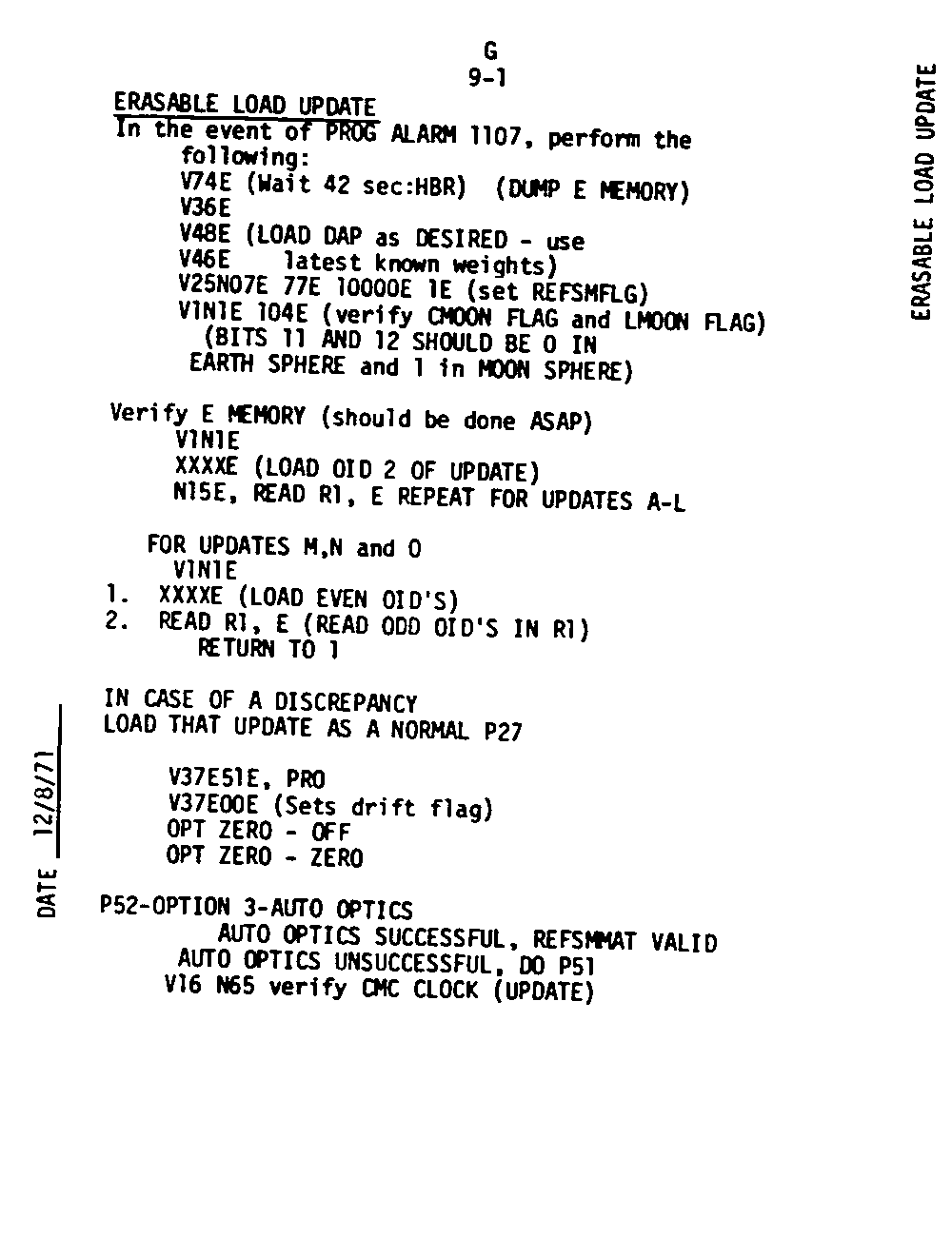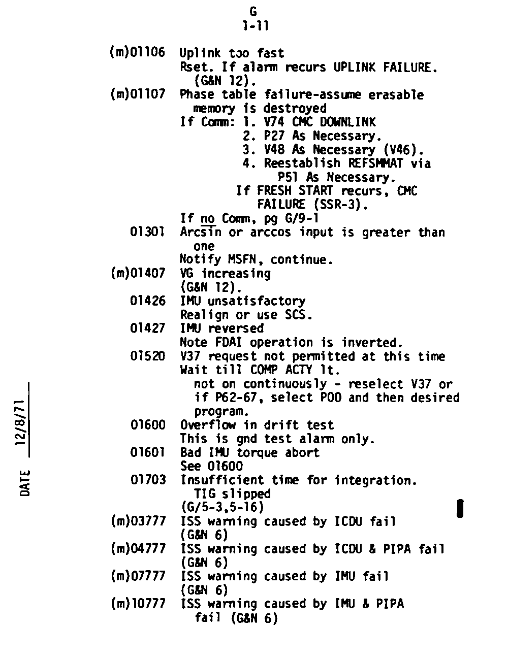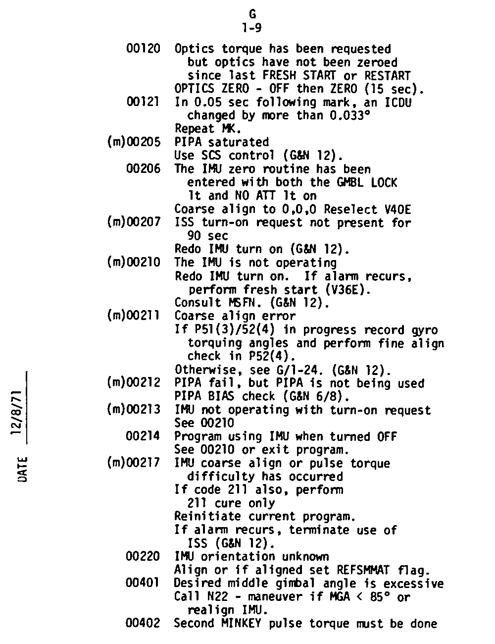 Page G1-9 V05 N09 Alarm Codes 00120 to 00402