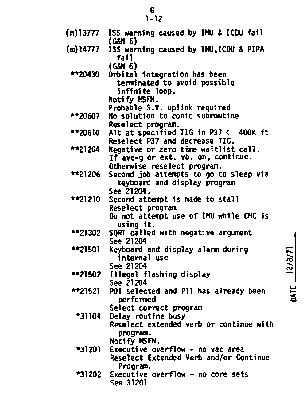 Page G1-12 V05 N09 Alarm Codes 13777 to