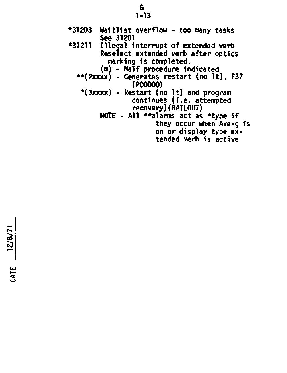 Page G1-13 V05 N09 Alarm Codes 31203 to