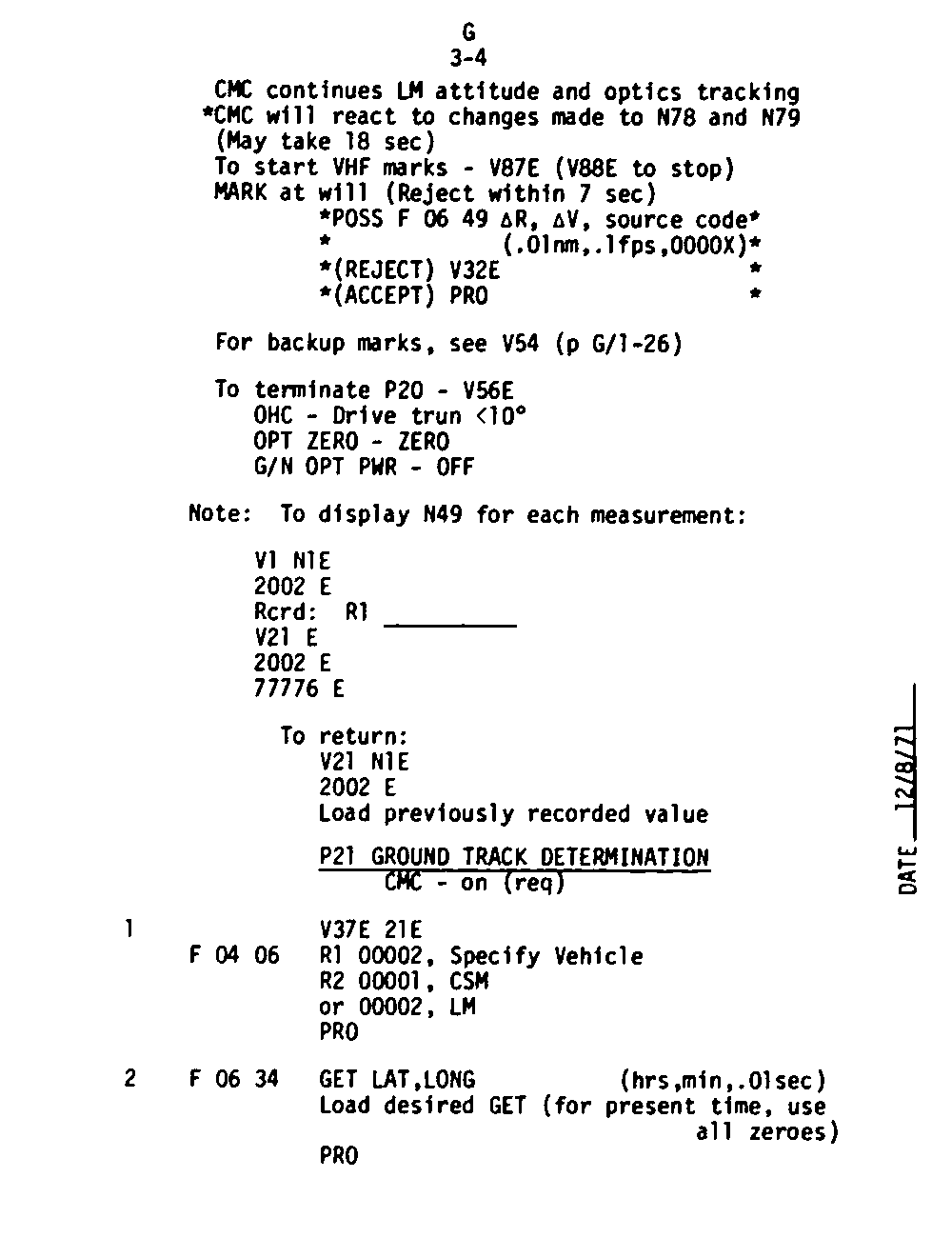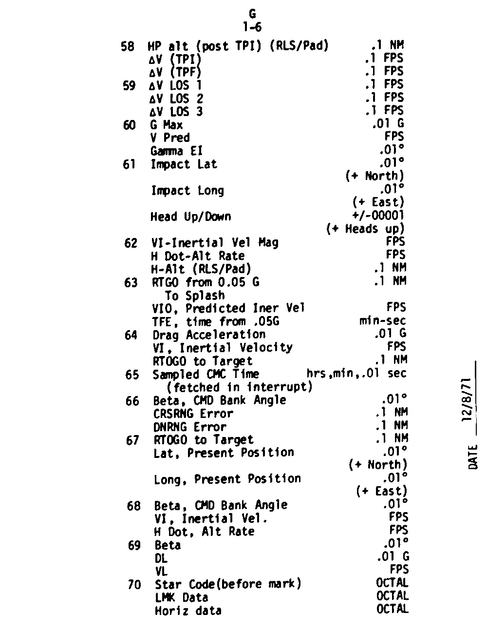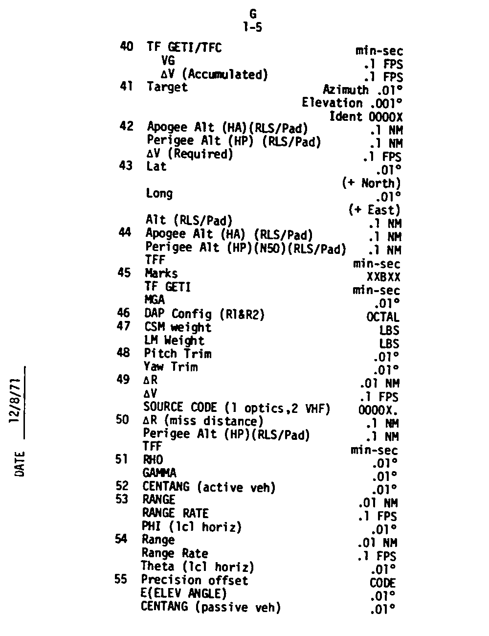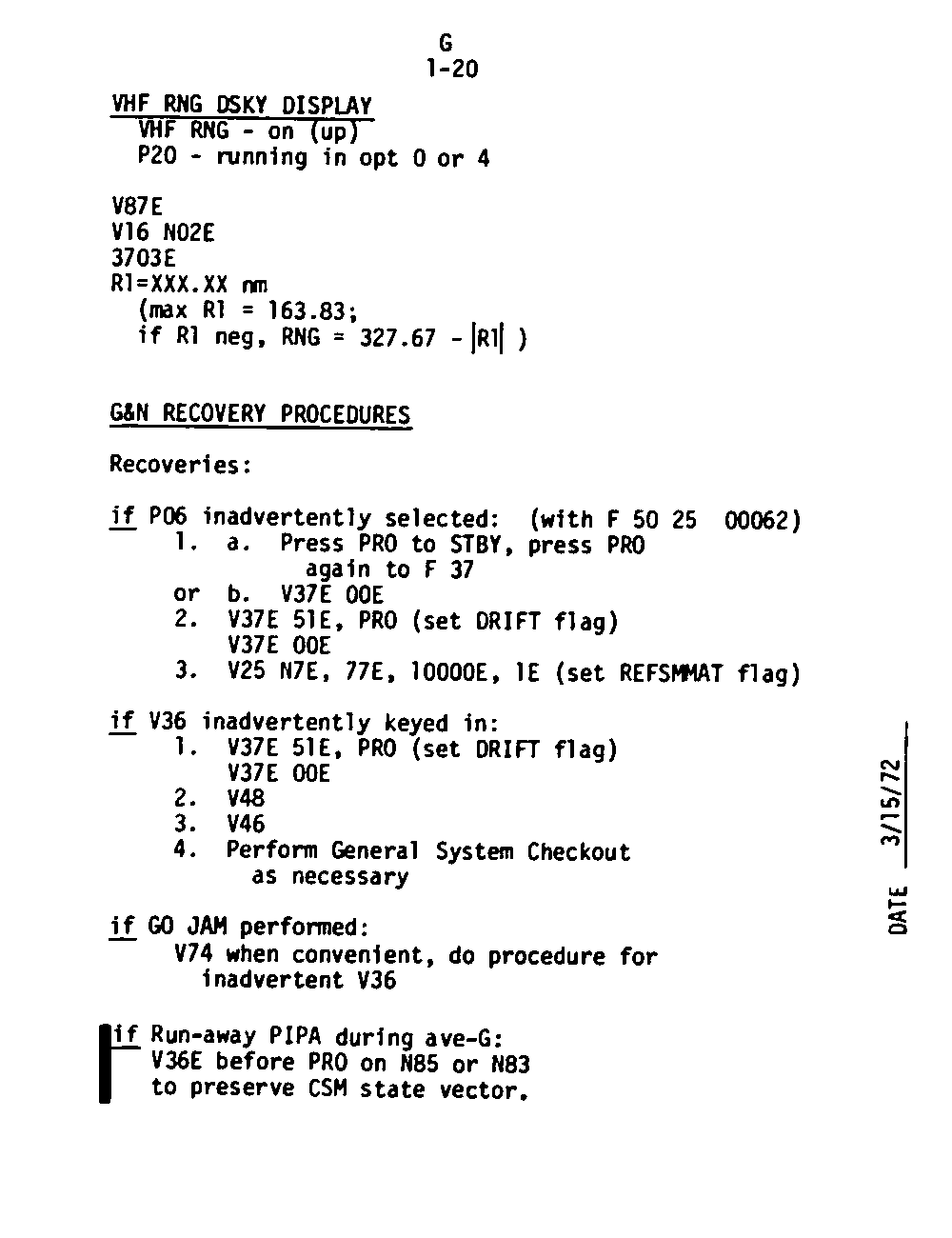 Page G1-20 VHF Ranging DSKY Display,