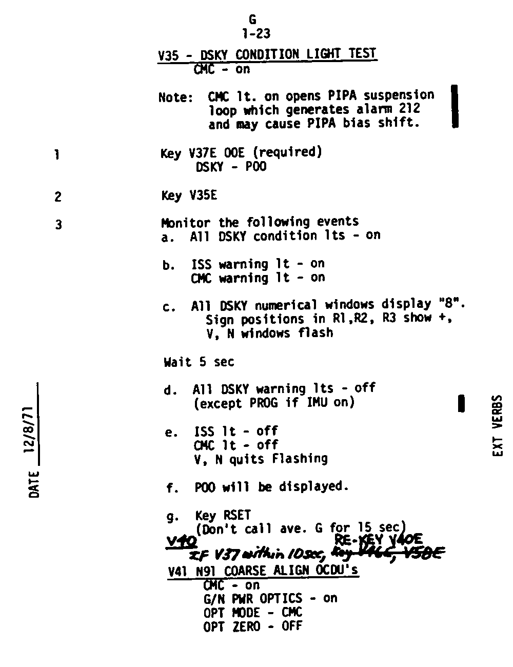 Page G1-23 V35 DSKY Condition Light Test,