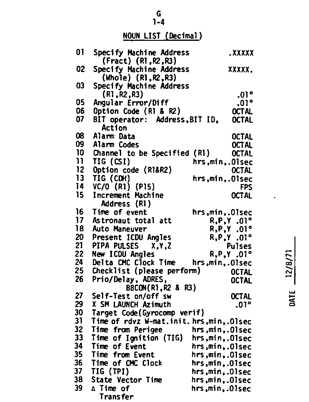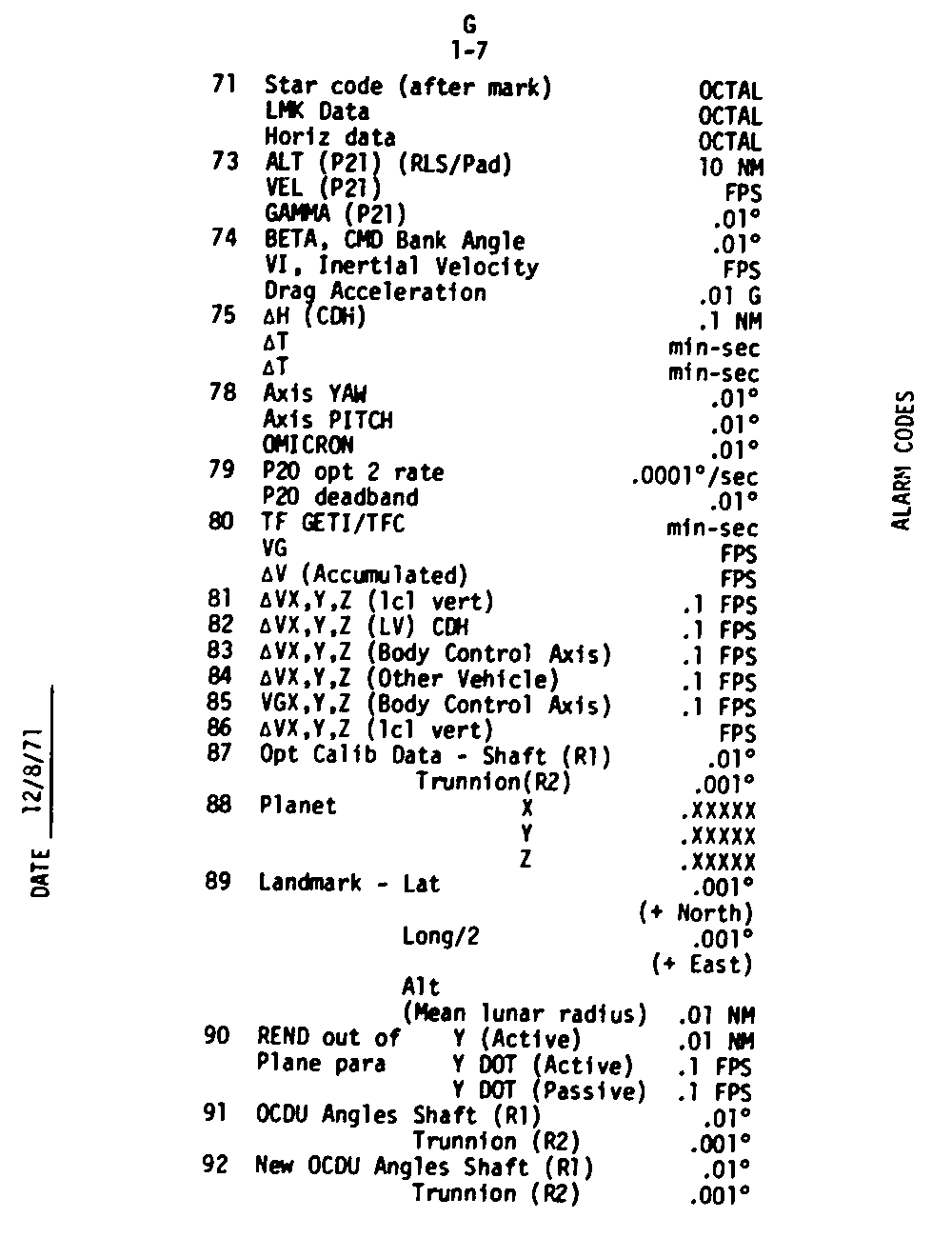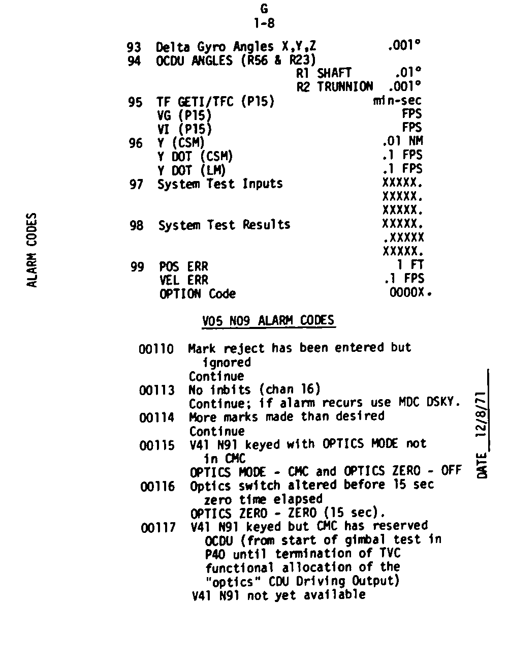 Page G1-8 Noun List 93 to 99, V05 N09 Alarm