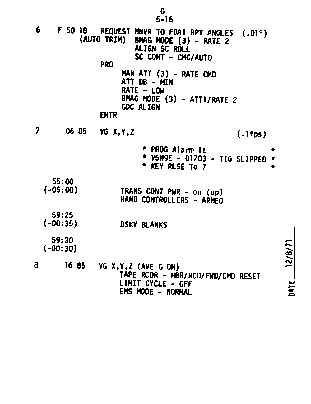 Apollo 16 - Guidance and Control Checklist