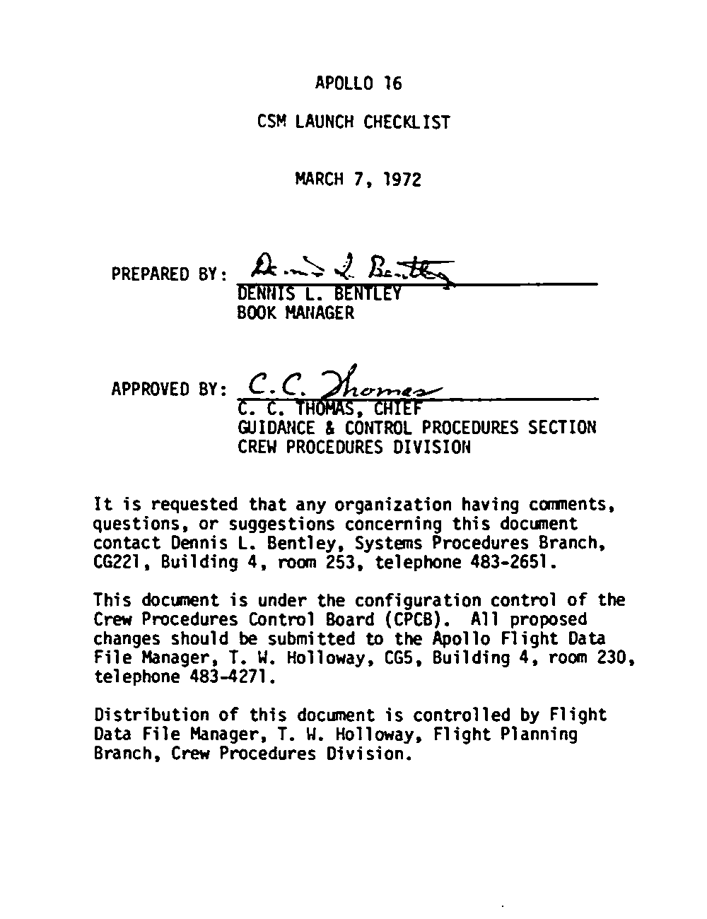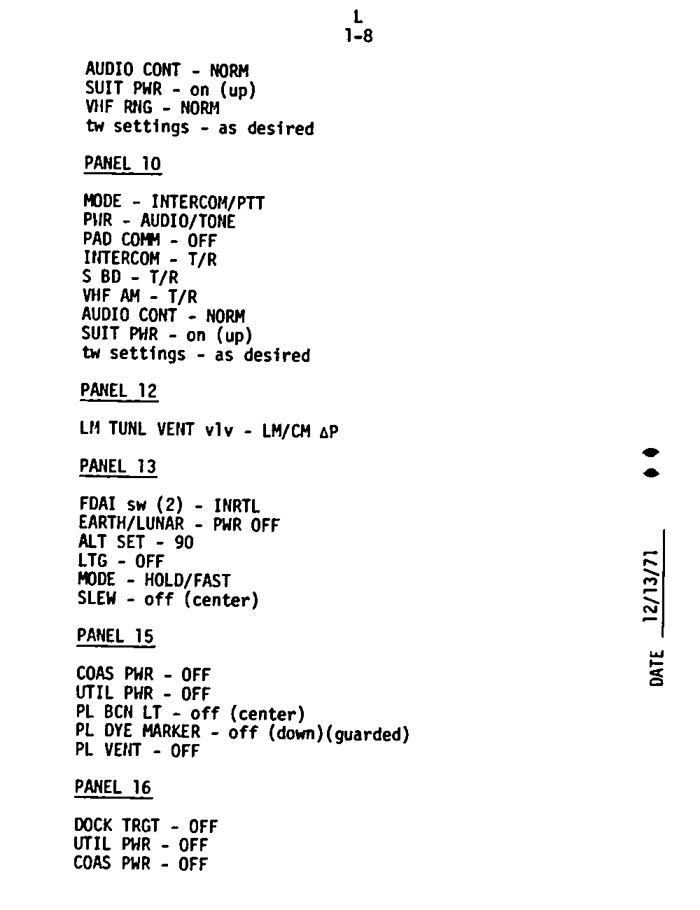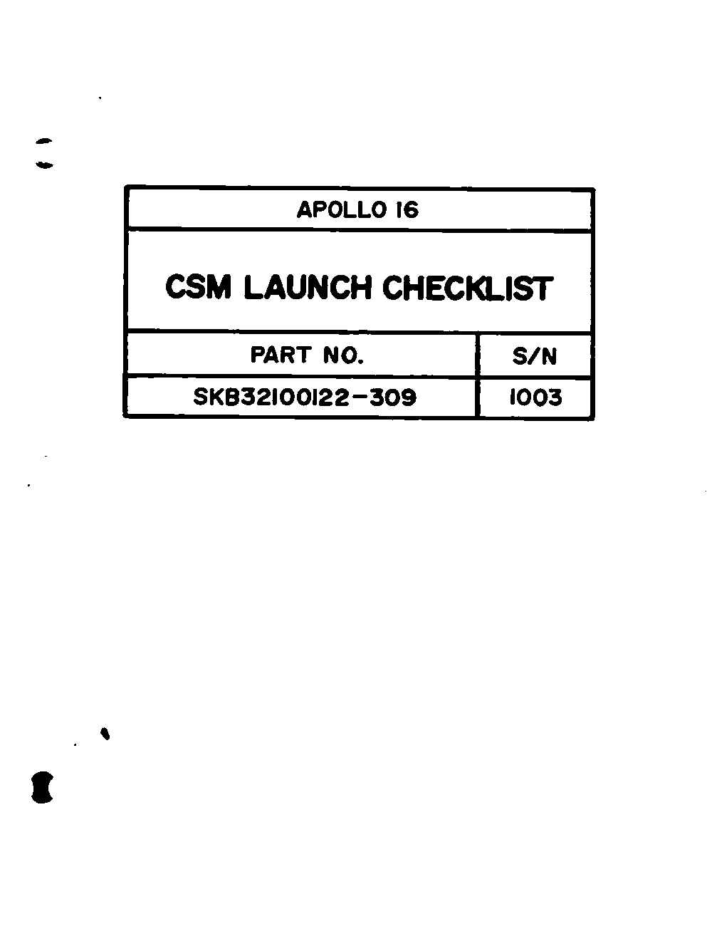The Checklists are derived from Volume 2 of the Apollo Operations