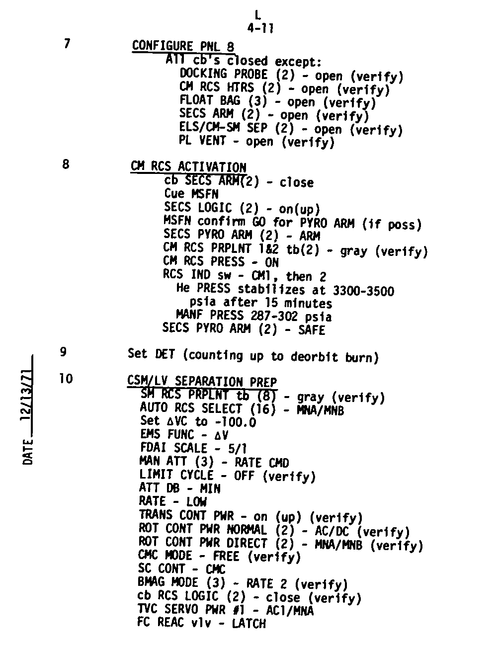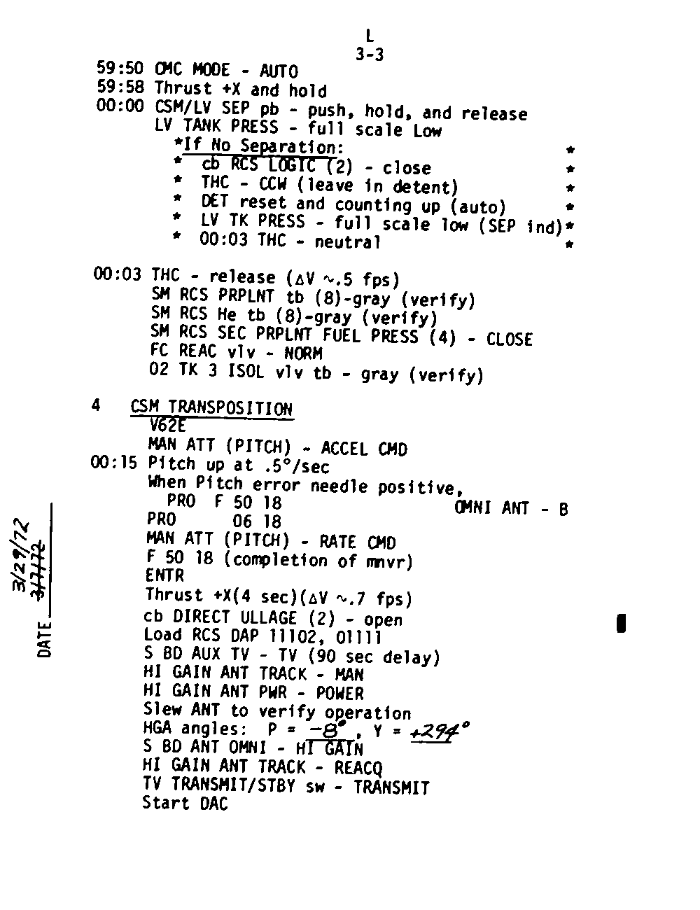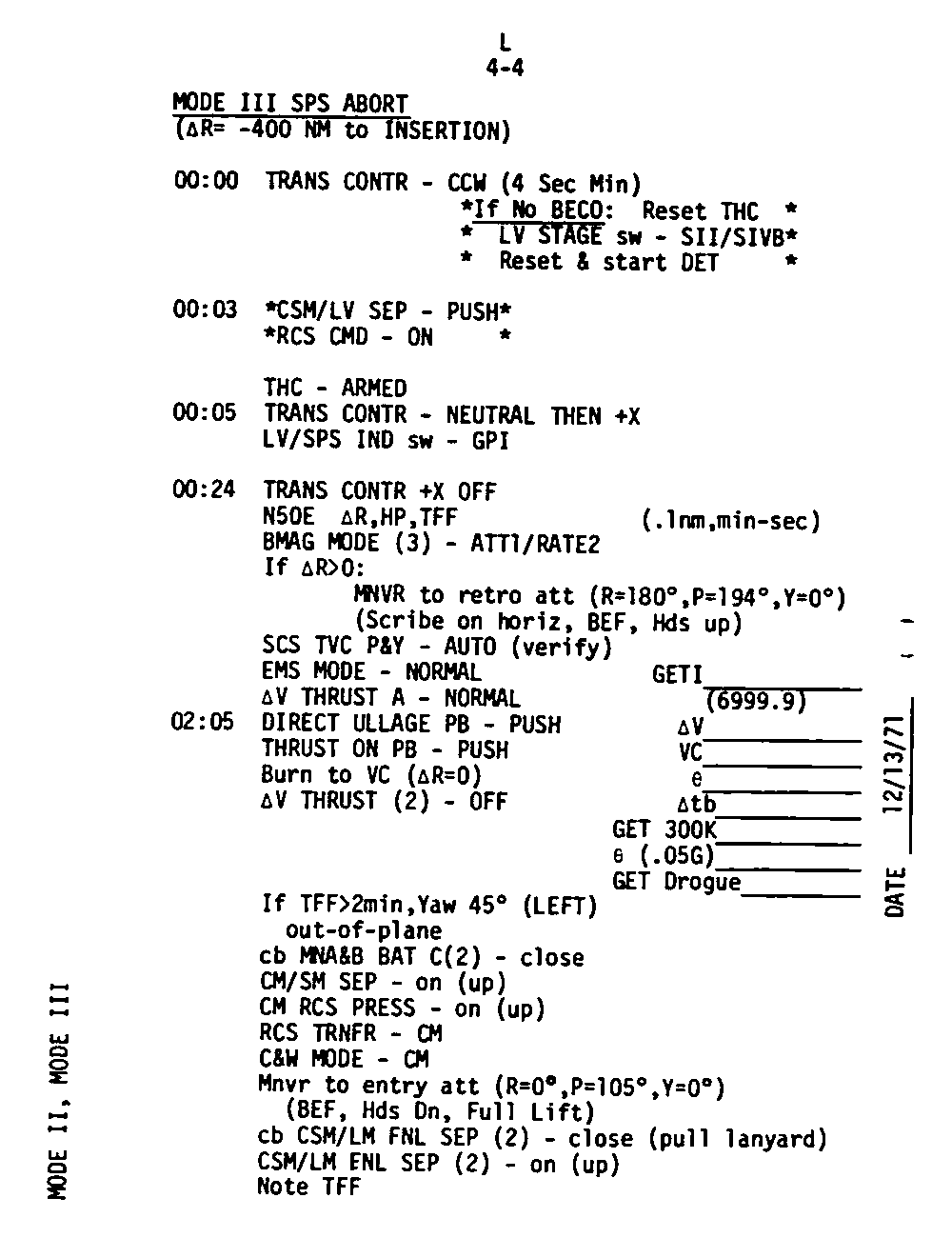 The Checklists are derived from Volume 2 of the Apollo Operations