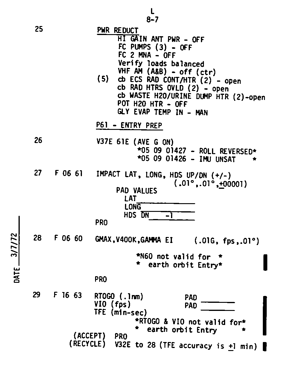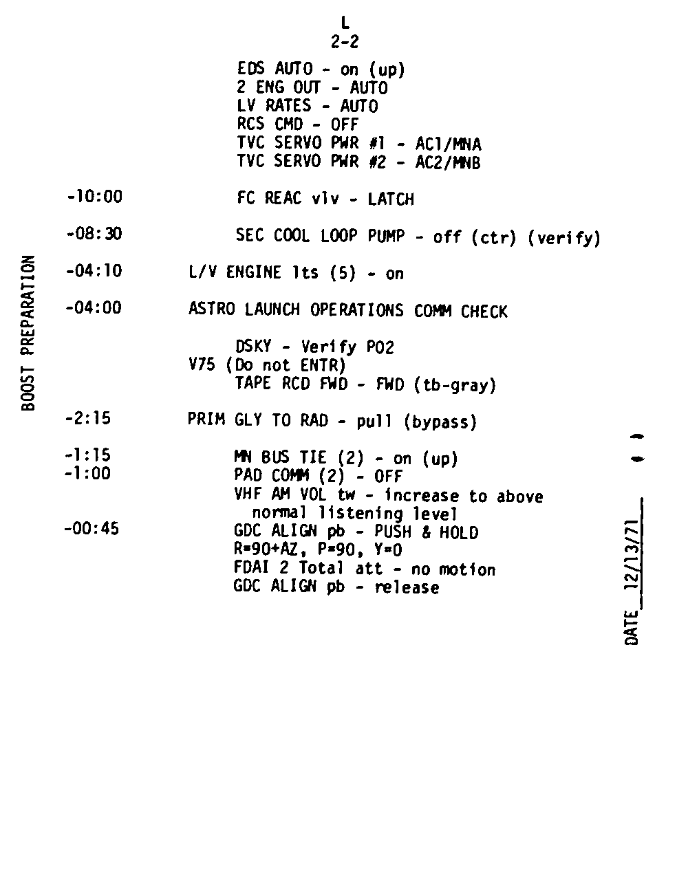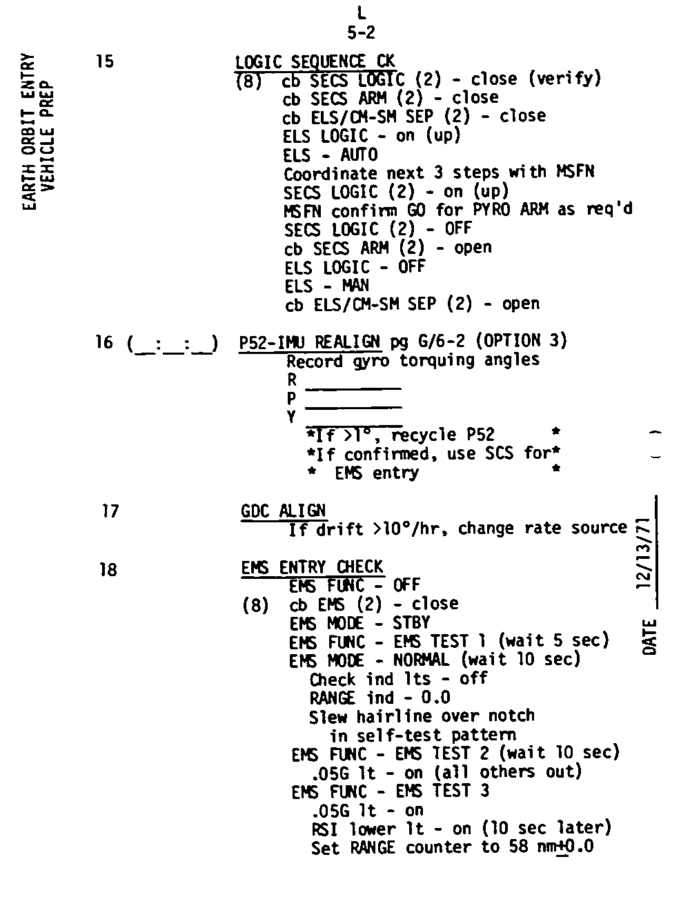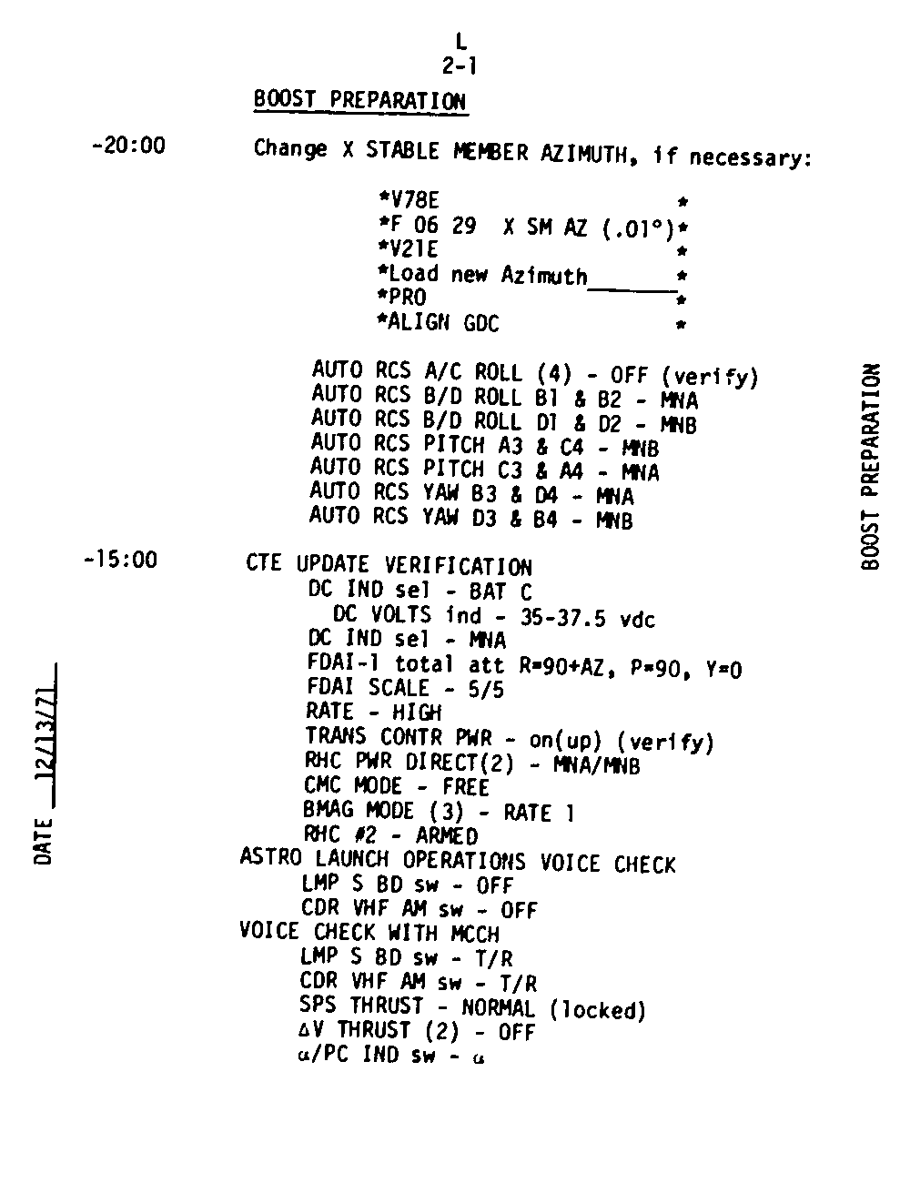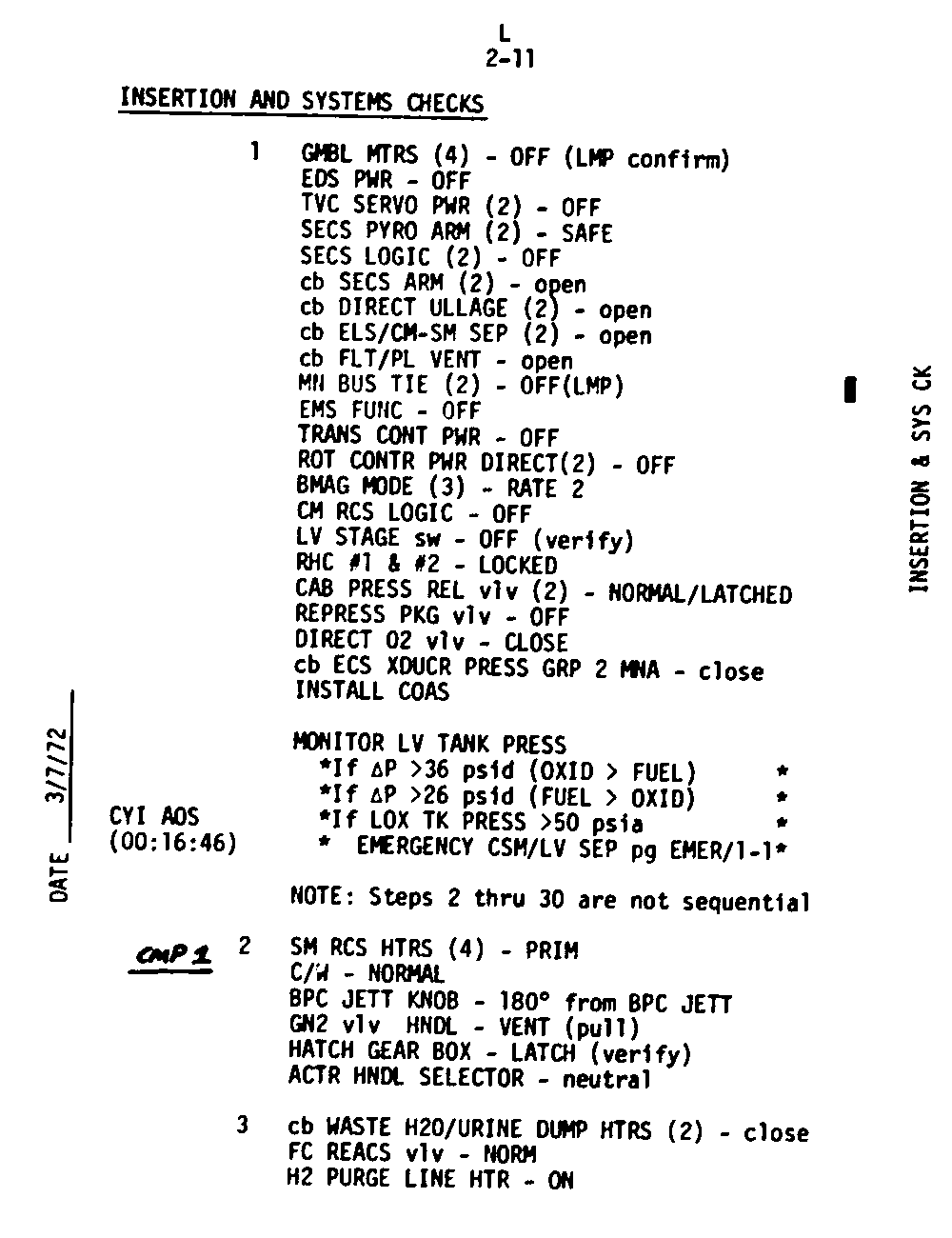 checklists in aircraft, the Apollo Checklists are intended as memmory