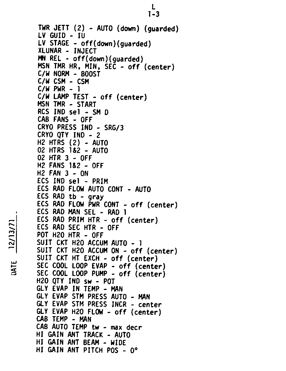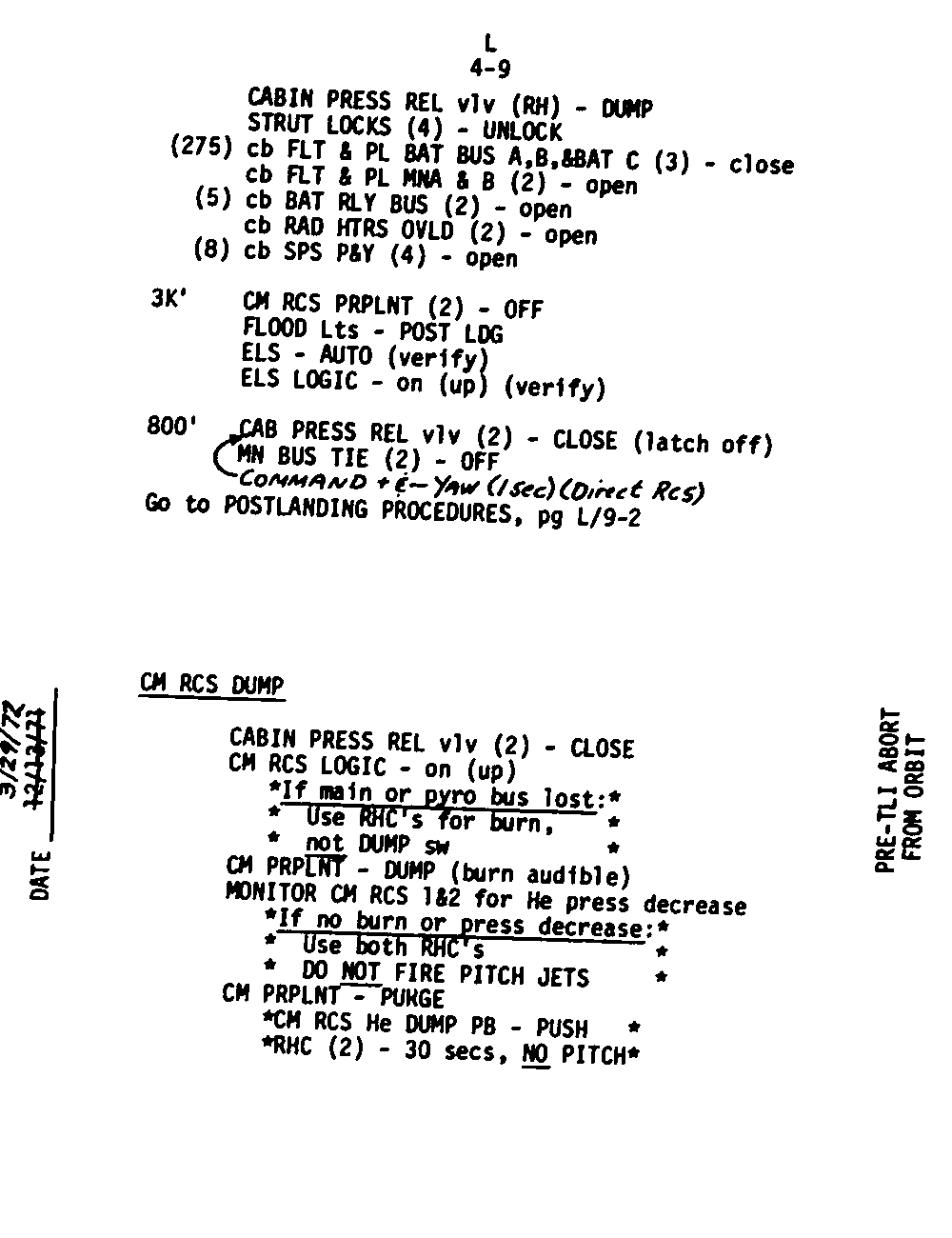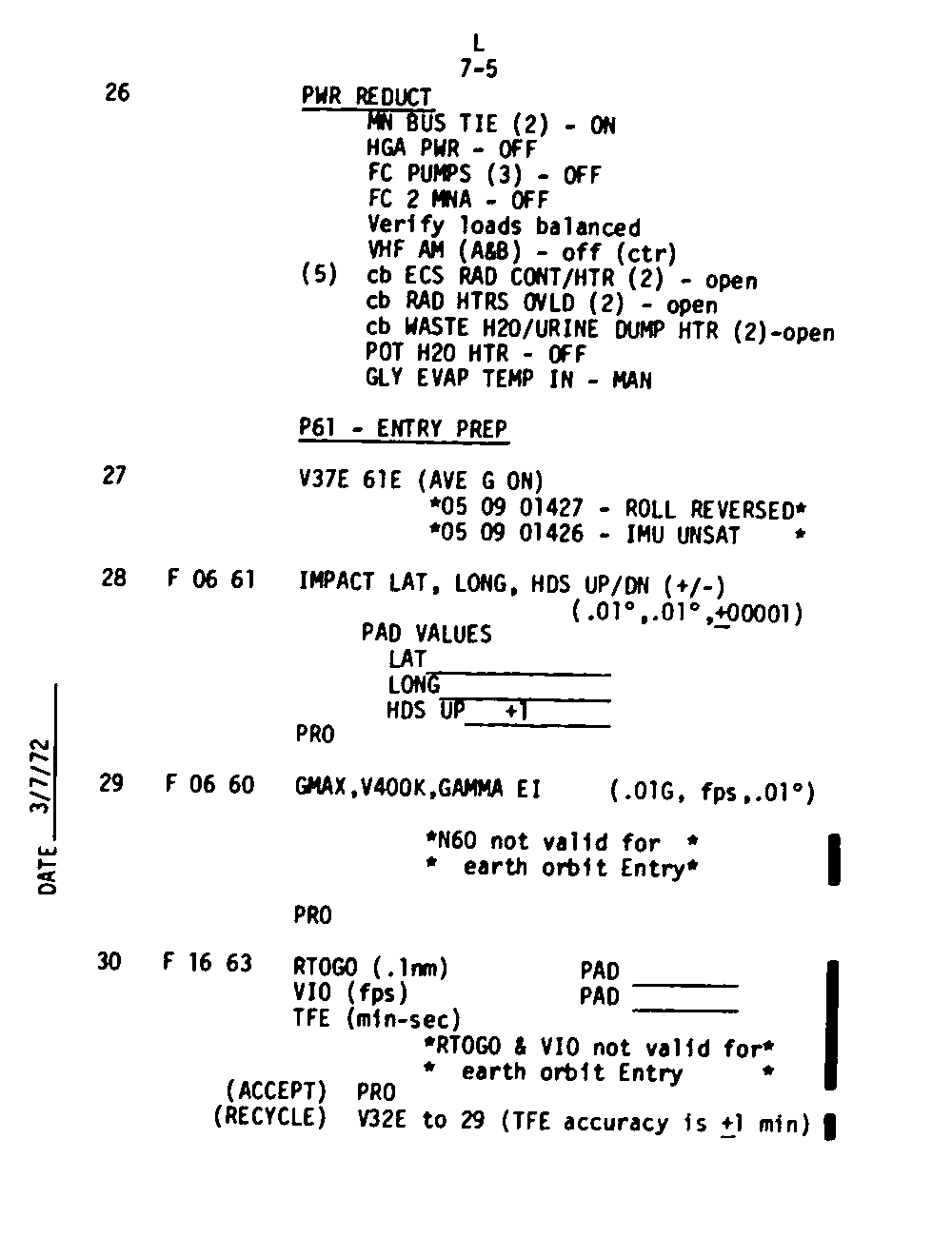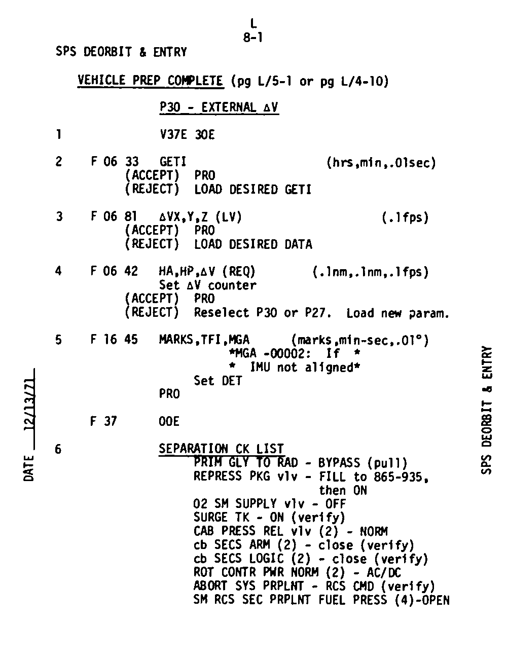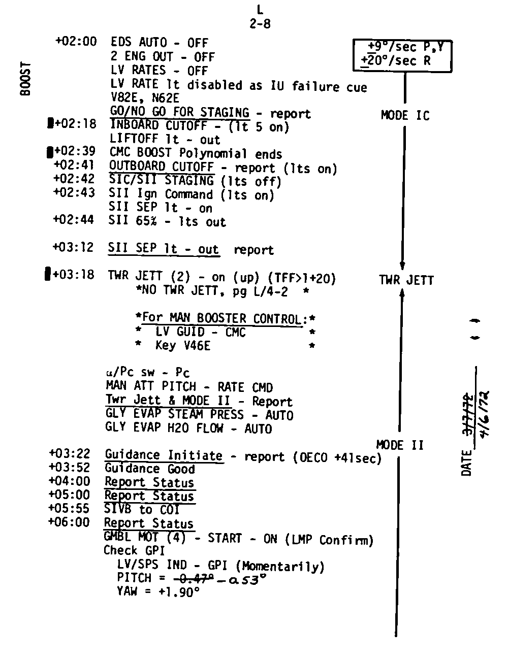 checklists in aircraft, the Apollo Checklists are intended as memmory