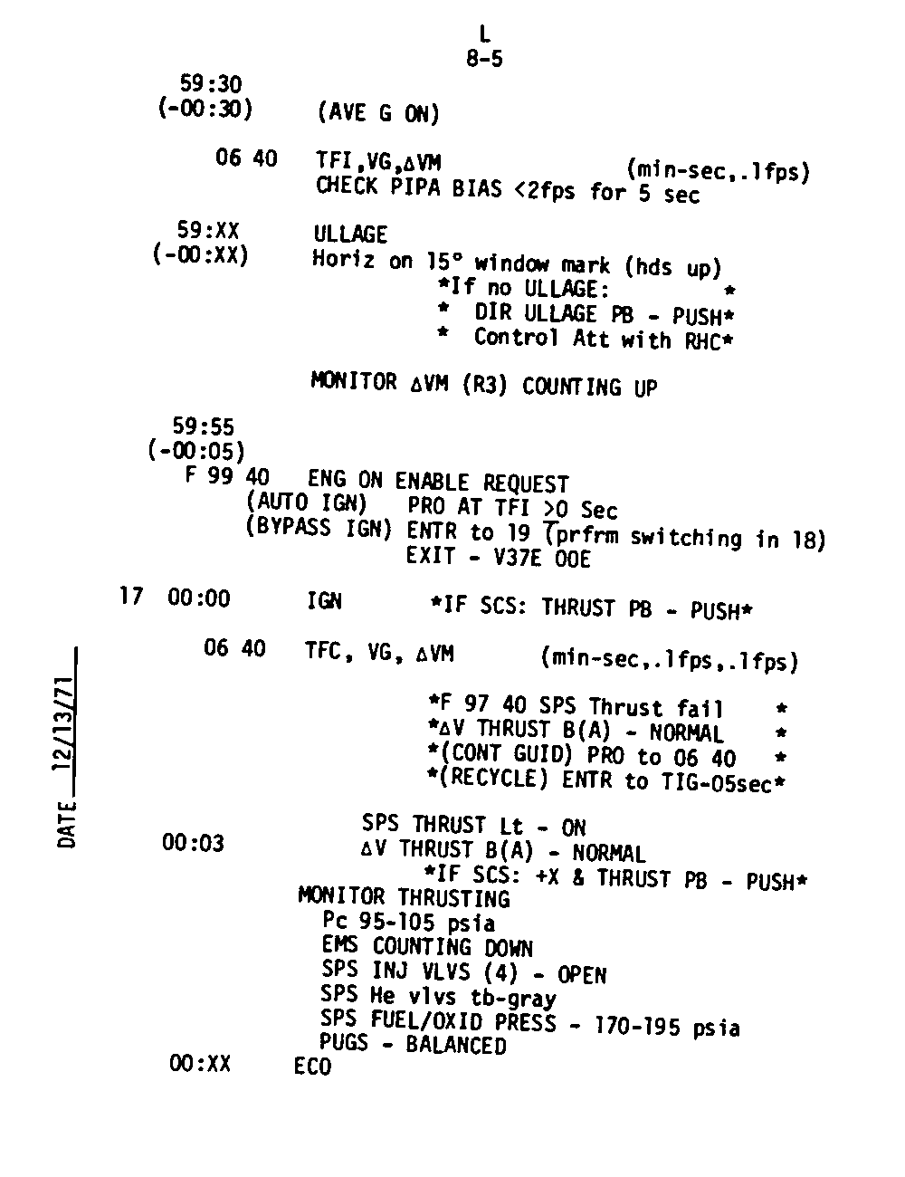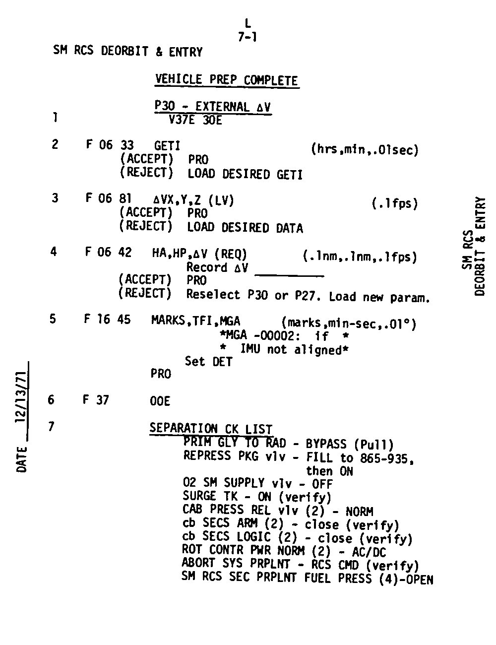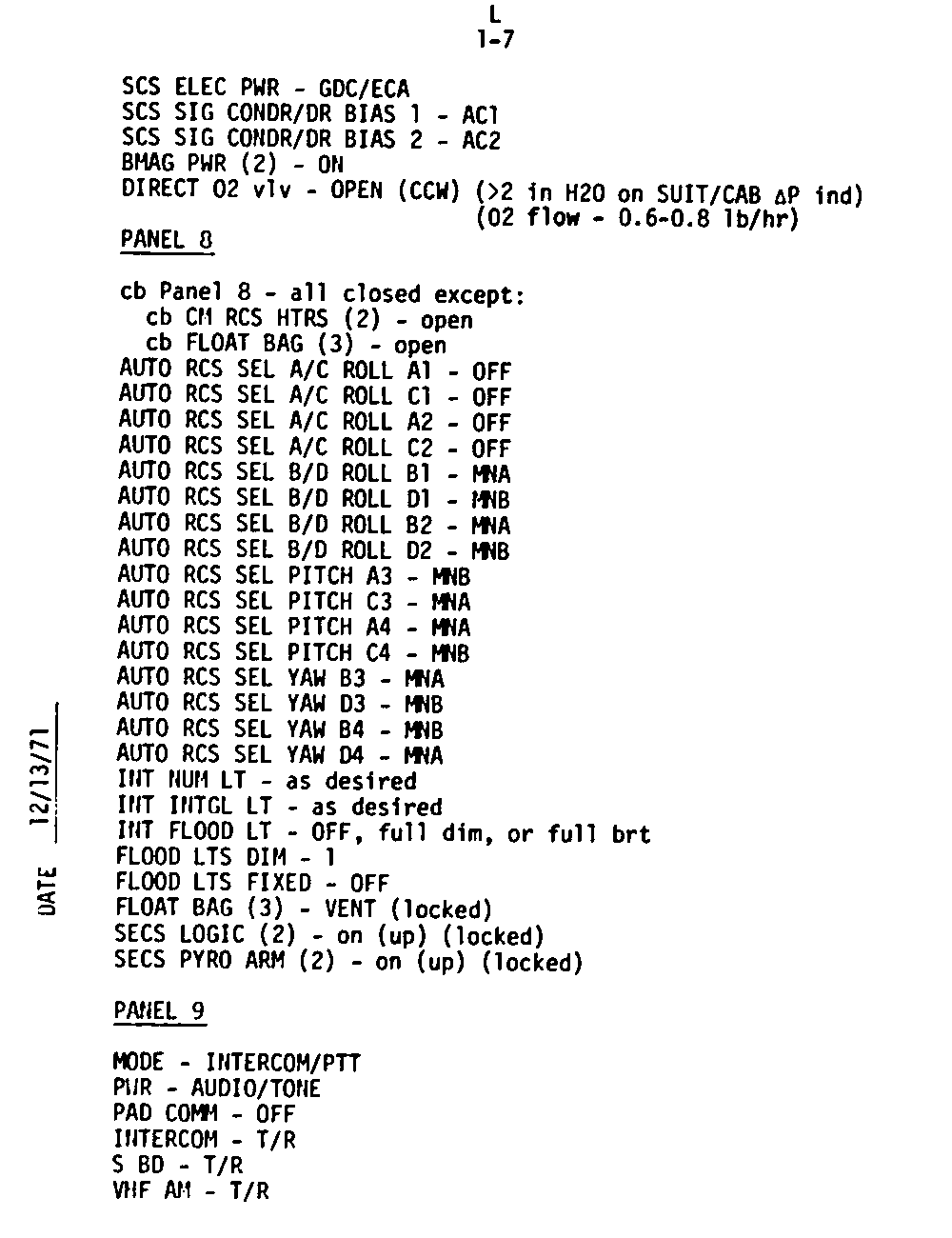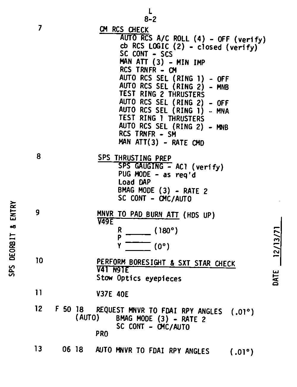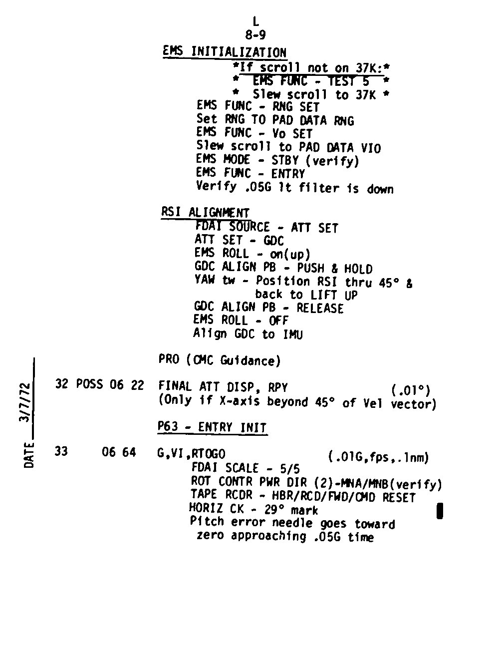 checklists in aircraft, the Apollo Checklists are intended as memmory