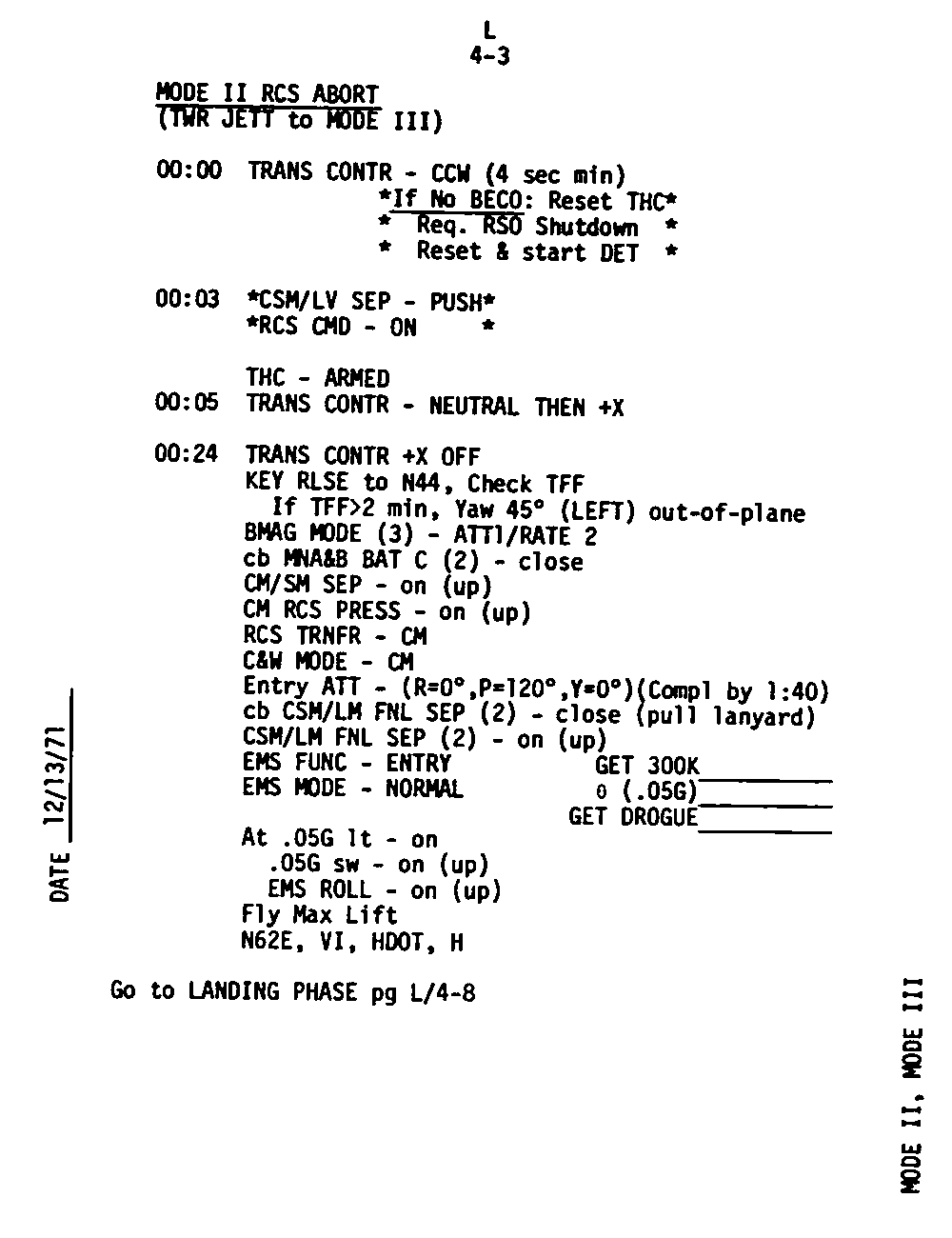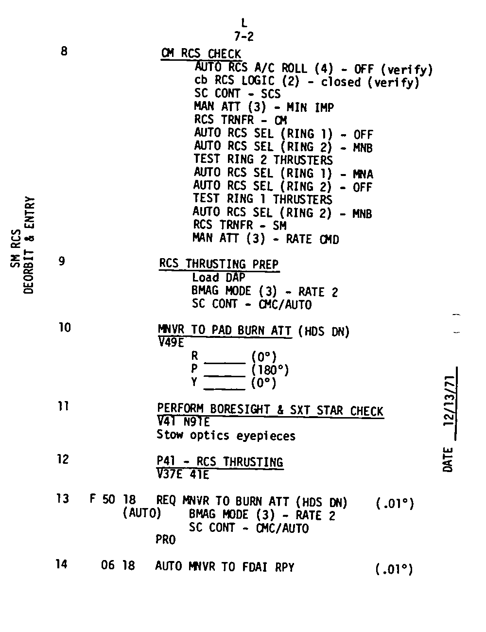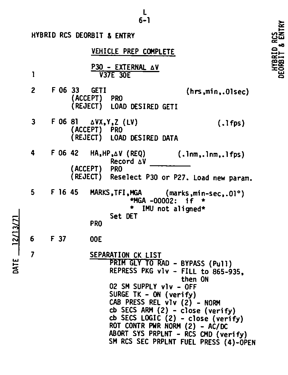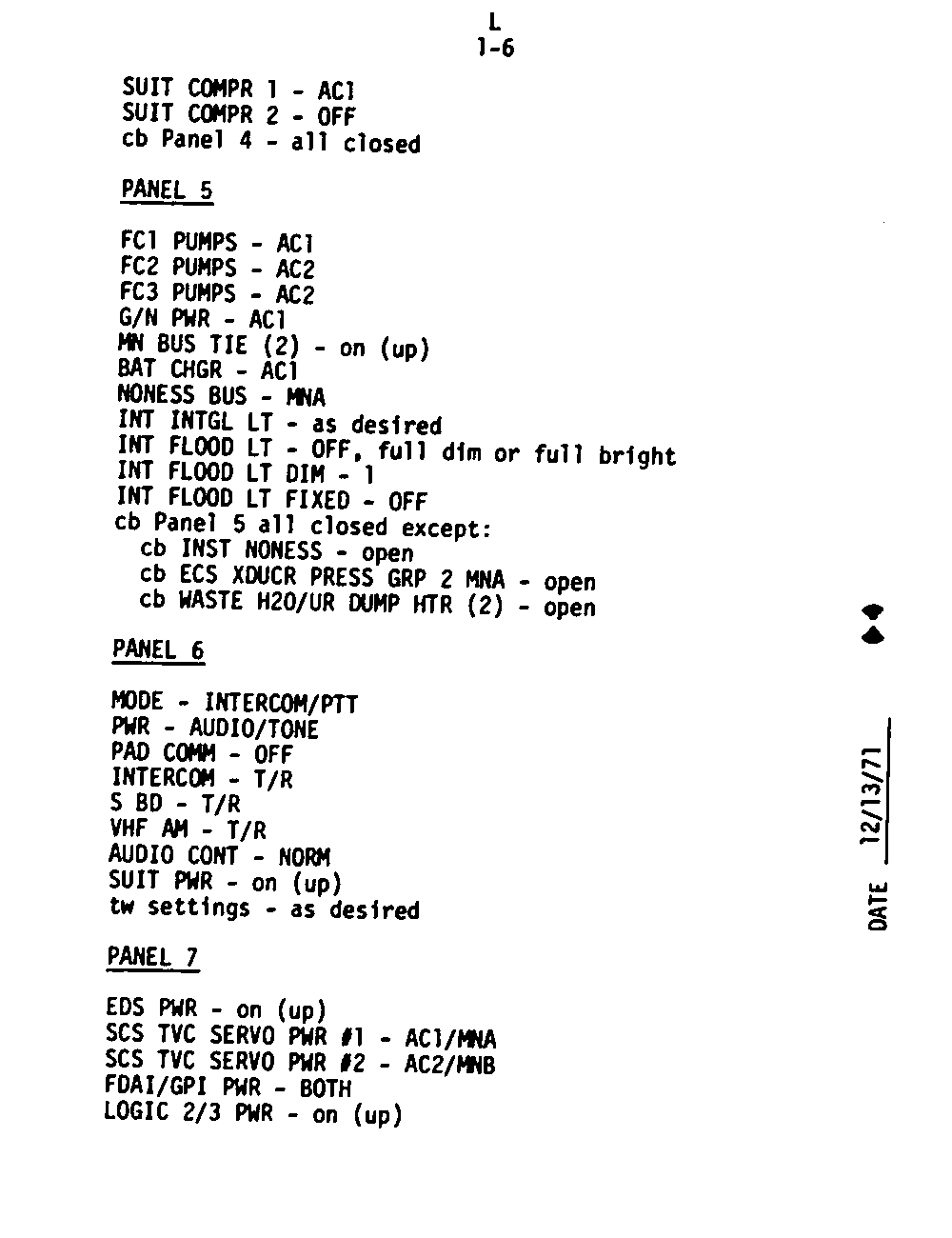 checklists in aircraft, the Apollo Checklists are intended as memmory