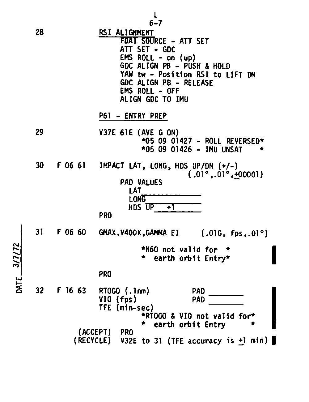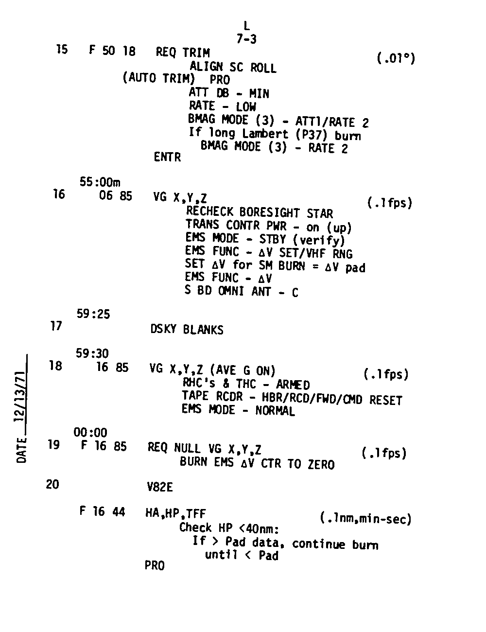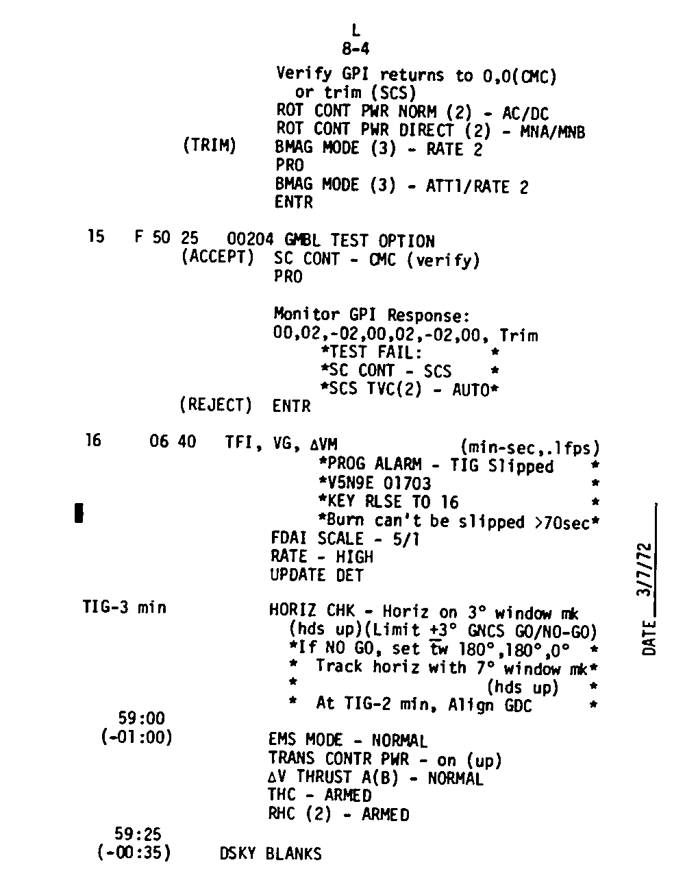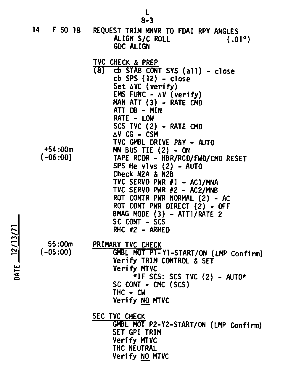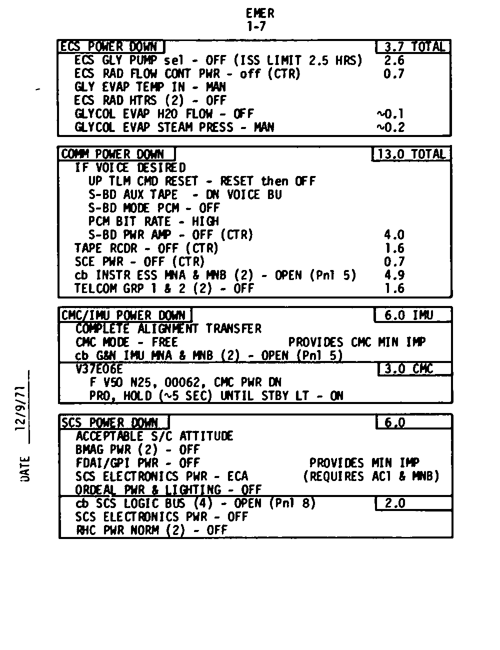 checklists in aircraft, the Apollo Checklists are intended as memmory