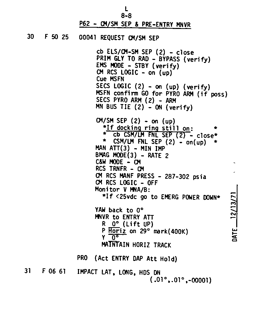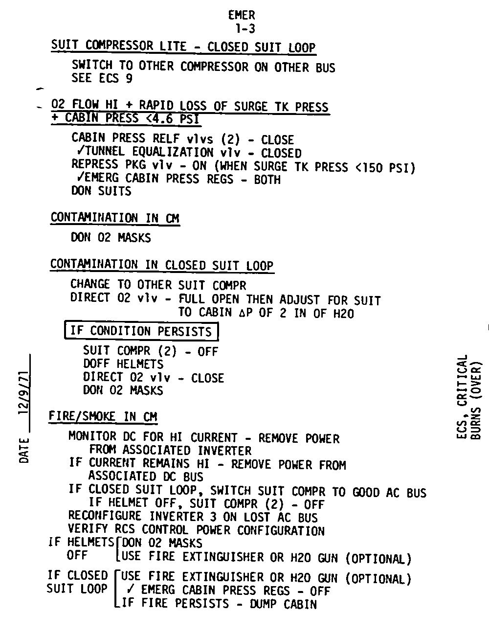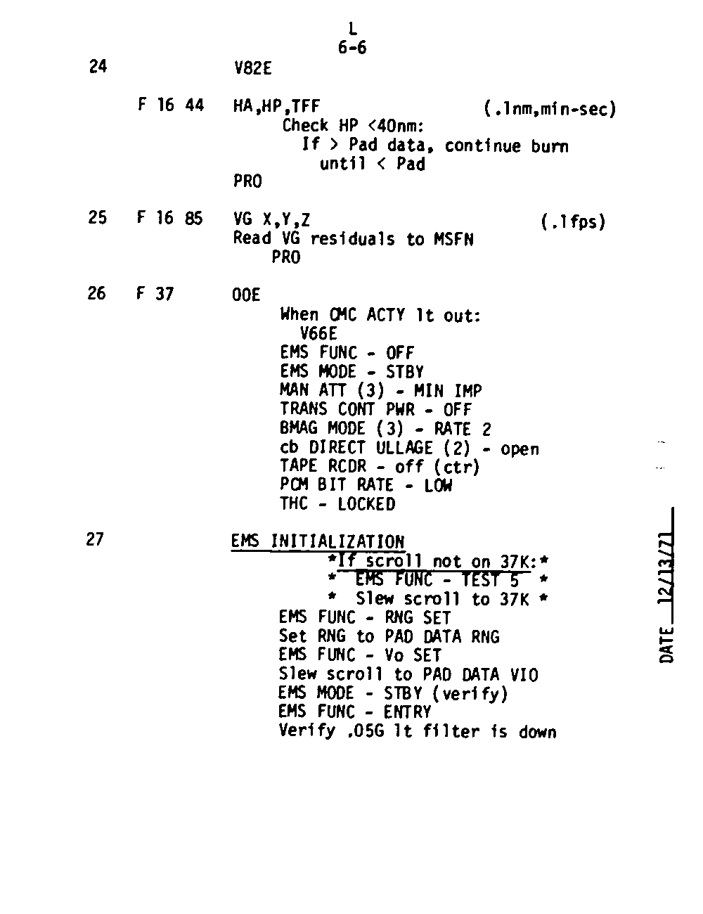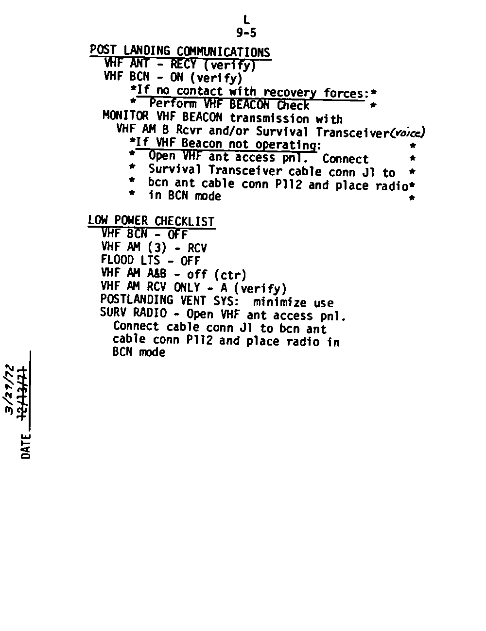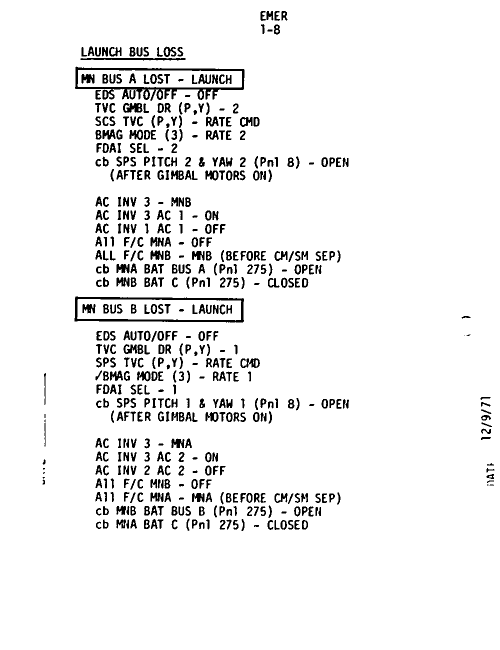 checklists in aircraft, the Apollo Checklists are intended as memmory