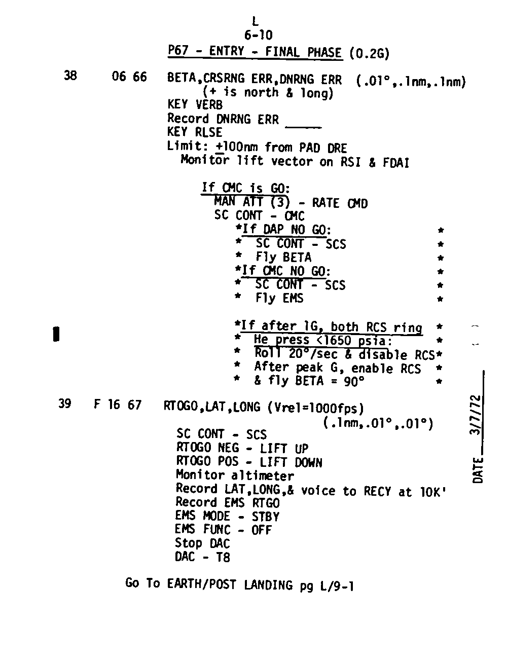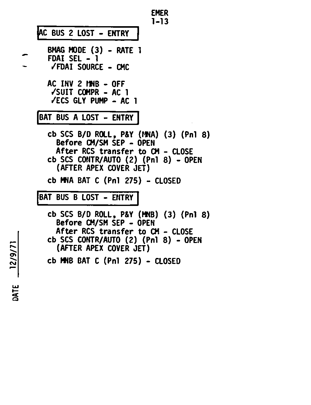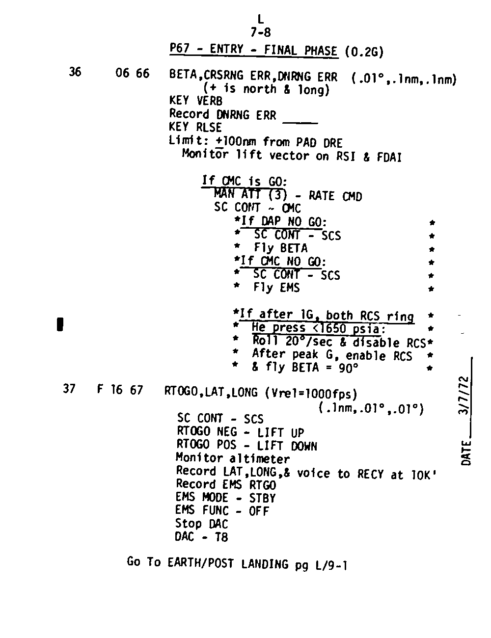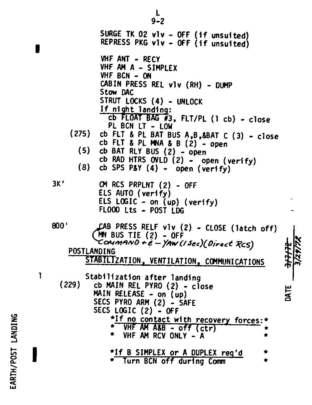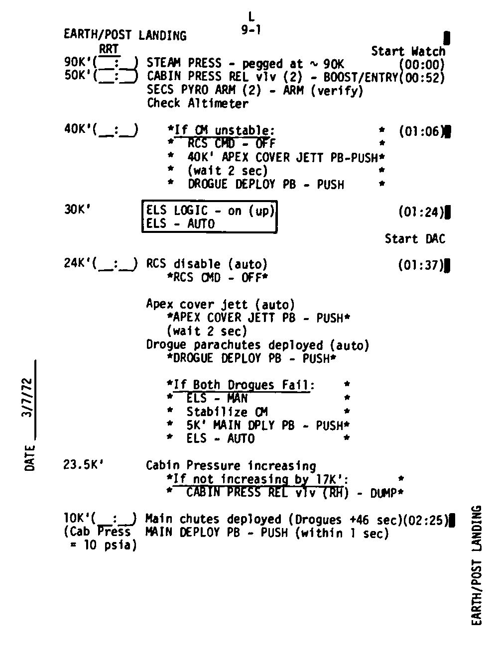 checklists in aircraft, the Apollo Checklists are intended as memmory