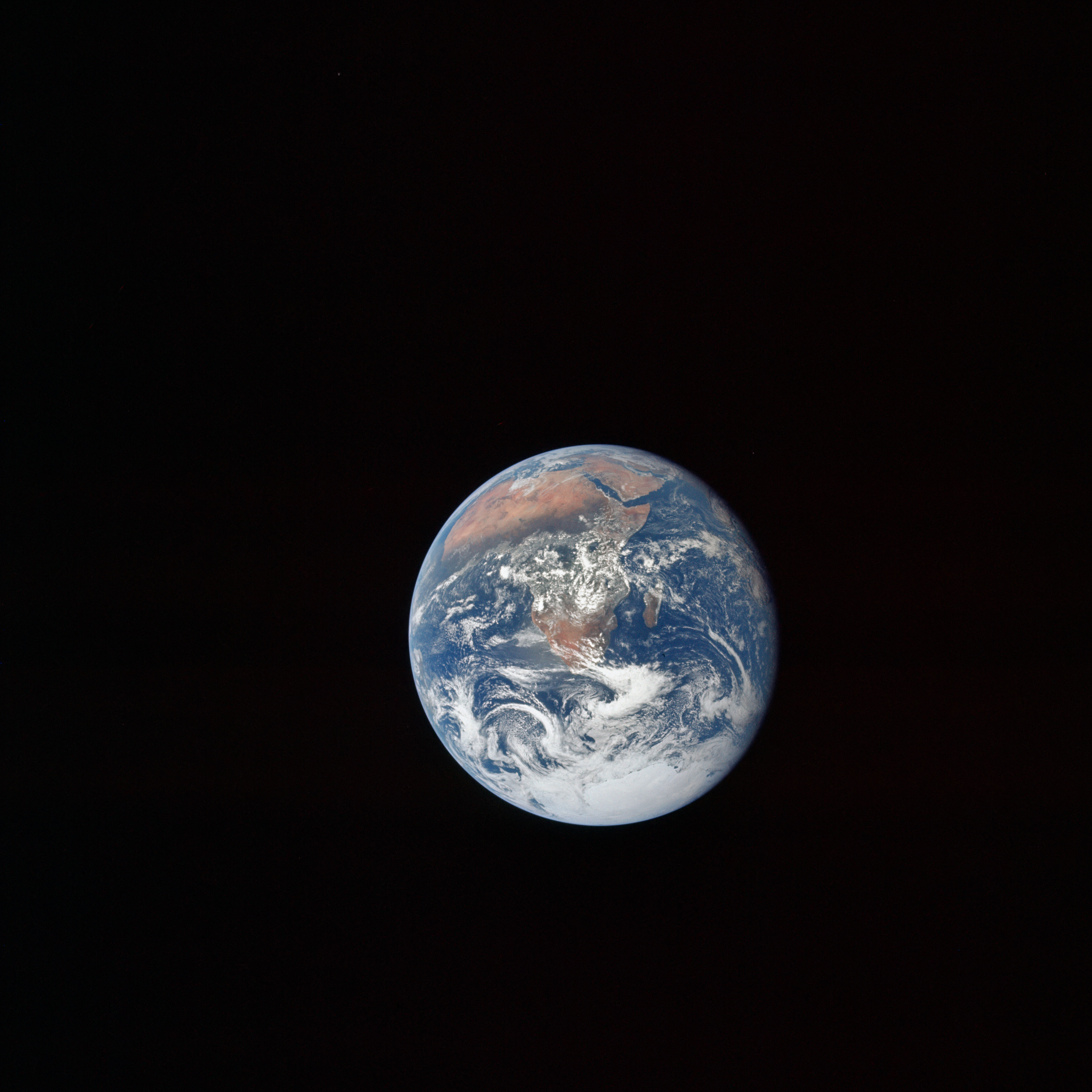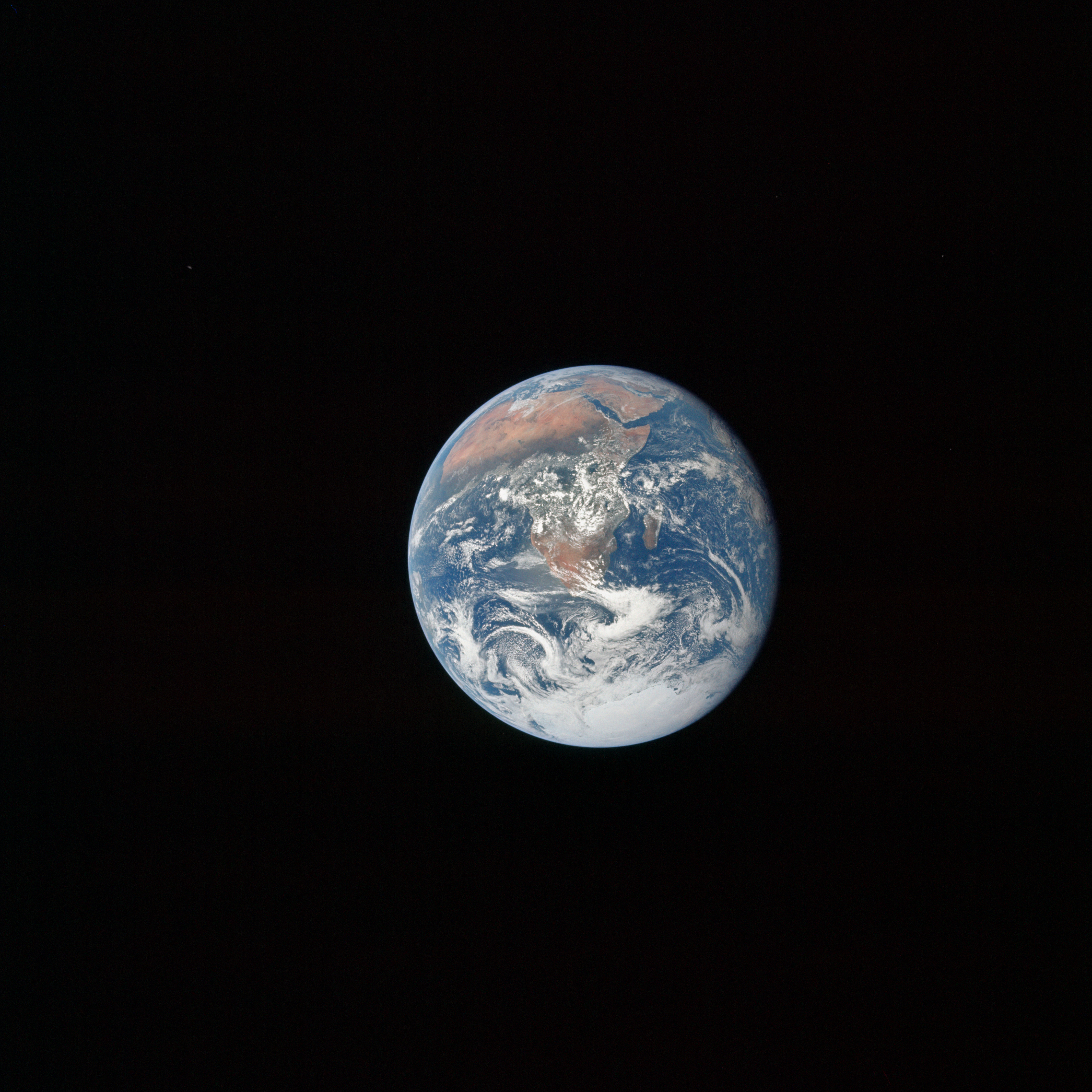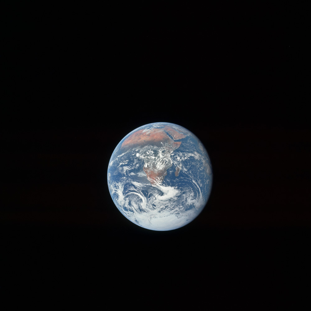 005:49:50 Schmitt: Oh, yes. We got some pictures earlier. I'm going to get another one here in a minute. I'll tell you, if there ever was a fragile-appearing piece of blue in space, it's the Earth right now.
