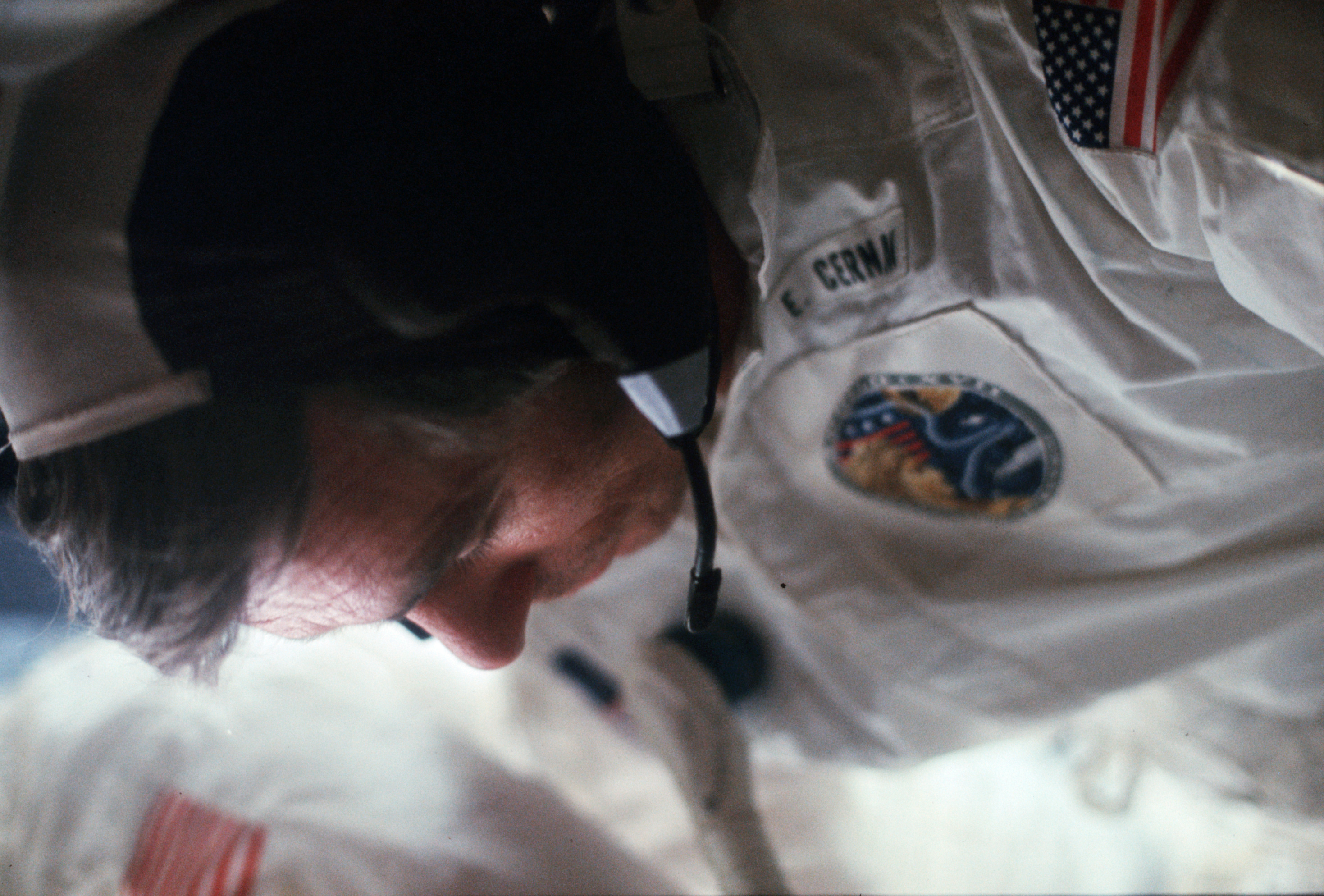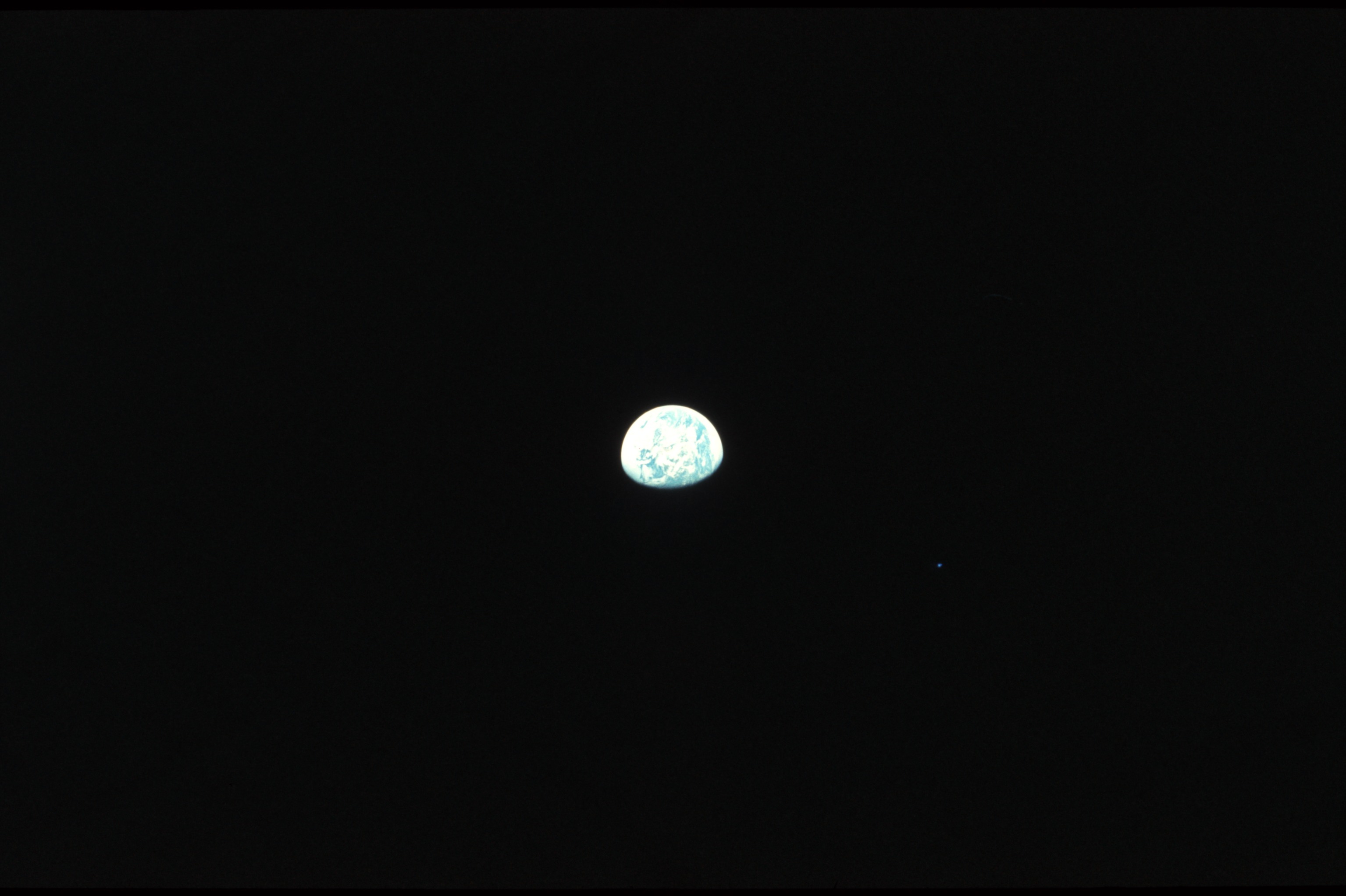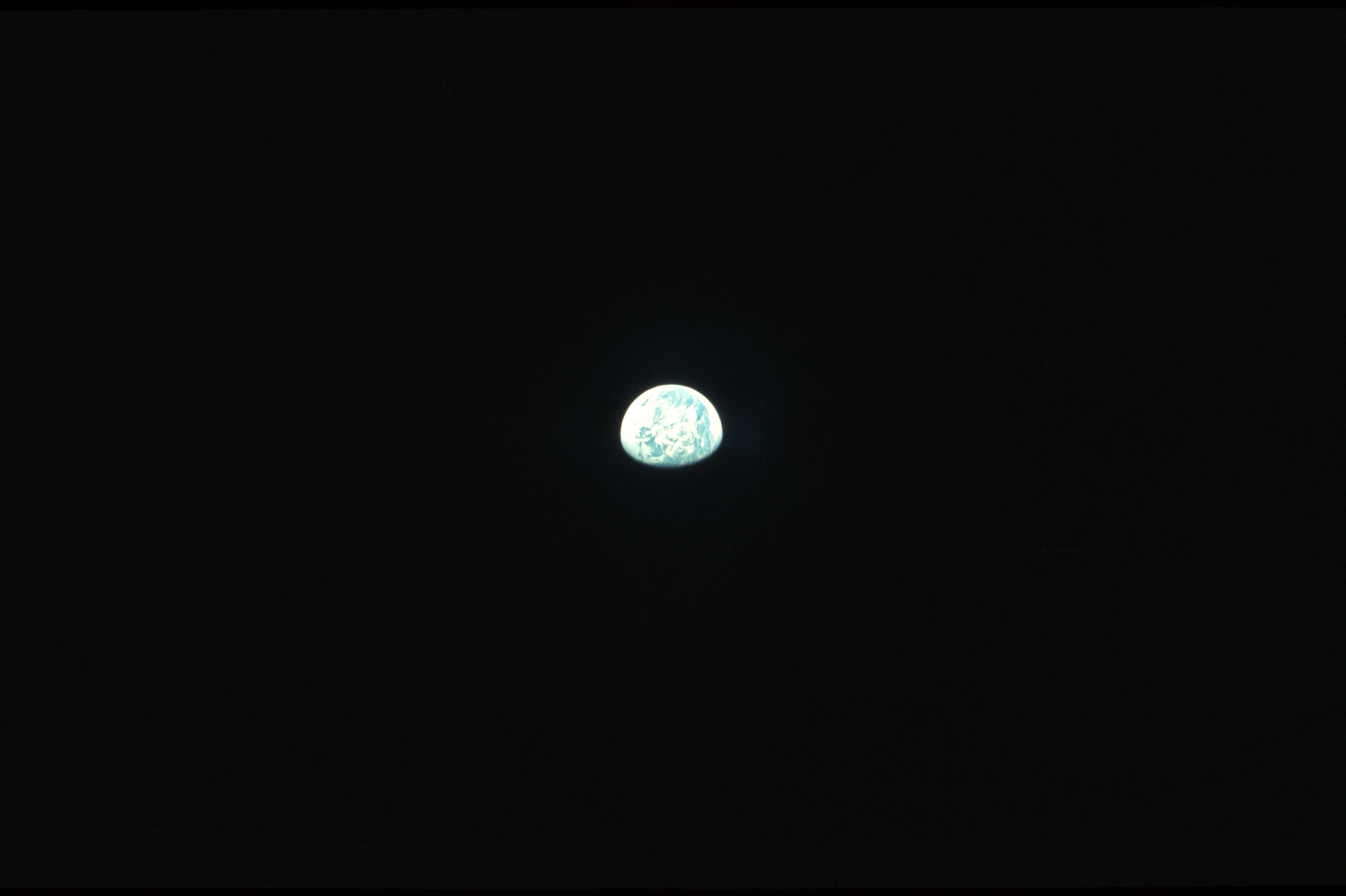 034:29:28 Schmitt: Gordy, film update on mag November November. I'm on frame 138, and that includes a couple of pictures I mentioned to Bob I took just before I went to sleep. And also, two pictures this morning at about 33:30. Those are the Earth.