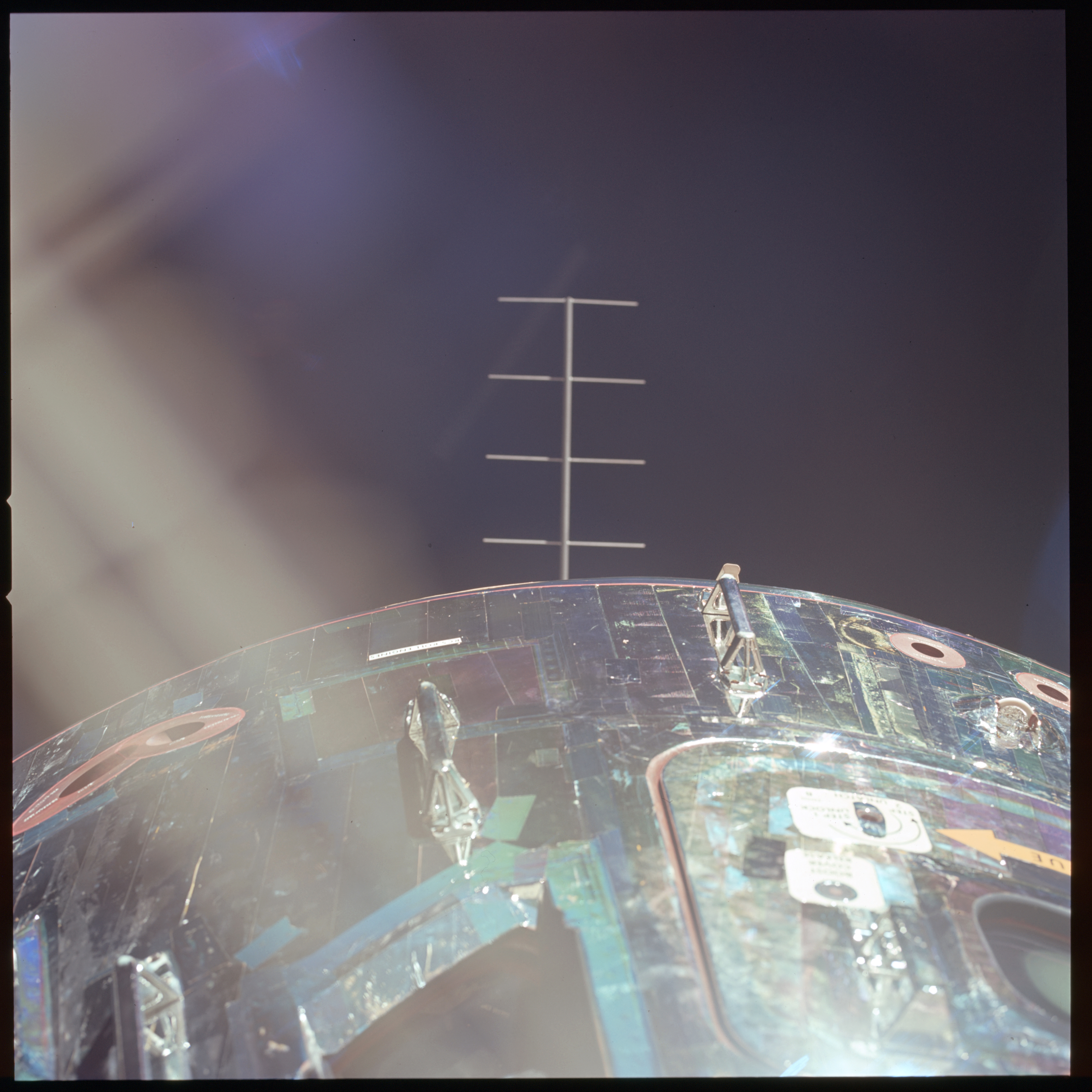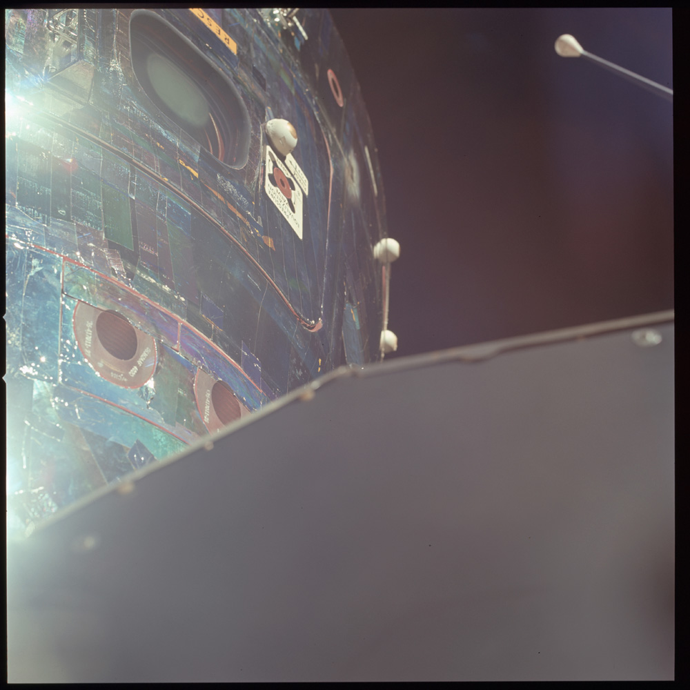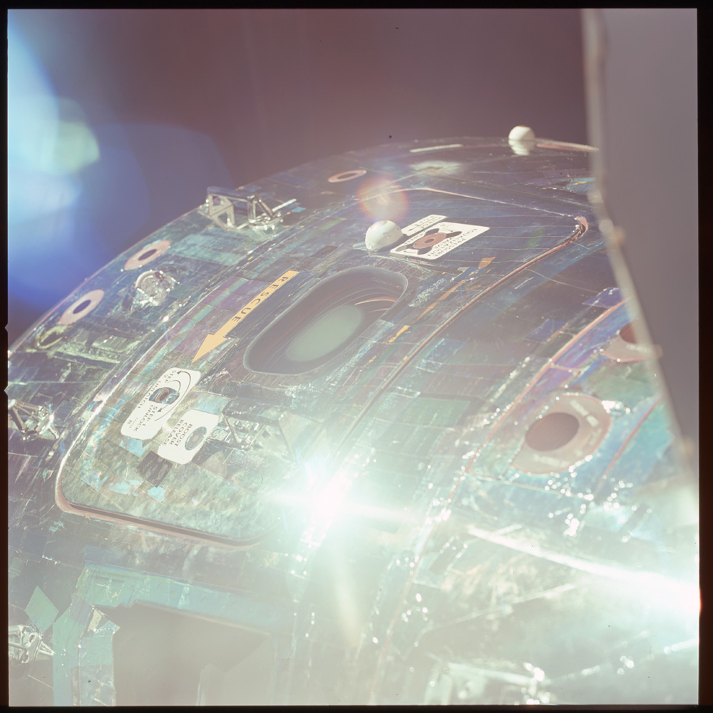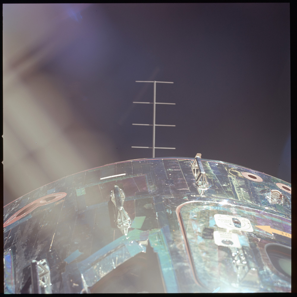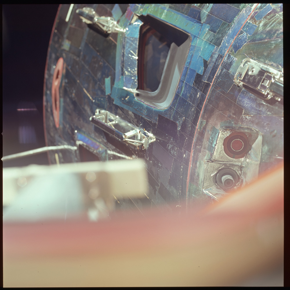 Later today, the crew will open the LM up again and give it another health check. At the end of yesterday's foray into the lander, the Tunnel Vent Valve was left in its LM/CSM Delta-P position and therefore the tunnel and LM cabin were not being vented. The CSM cabin is being brought up to a higher pressure so that its air can be used top up the LM cabin and compensate for any overnight leakage. Apollo spacecraft were not designed to be completely leakproof. Instead, very minor leaks were tolerated as long as the overall flow of replacement oxygen from supply tanks was within set limits. The LM O2 supply is not being used just now and without constant topping up, it is expected that there would be a pressure drop in the LM. It will transpire at 059:25:59 that the LM's pressure drop is so low that raising the CSM's pressure will not be required.