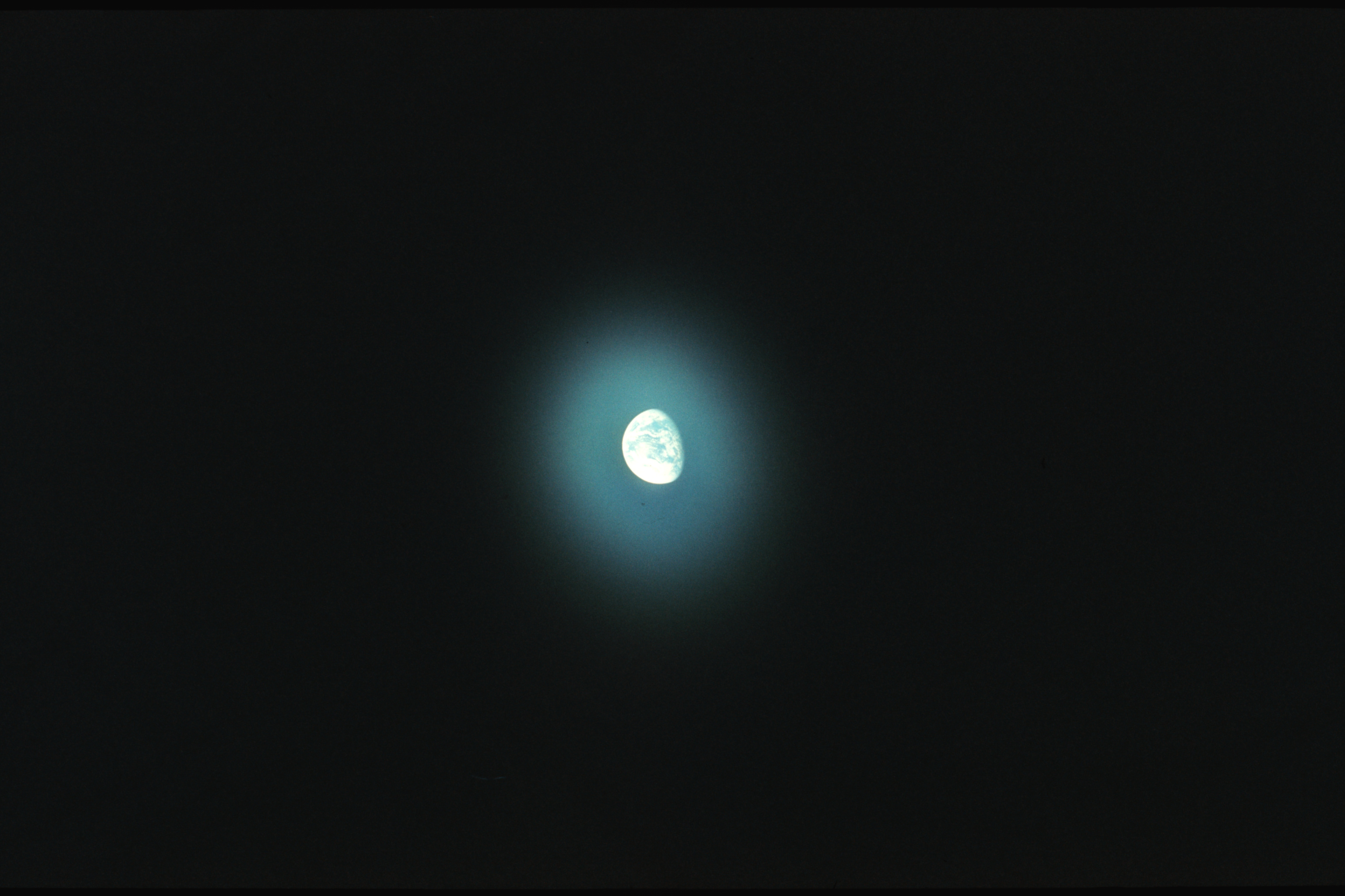 064:10:52 Schmitt: Gordy, in the continuing saga of looking at the Earth through rose-colored glasses, I tried a blue-colored glass, and it - as you might expect, completely masks out the continent. The land areas are just not visible through the blue. Otherwise, the ocean and clouds - or the contrasting ocean and clouds remains about the same.