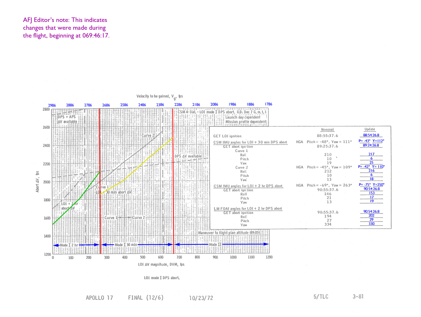 071:46:36 - This is Apollo Control at 71 hours, 46 minutes. Weather reporter, Schmitt, is 188,524 nautical miles [349,146 km] from Earth and the spacecraft from which he is observing is traveling at a speed of 2,392 feet per second [729 m/s].