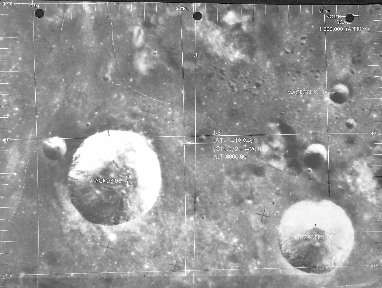 Page from the CSM Lunar Landmark Maps showing the location of the J-3 landmark north od Carmichael. North is to the right.