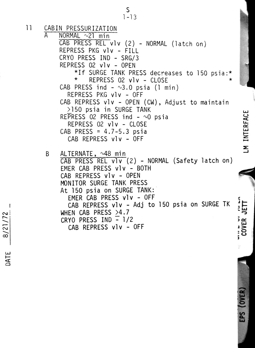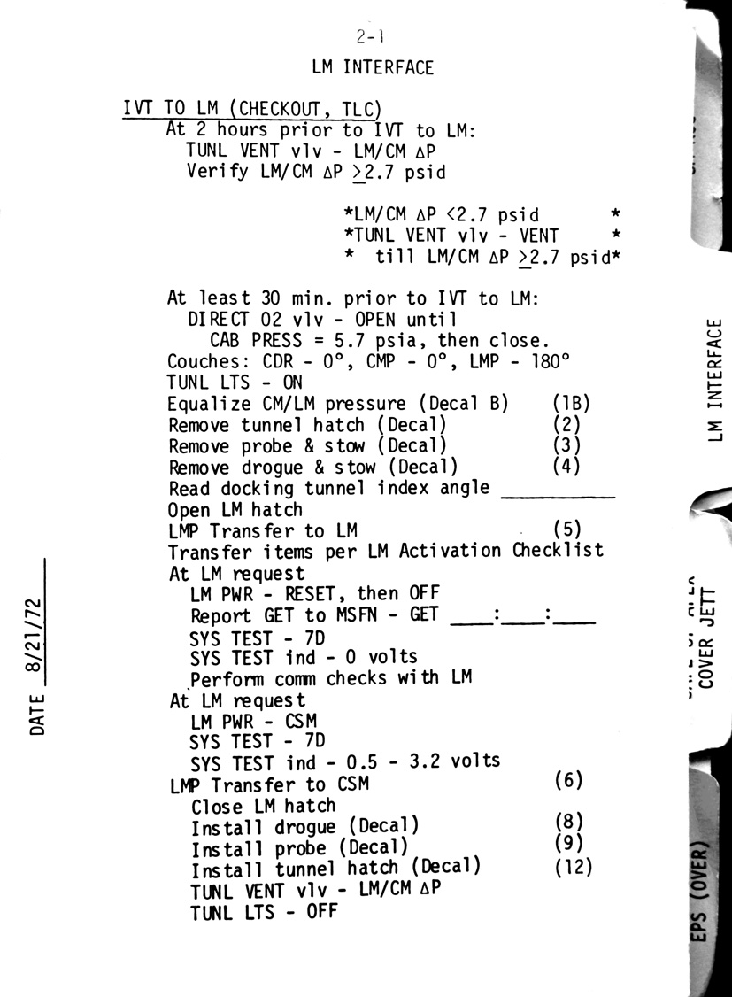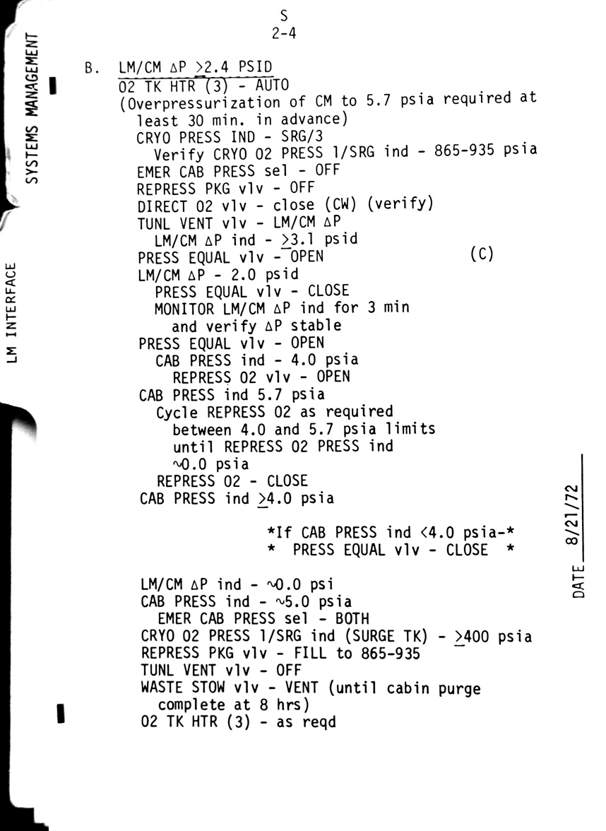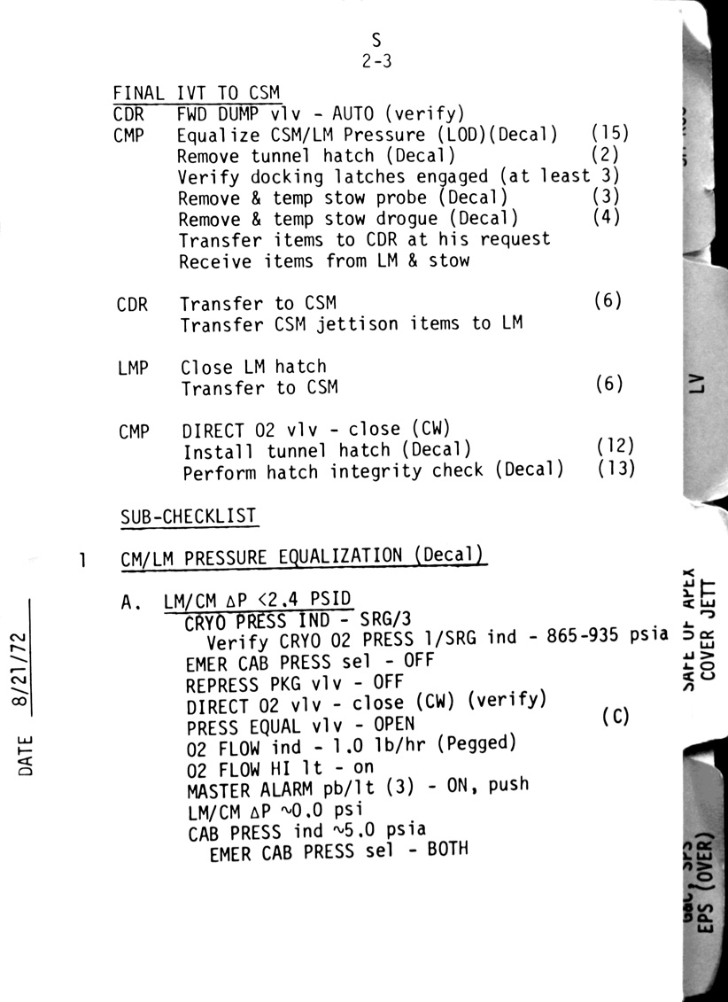 - 2-03 LM interface - Final IVT to CSM. Sub-checklist - CM/LM Pressure Equalisation