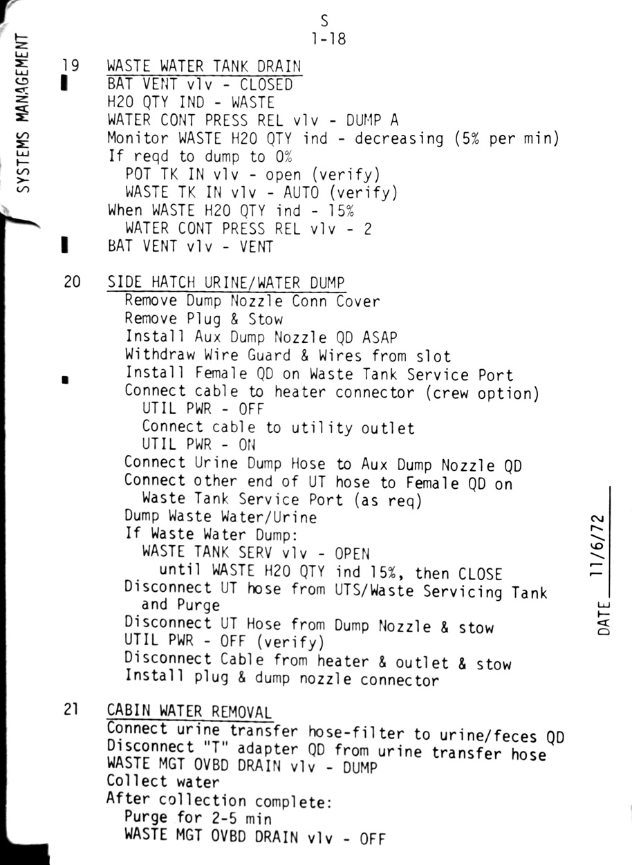 - 1-18 ECS - Waste water tank drain, Side hatch urine/Water dump, Cabin water removal