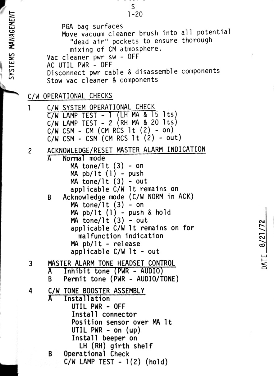- 1-20 Caution and warning operational checks