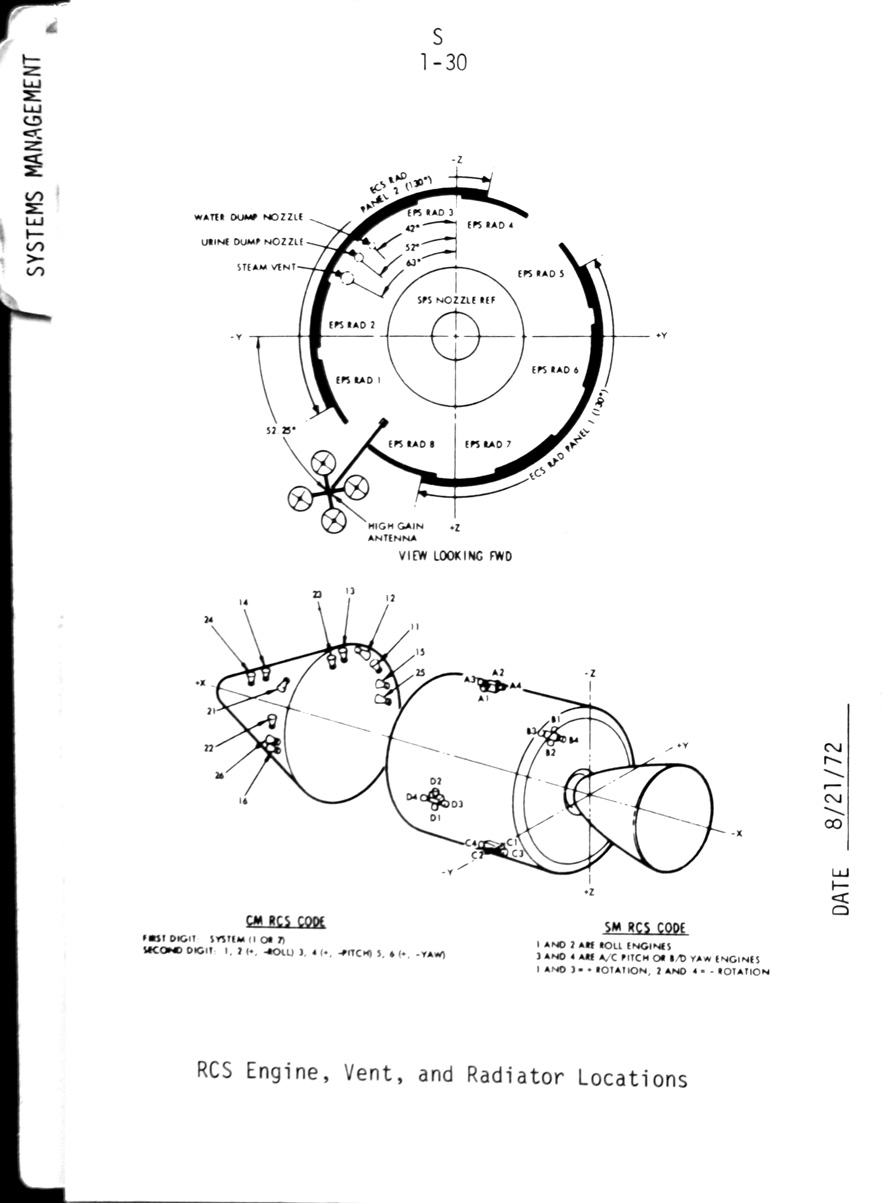 - 1-30 Diagram - RCS engine, vent and radiator locations
