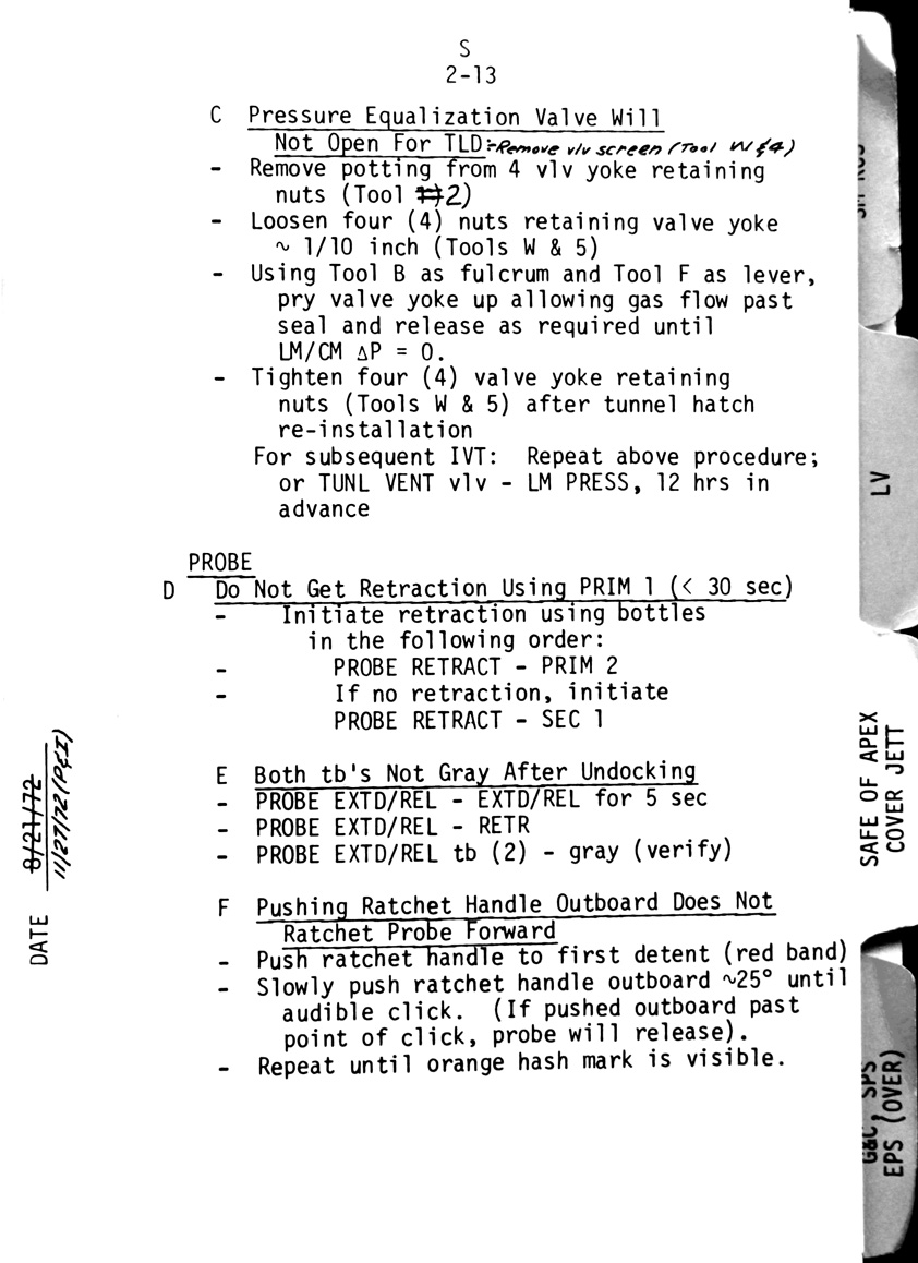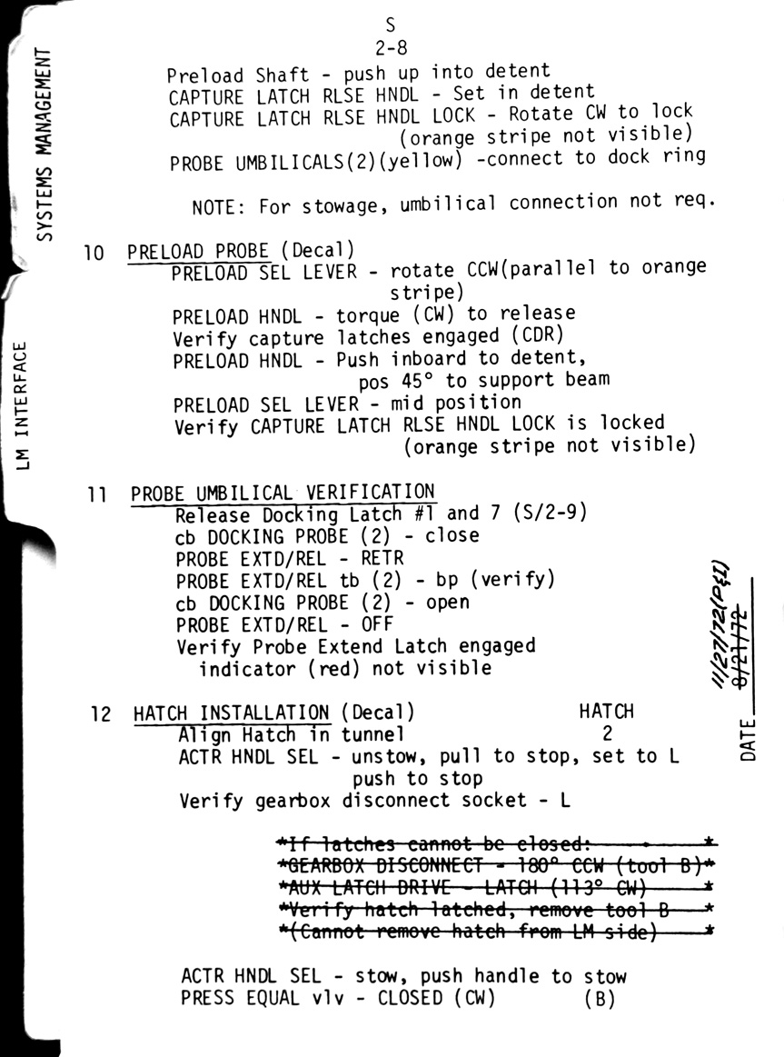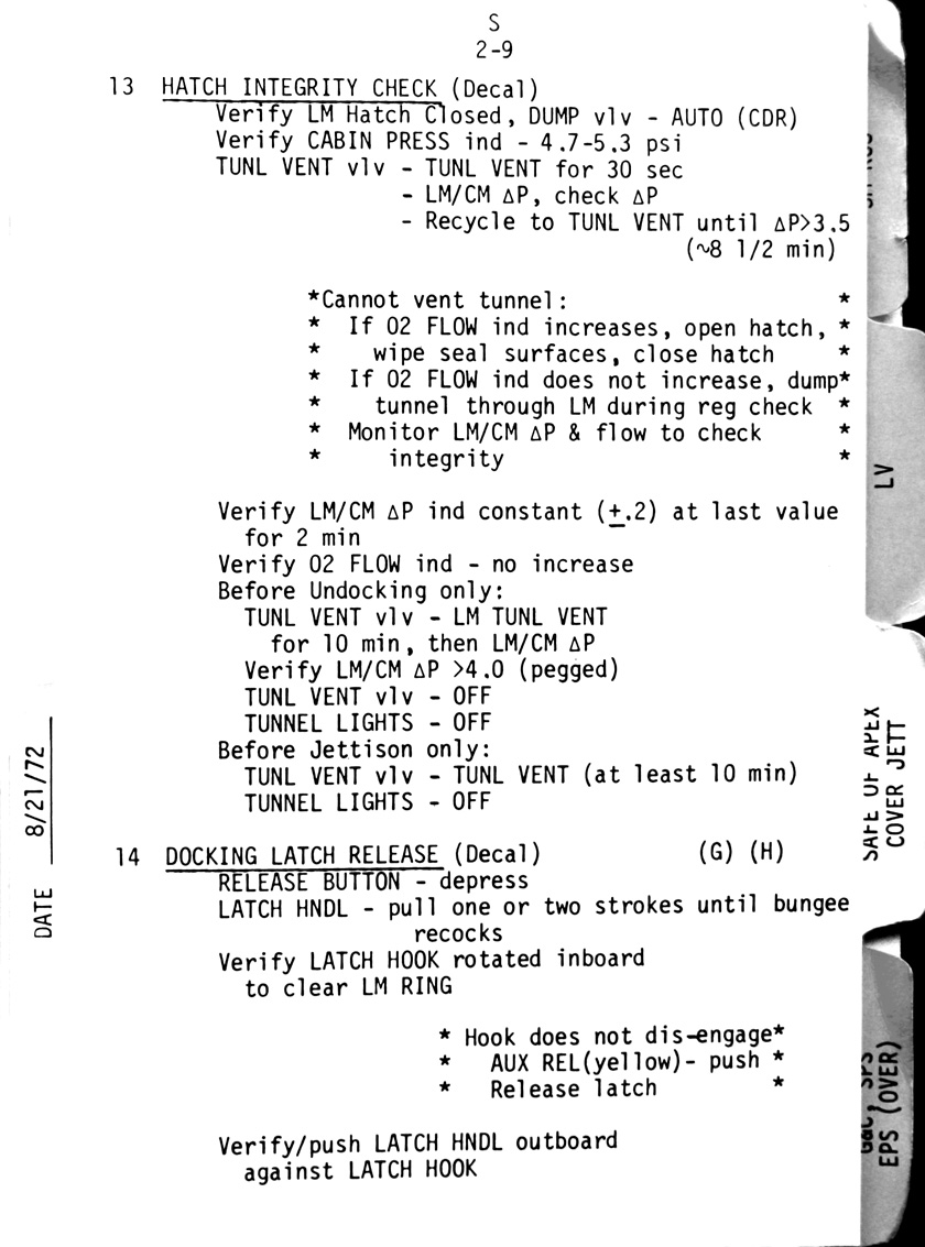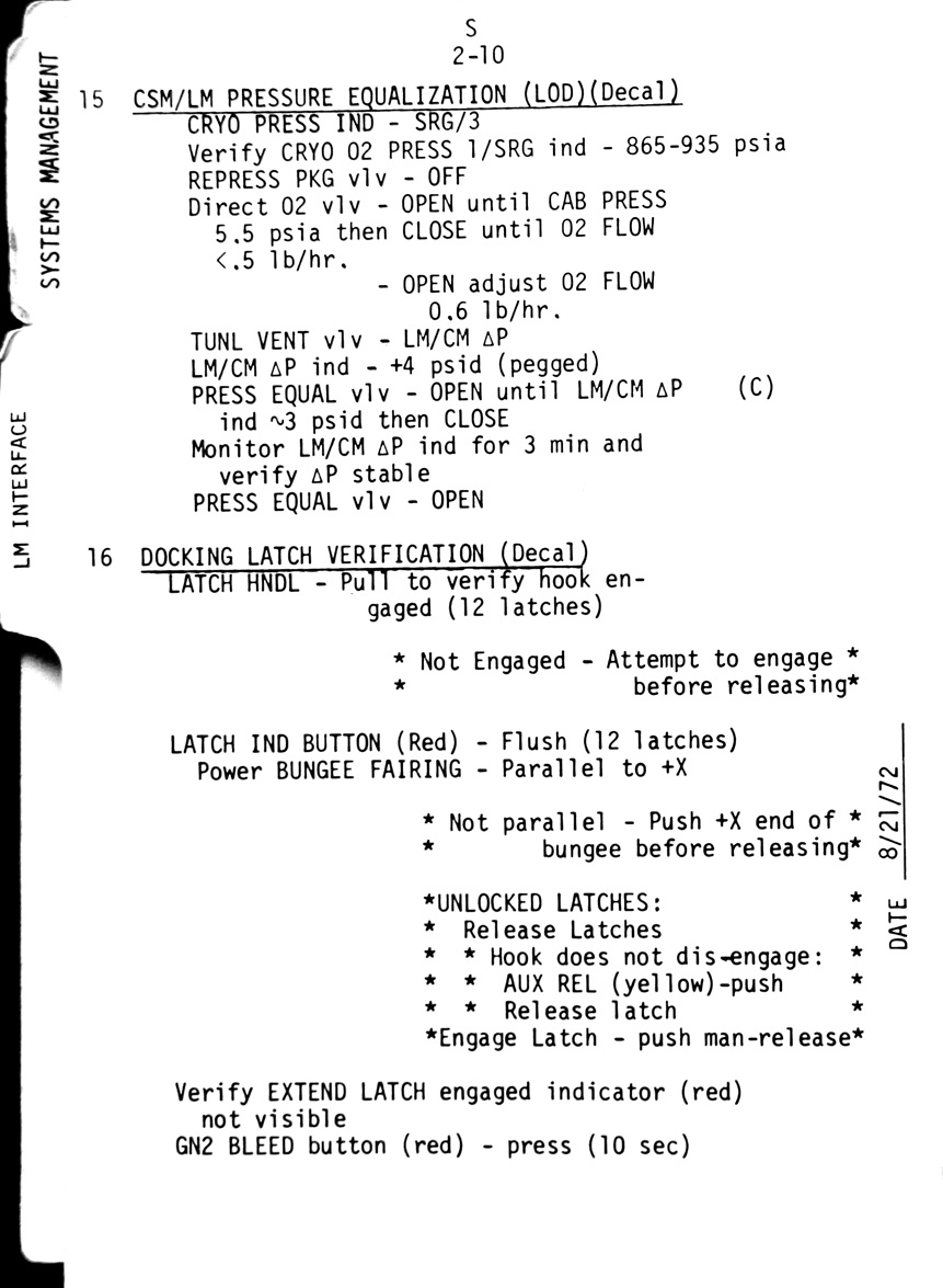- 2-10 Sub-checklist - CSM/LM pressure equalisation (LOD), Docking hatch verification