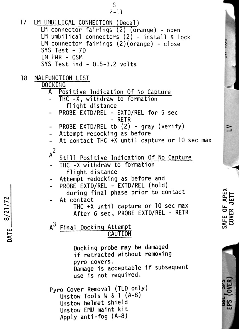 - 2-11 Sub-checklist - LM umbilical connection, Malfunction list (Docking)